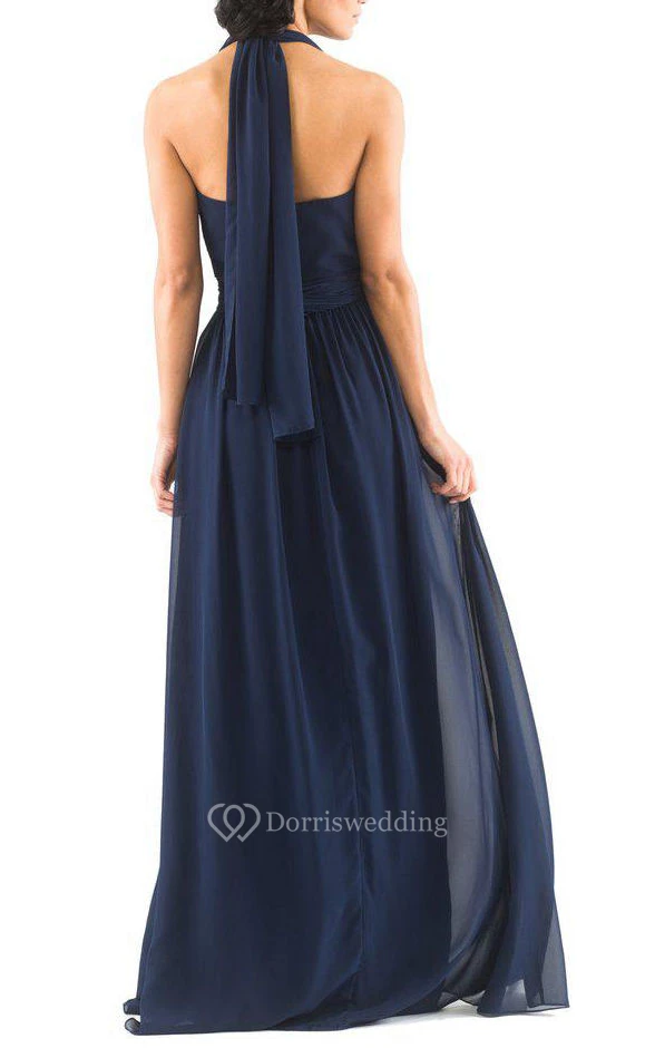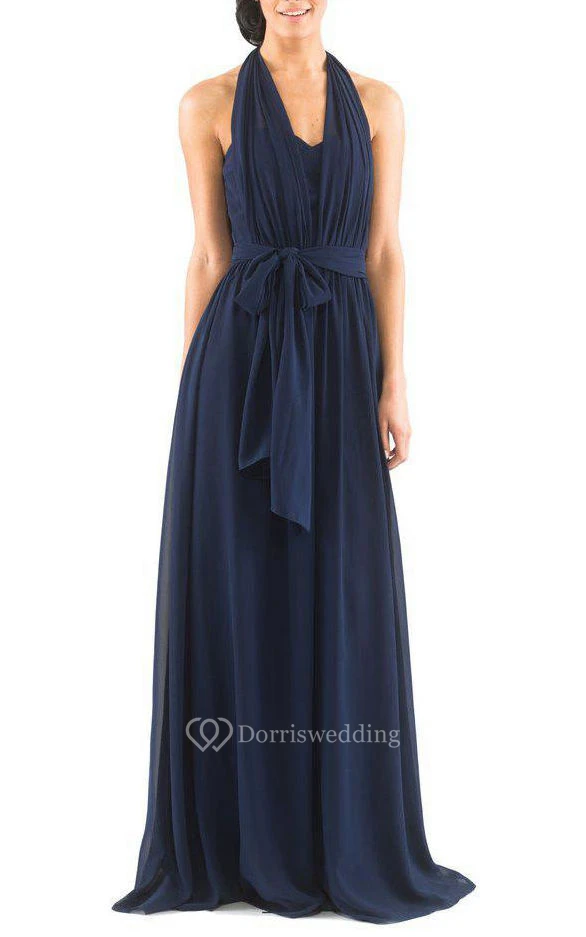 Halter Chiffon Long Bridesmaid Dress with Sash