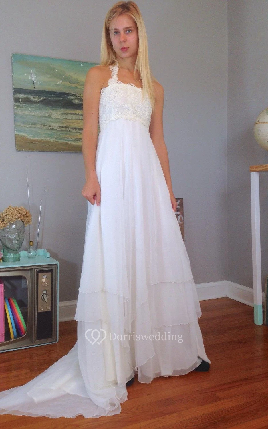 Halter Empire Chiffon A-Line Dress With Lace Bust
