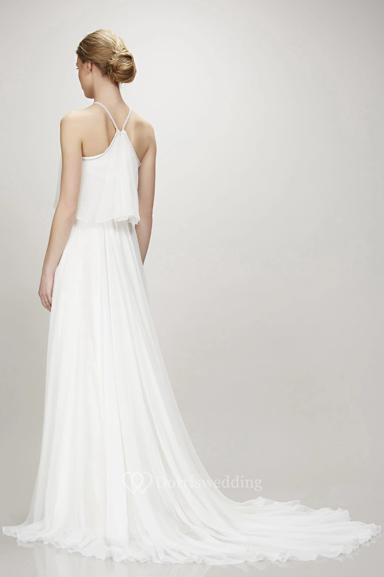 Halter Floor-Length Pleated Chiffon Wedding Dress With Court Train