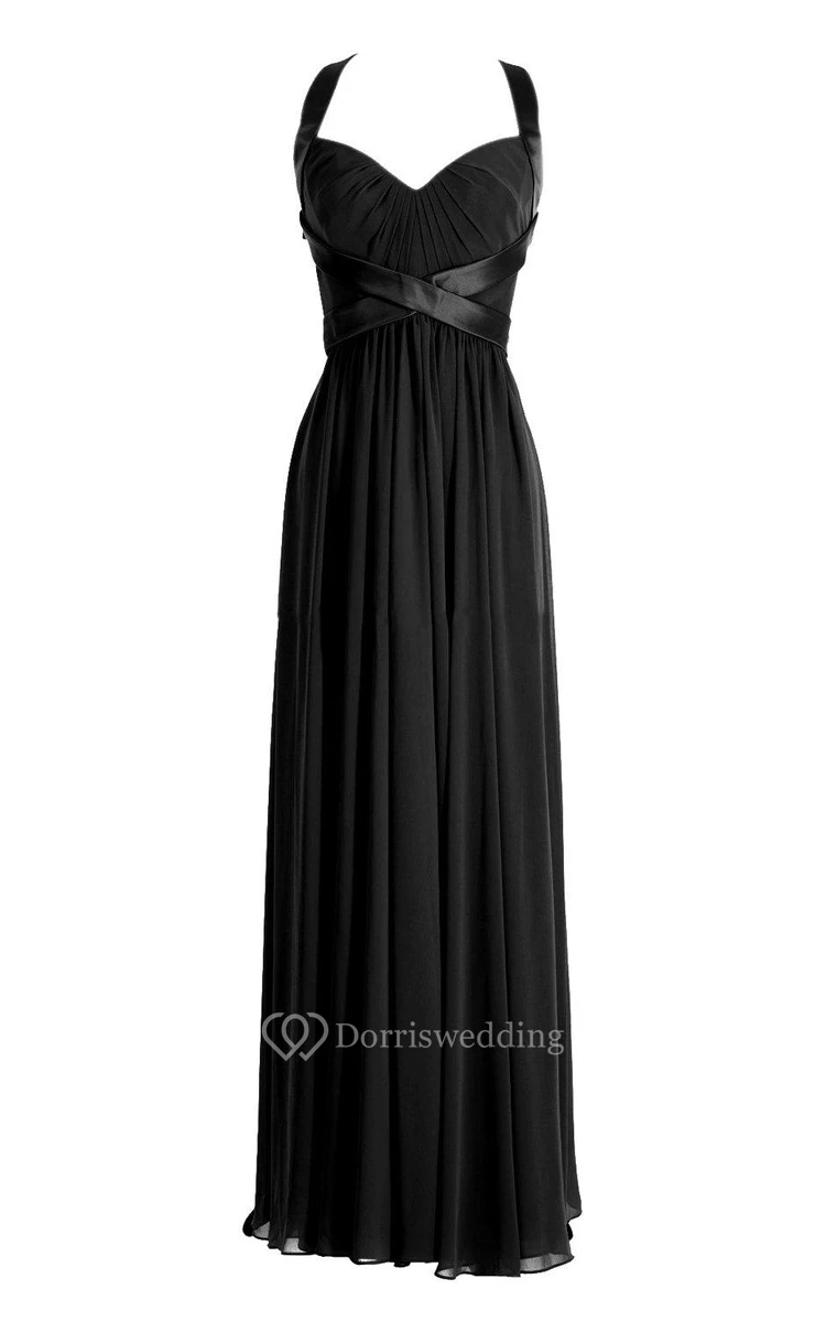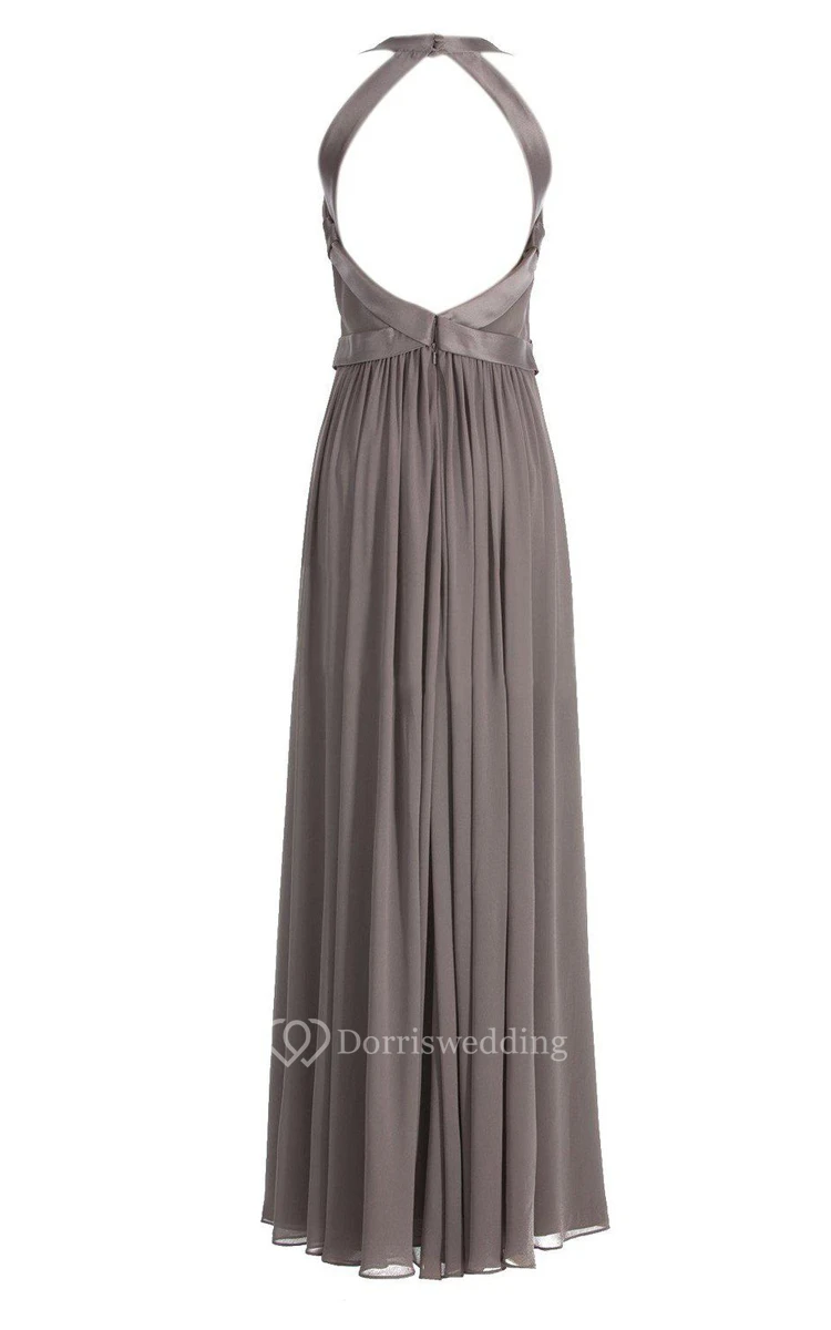 Halter Long Chiffon Gown With Criss-cross Style