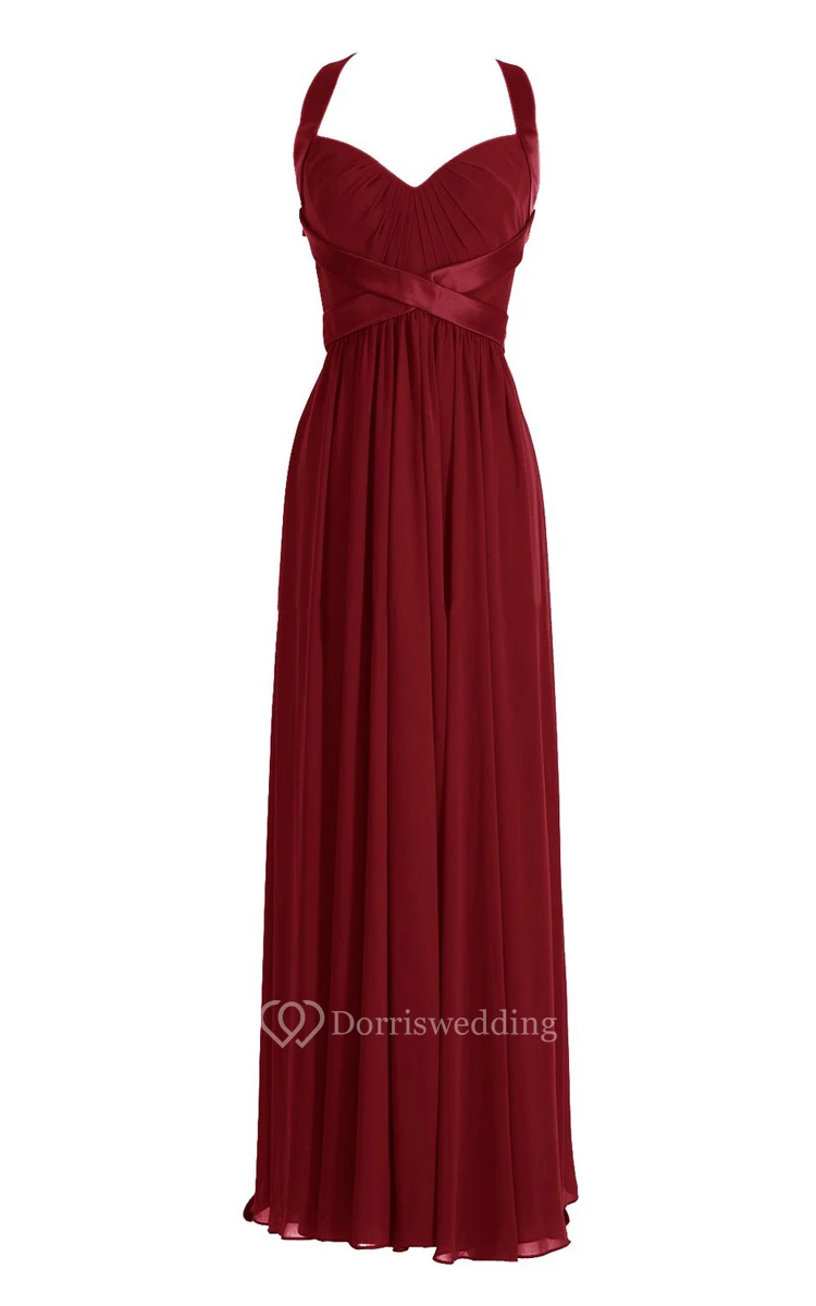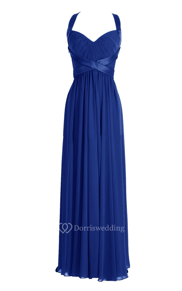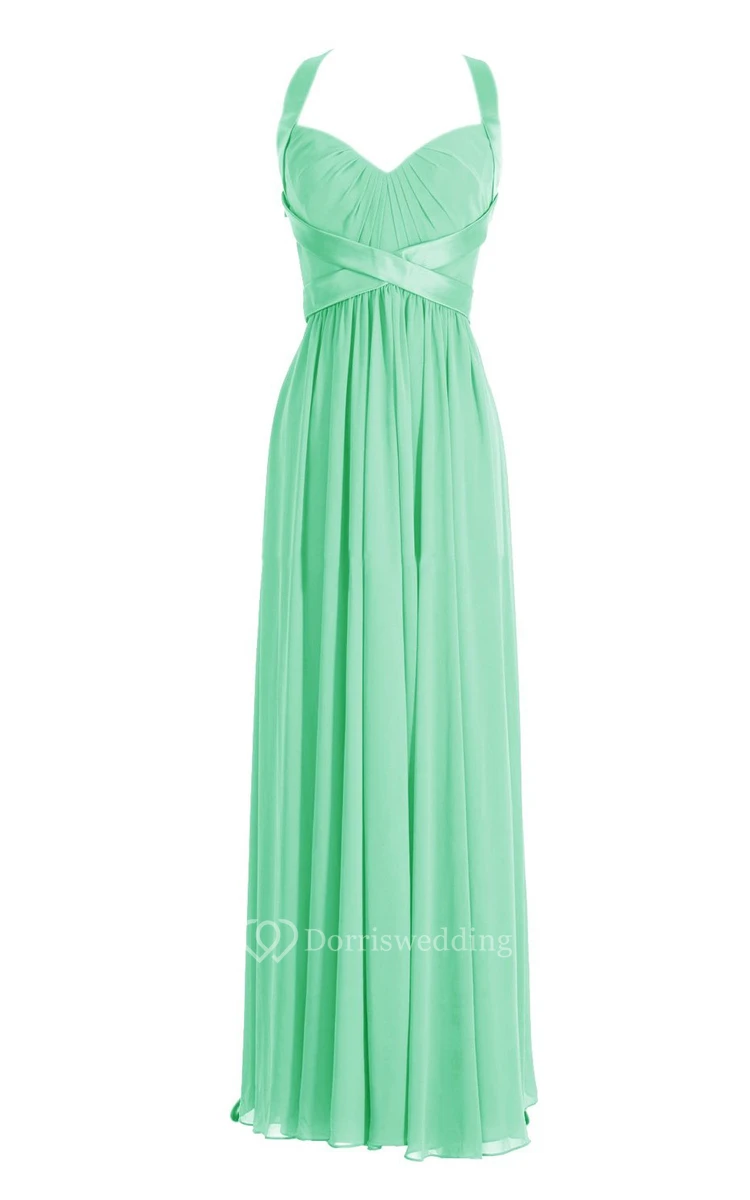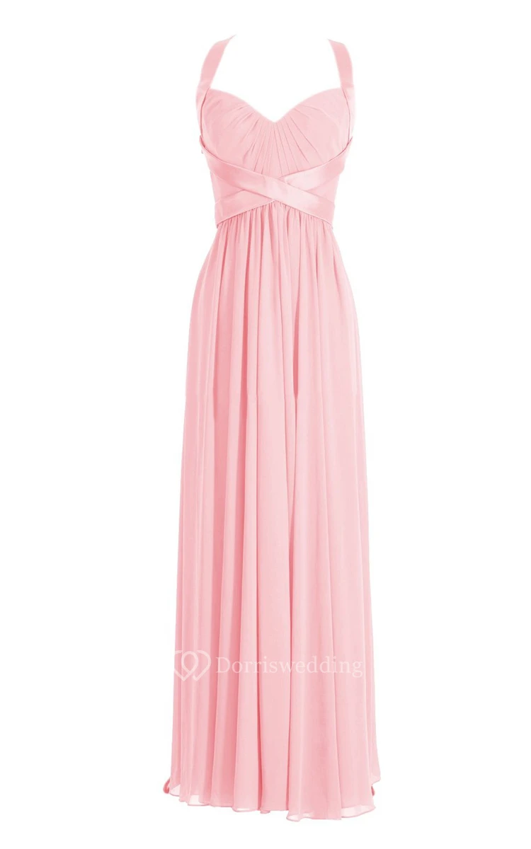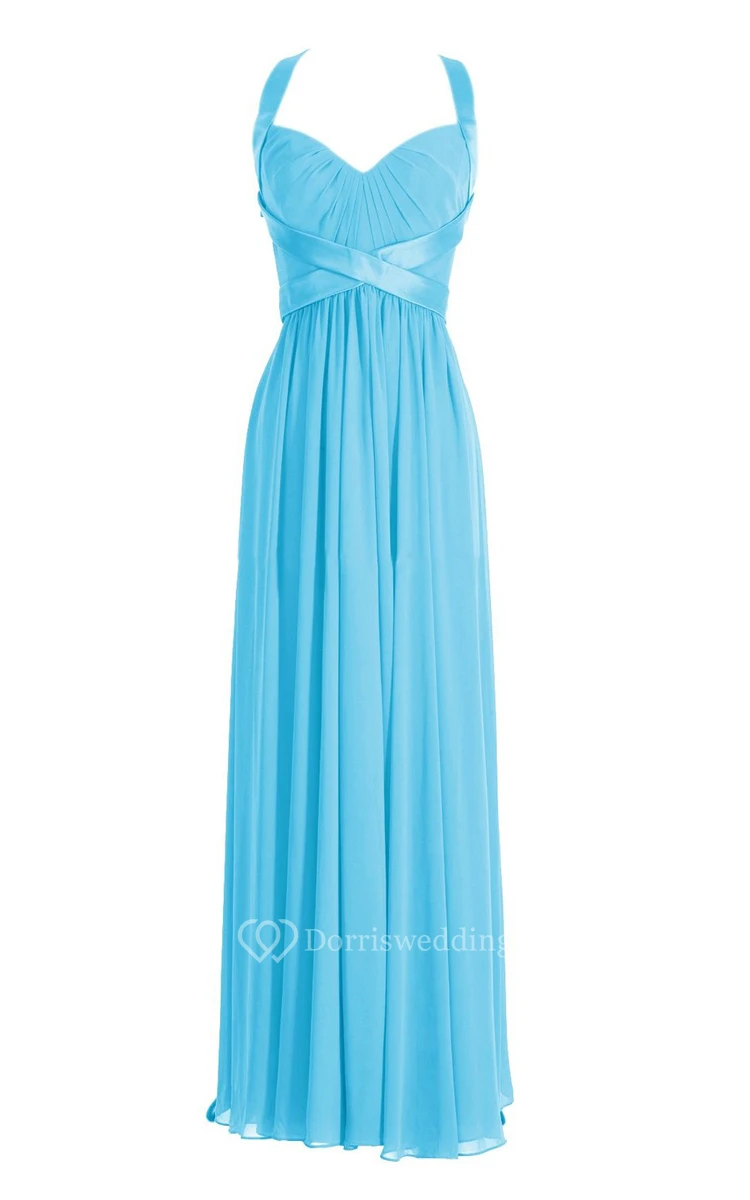 Halter Pleated Chiffon A-line Gown With Deep-v Back
