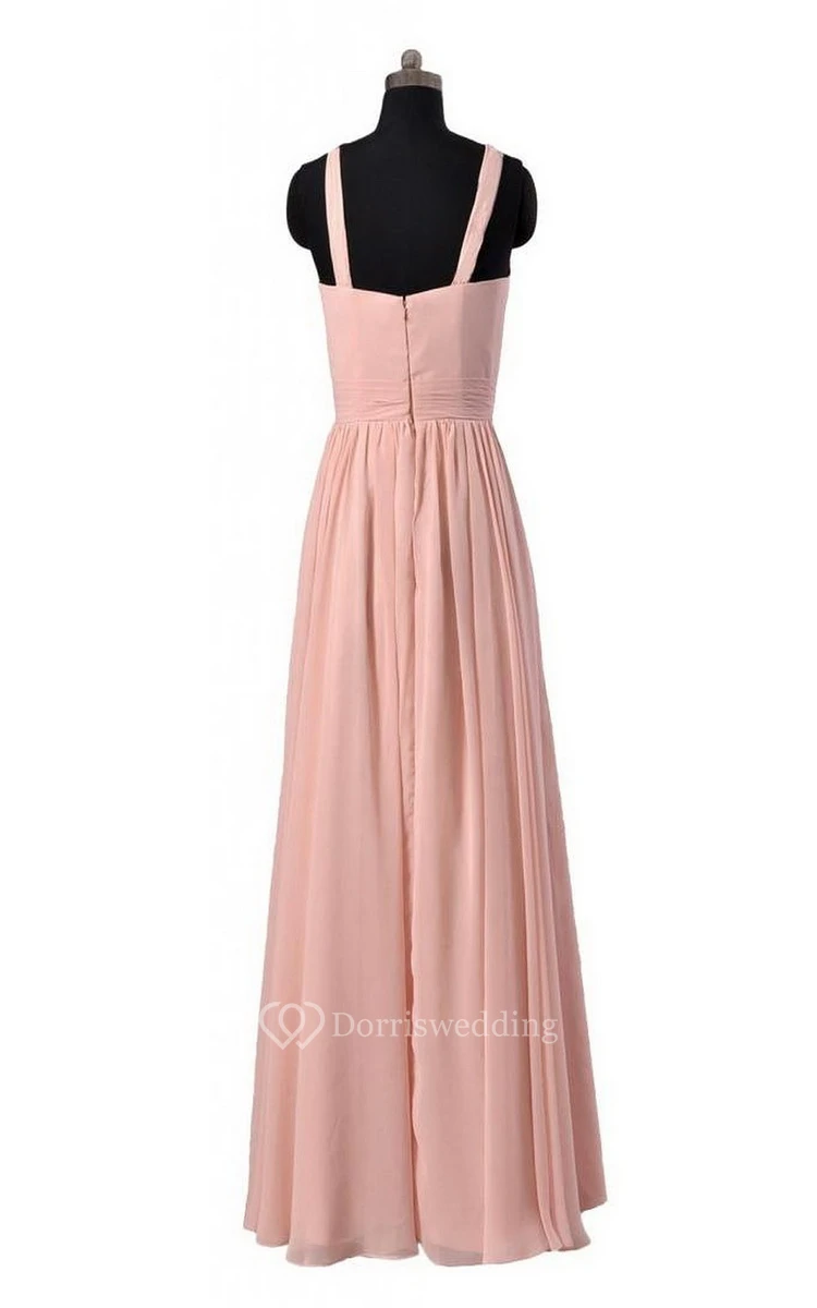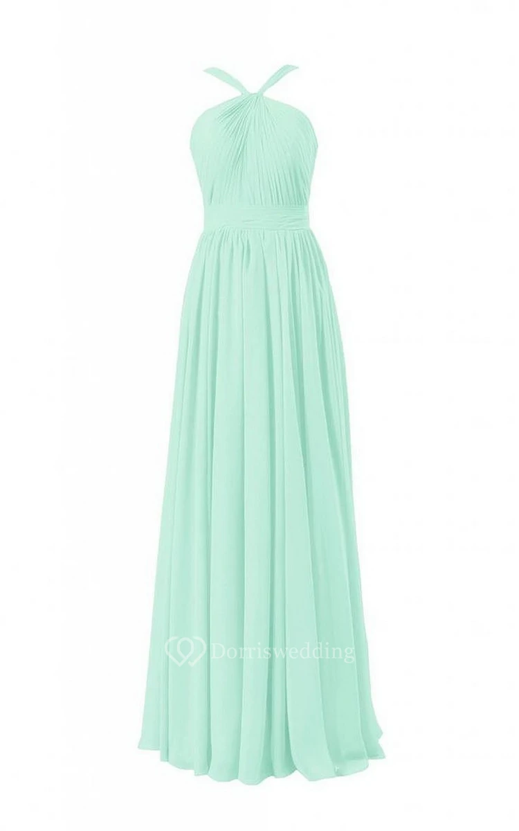 Halter Pleated Chiffon A-line Gown With Zipper Back
