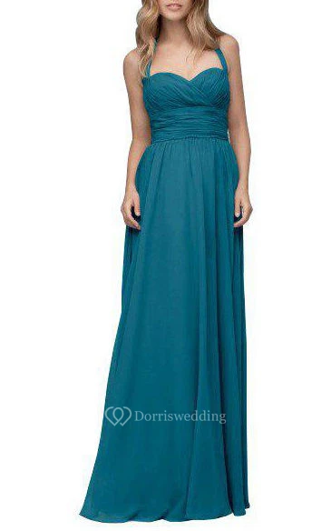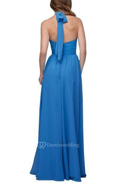 Halter Ruched Floor-length Chiffon Bridesmaid Dress