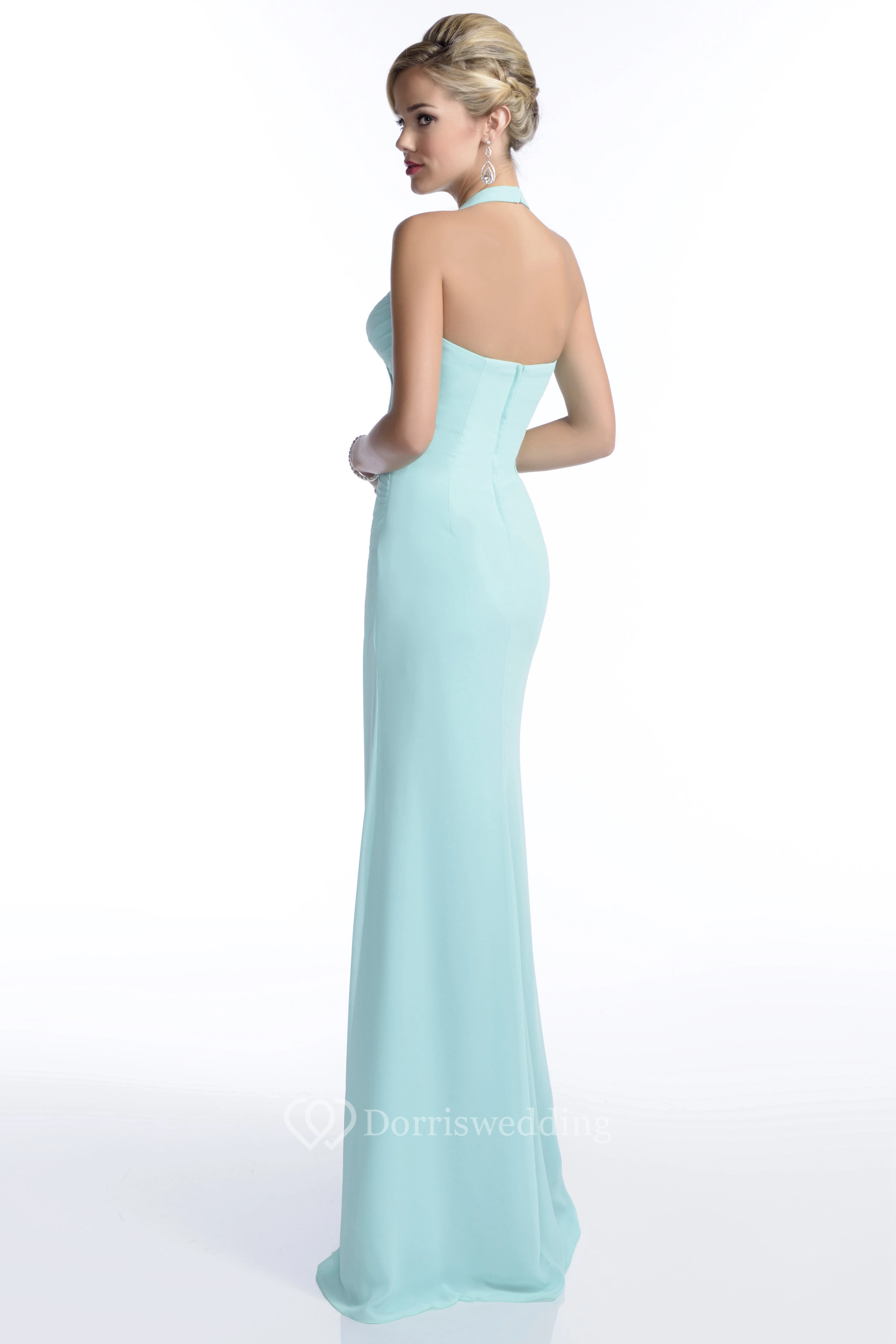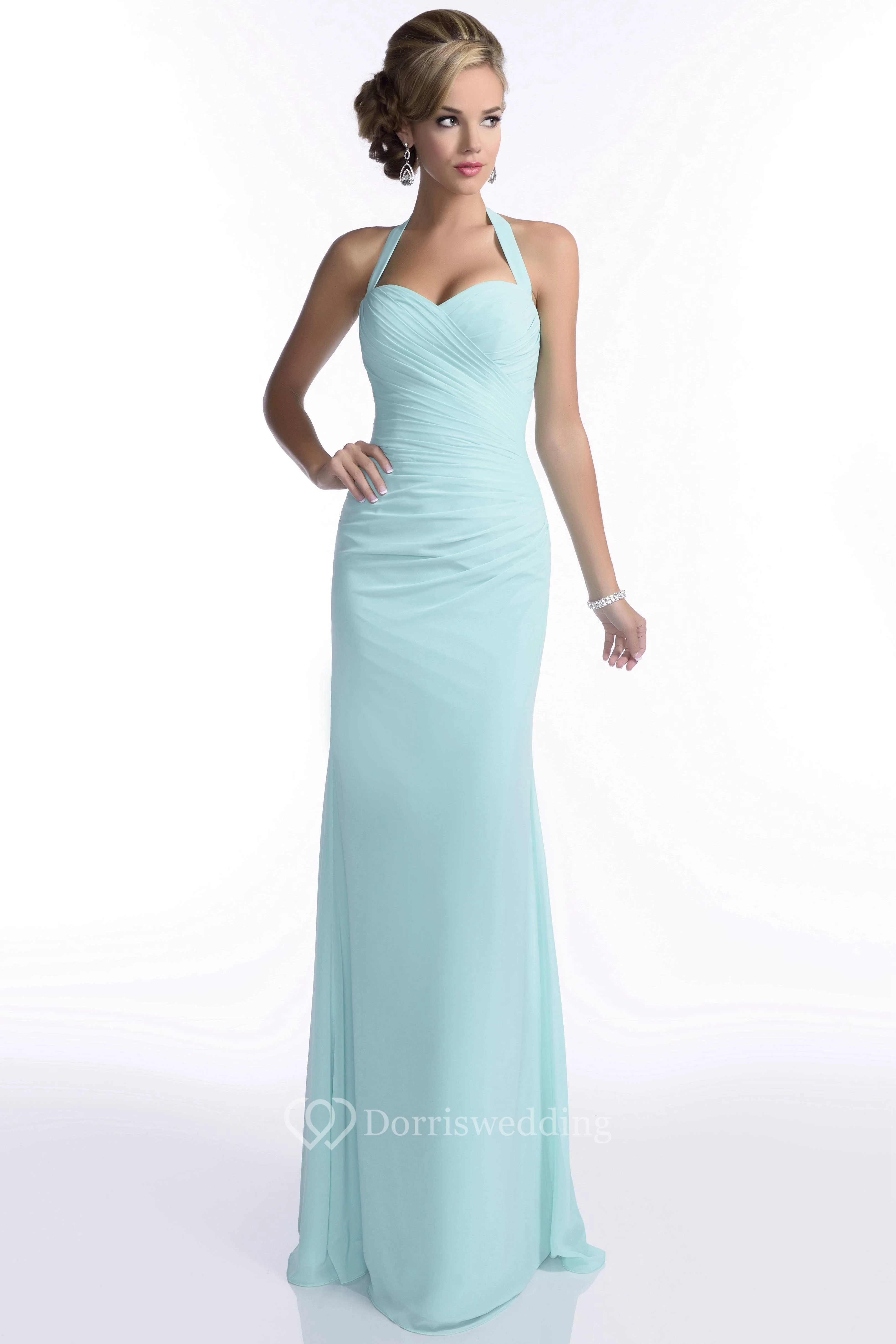 Halter Sheath Sweetheart Chiffon Bridesmaid Dress With Ruched Bodice
