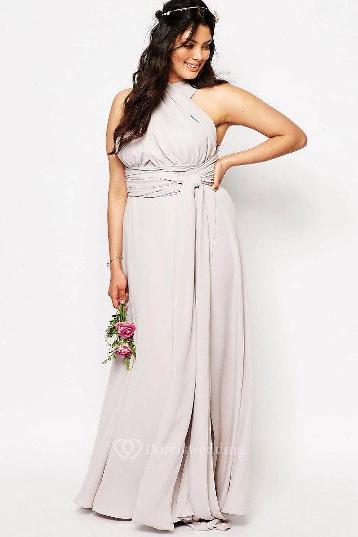 Halter Sleeveless Ruched Chiffon Sage Green Bridesmaid Dress With Split Front