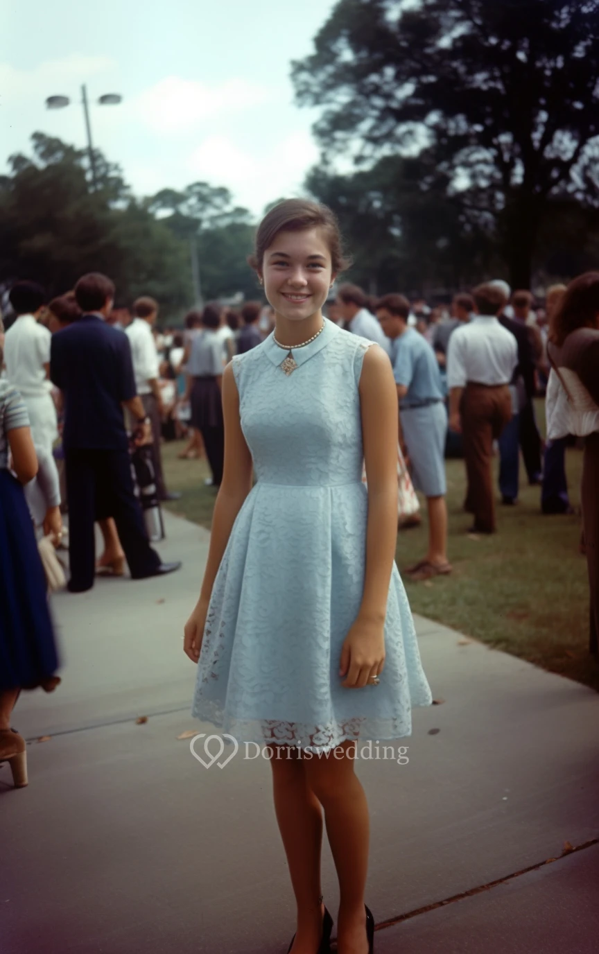 Jewel-neck Lace Sleeveless A-line Short Mist Homecoming Dress