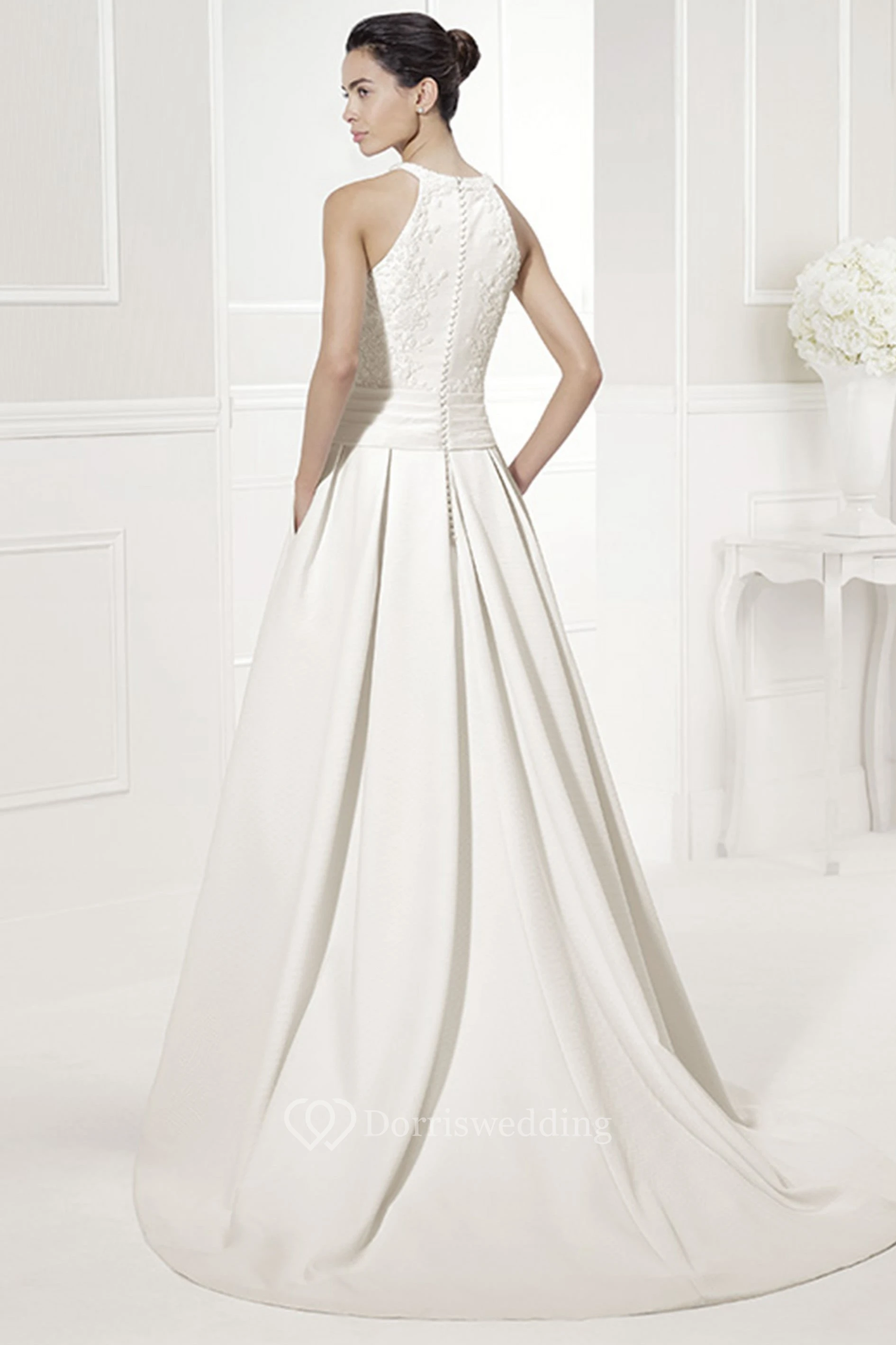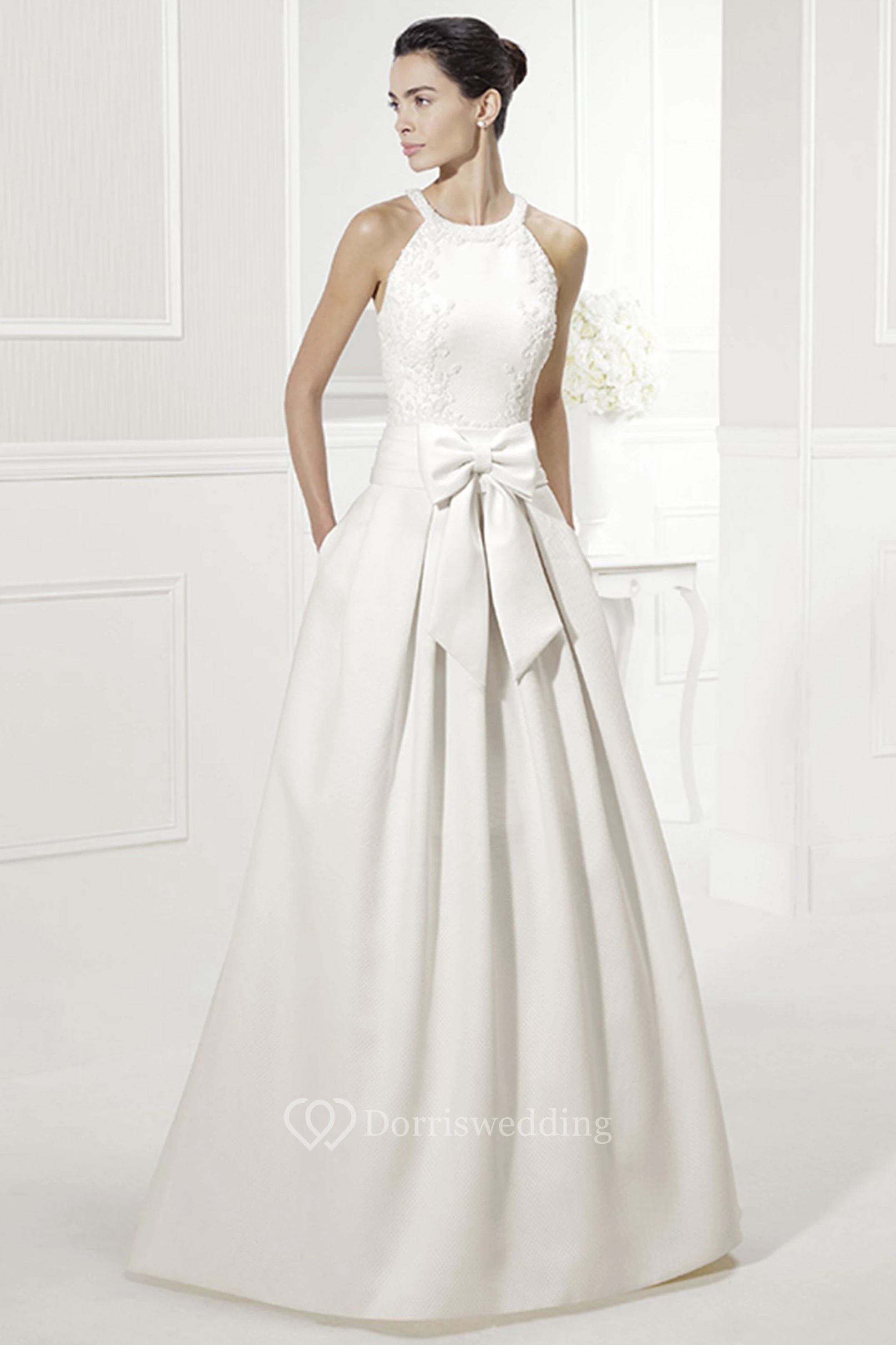 Halter Style Taffeta Bridal Elegance Gown With Bow And Appliques