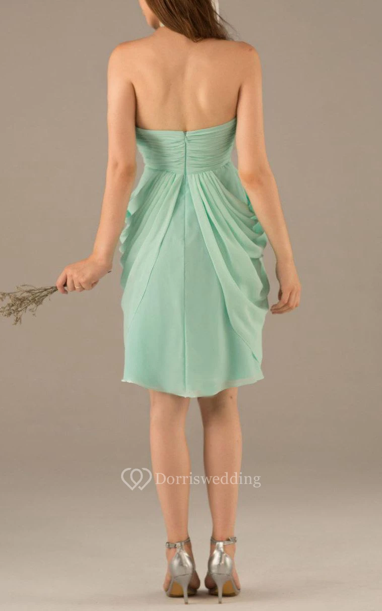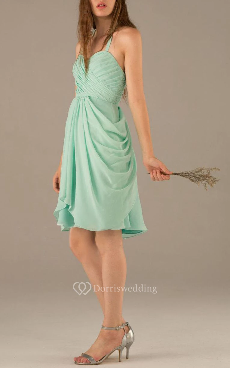 Halter Sweetheart Draped A-line Knee Length Chiffon Dress