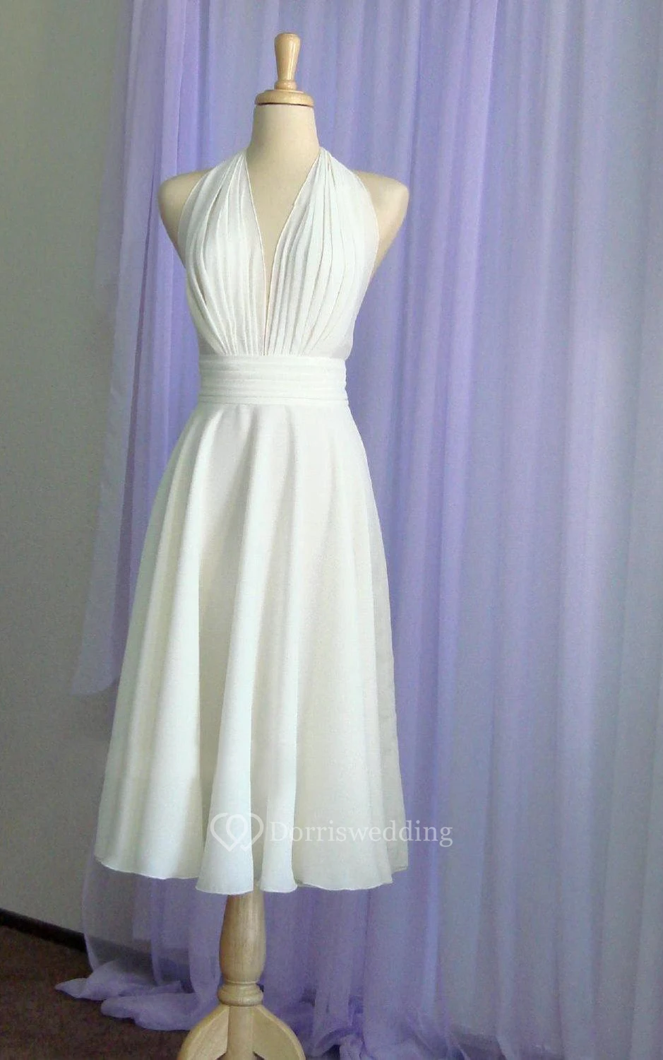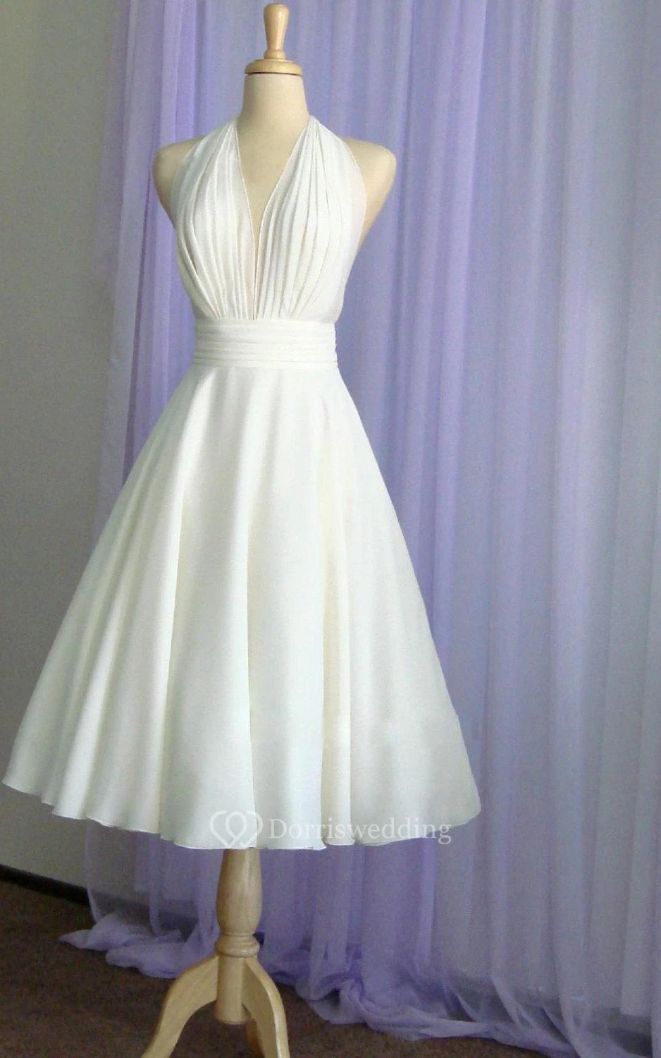 Marilyn Monroe White Halter Dress | Tea Length Costume | 1950s Vintage Wedding Gown