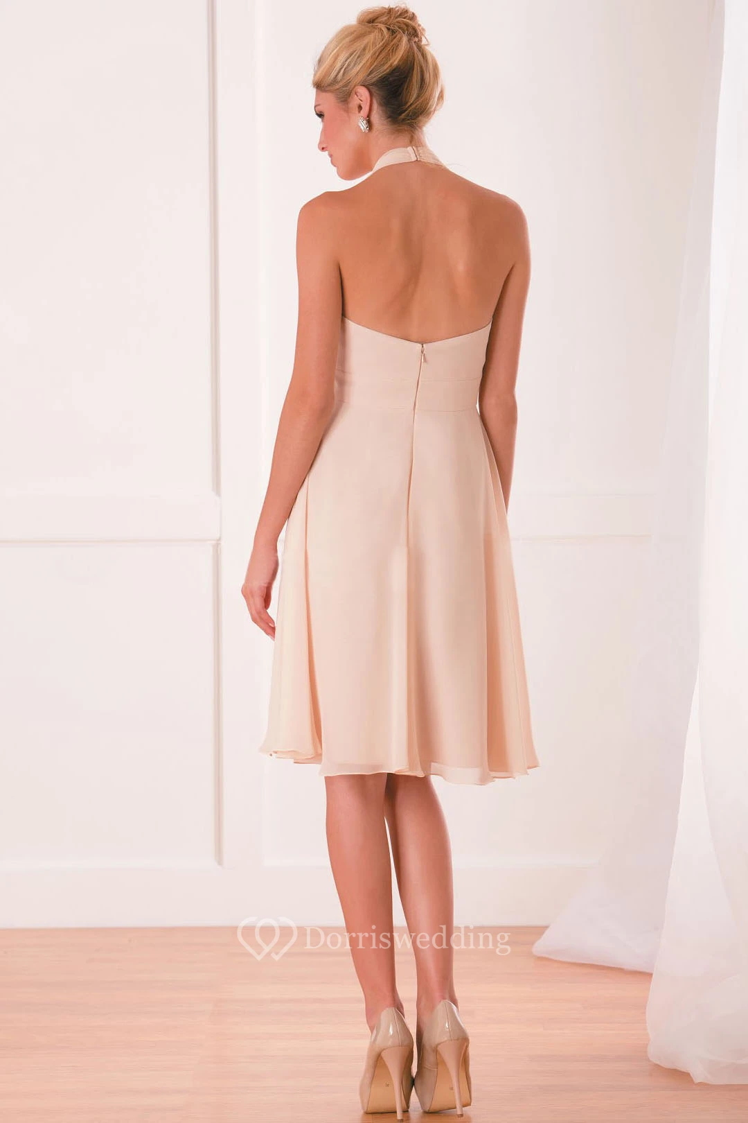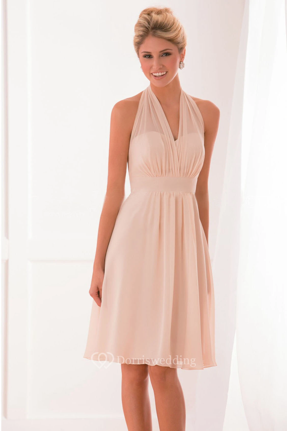Halter V-Neck Knee-Length Bridesmaid Dress With Pleats
