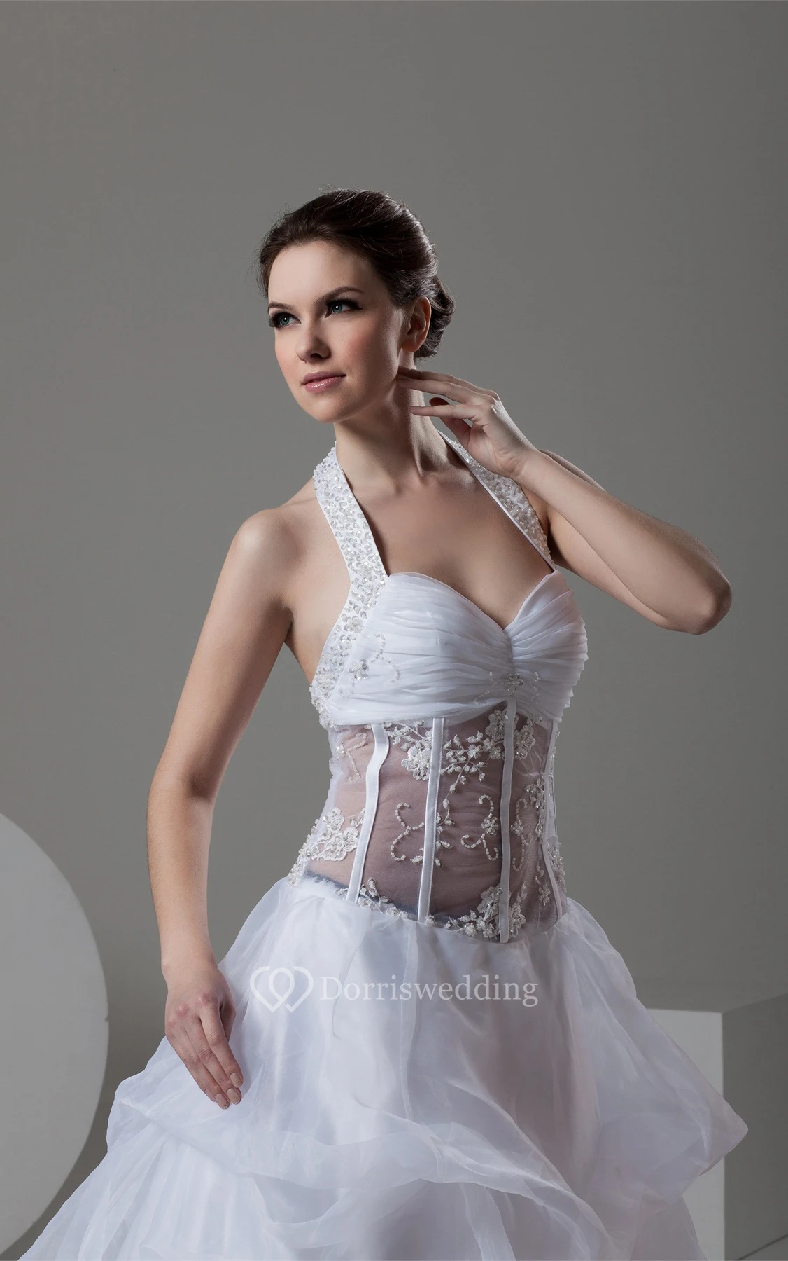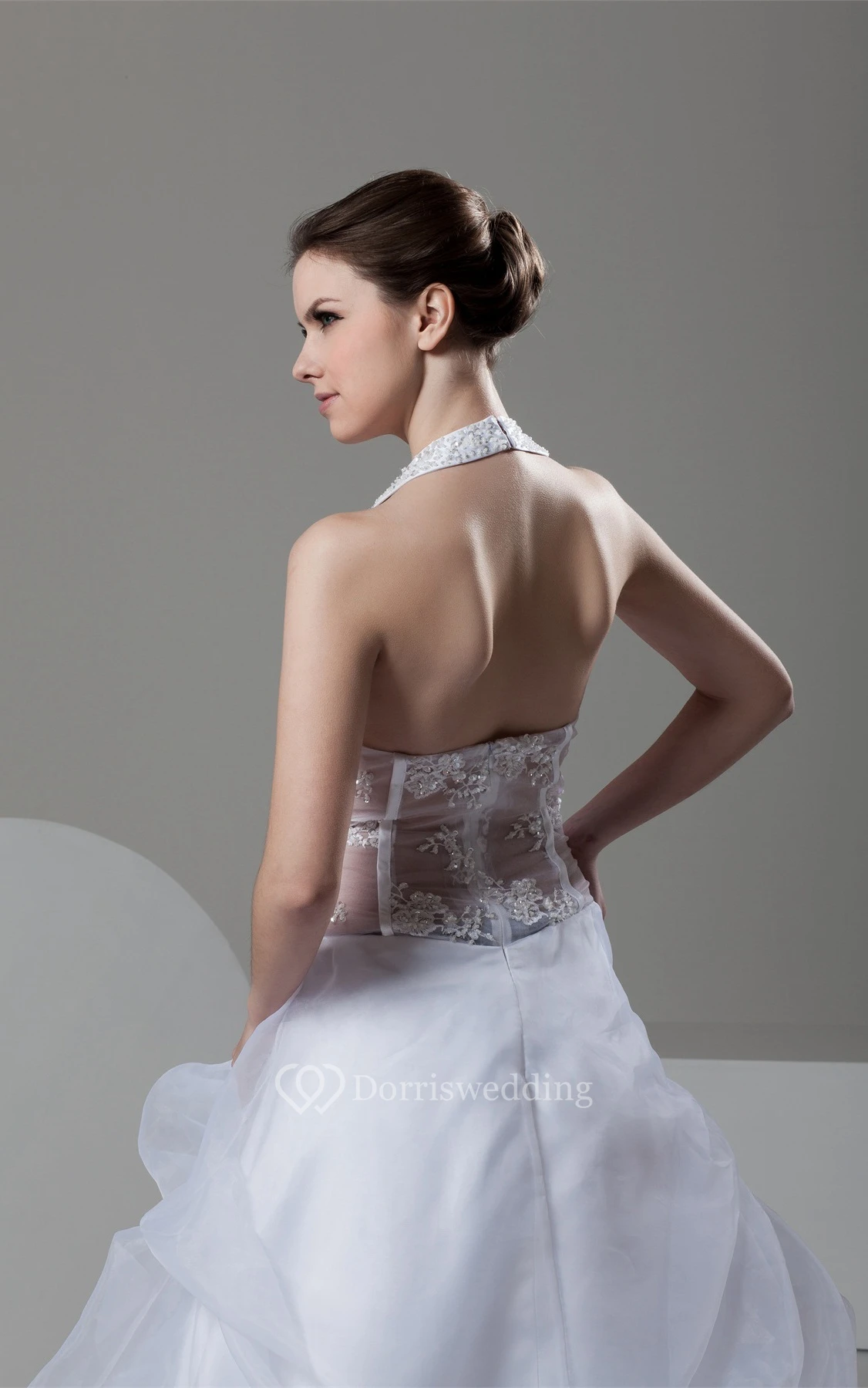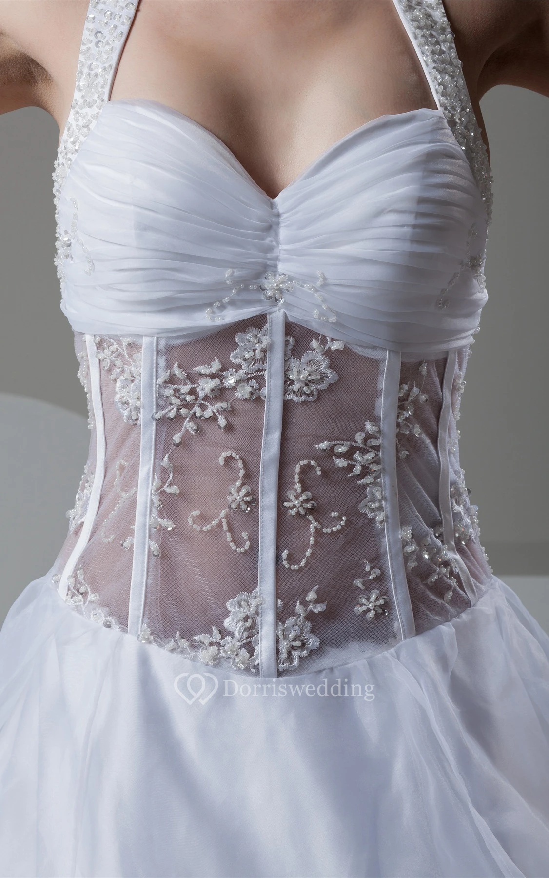 Haltered A-Line Pick-Up Illusion Waist and Gown With Appliques