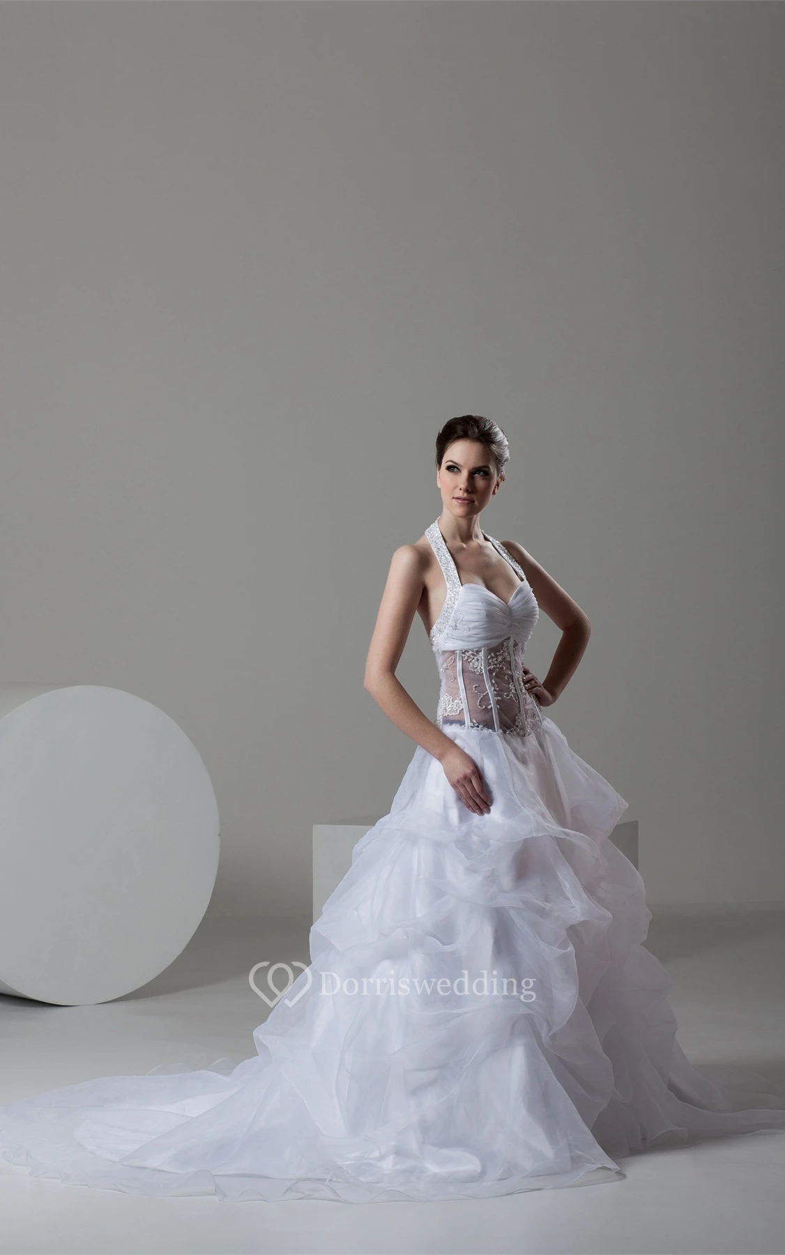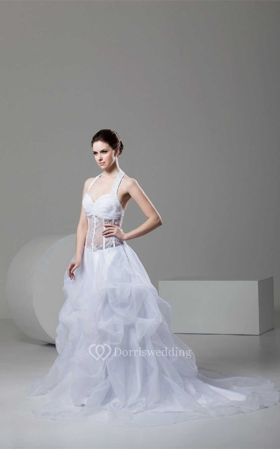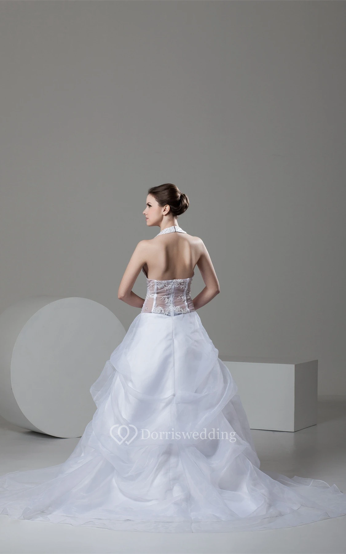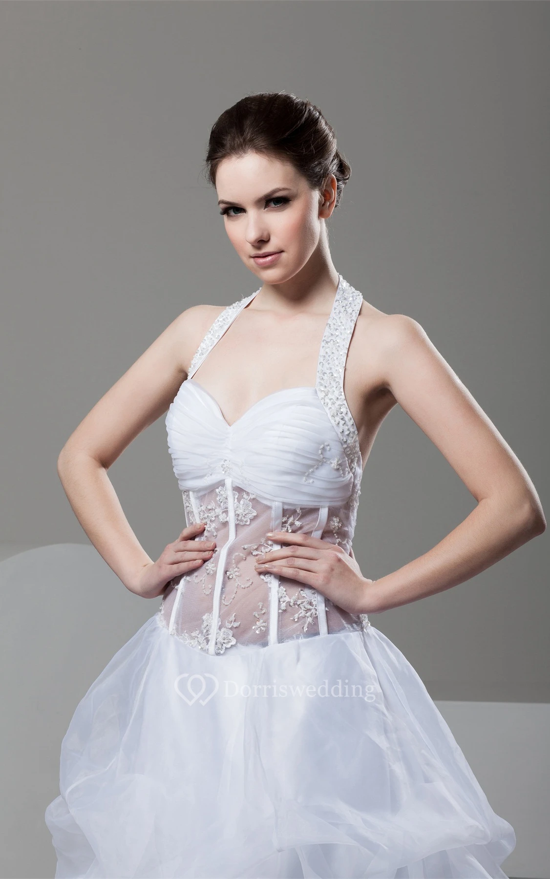 Haltered A-Line Pick-Up Illusion Waist and Gown With Appliques