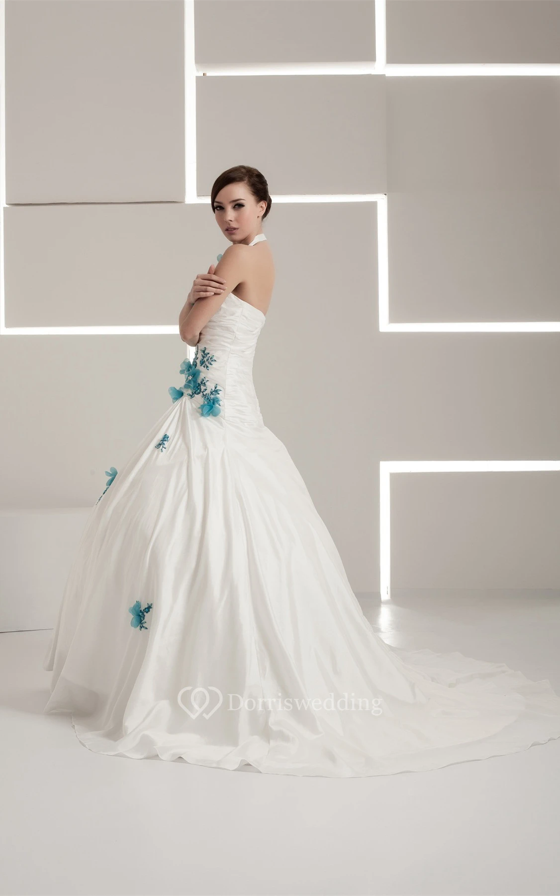 Haltered Appliqued A-Line Ruching and Gown With Flower