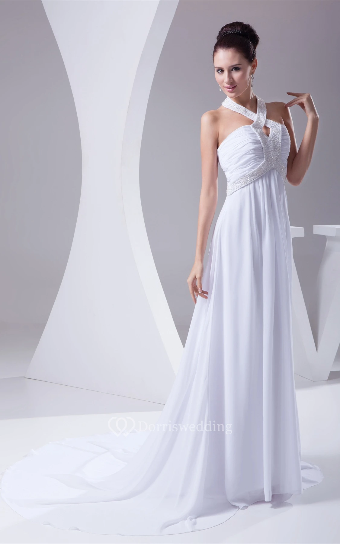 Haltered Empire Chiffon Sweep Train and Dress With Beading