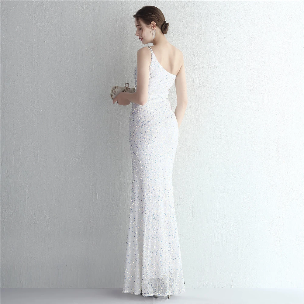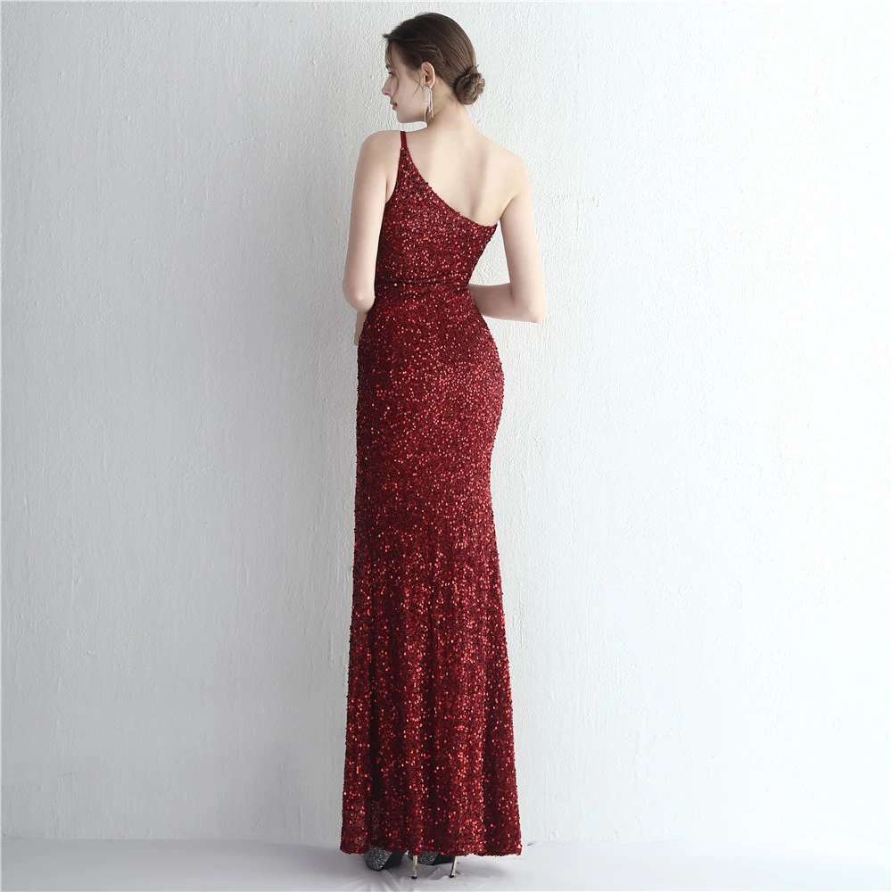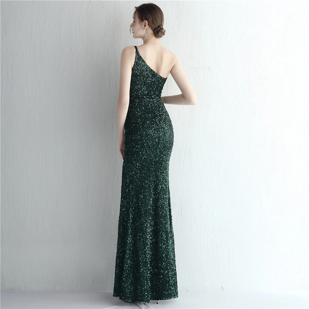 Handmade Sequin One Shoulder Sling Celebrity Banquet Slit Long Sequin Aura Queen Dinner Fishtail Skirt