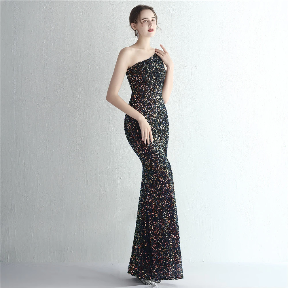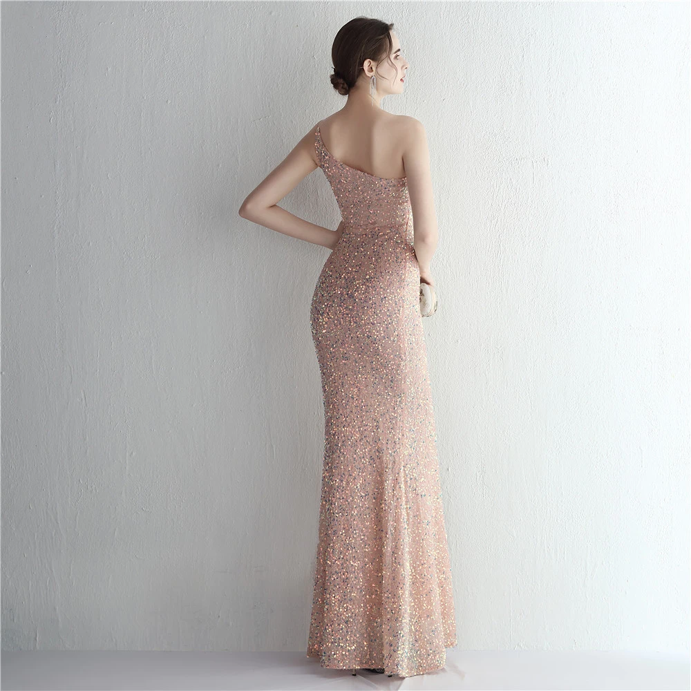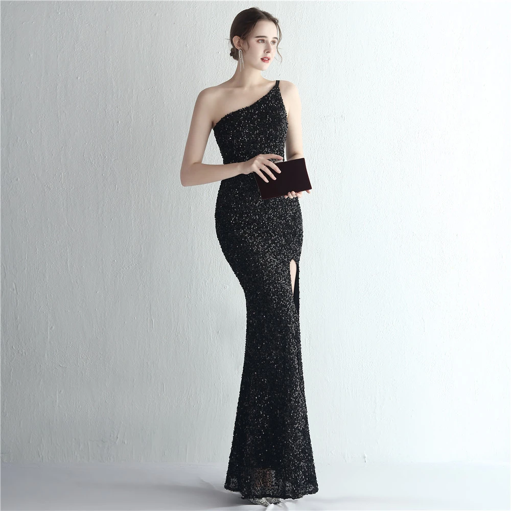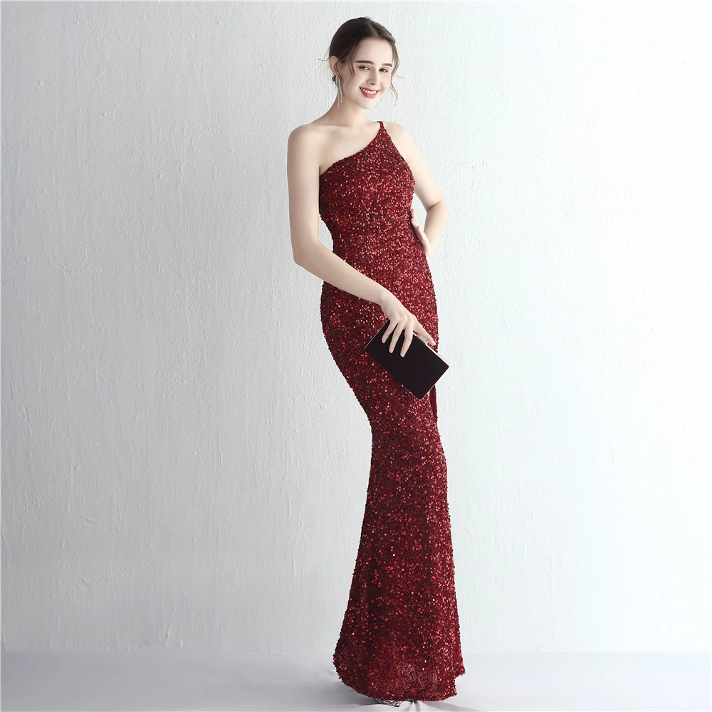 Handmade Sequin One Shoulder Sling Celebrity Banquet Slit Long Sequin Aura Queen Dinner Fishtail Skirt