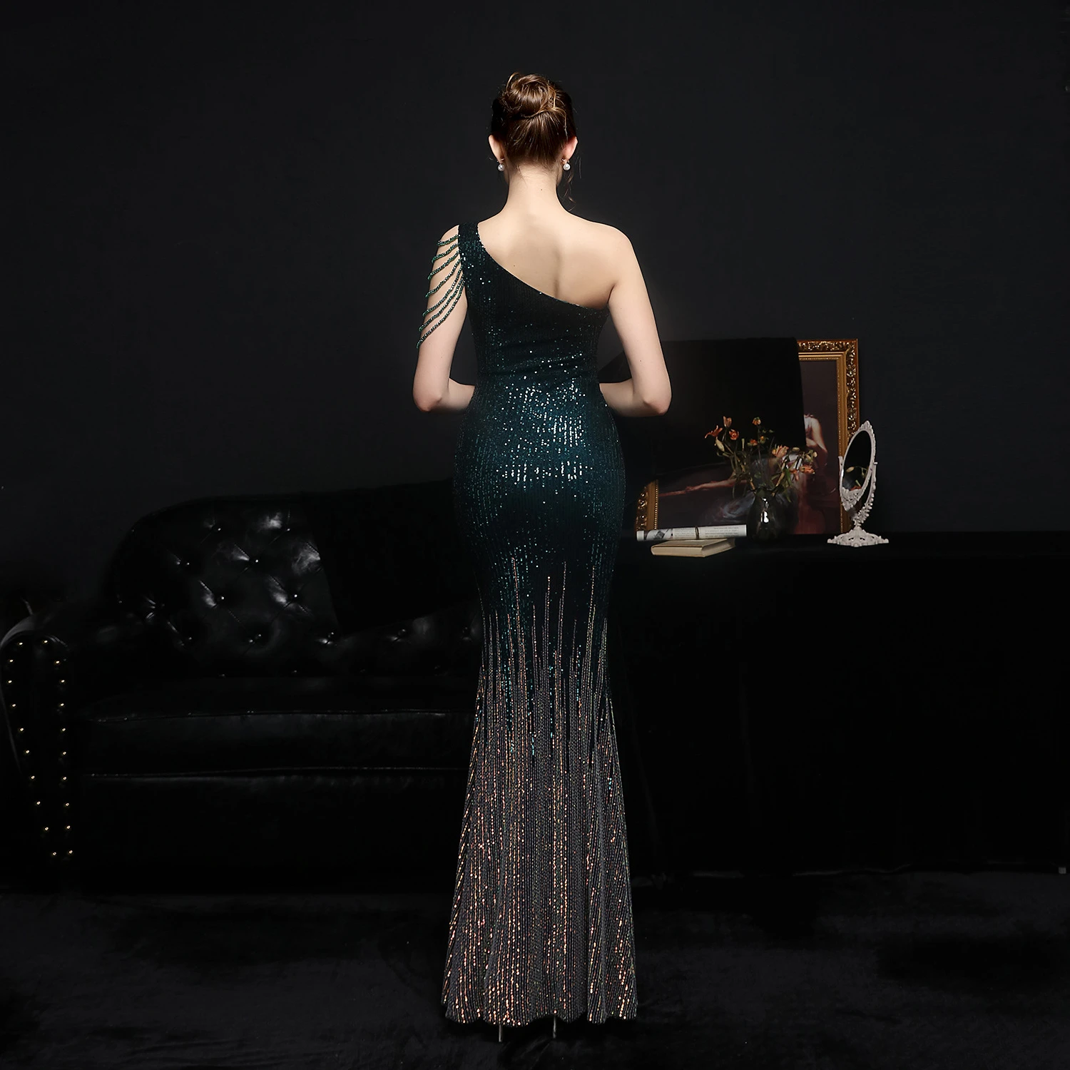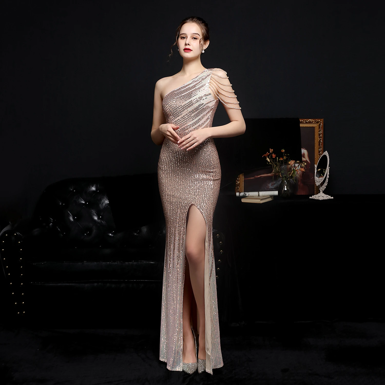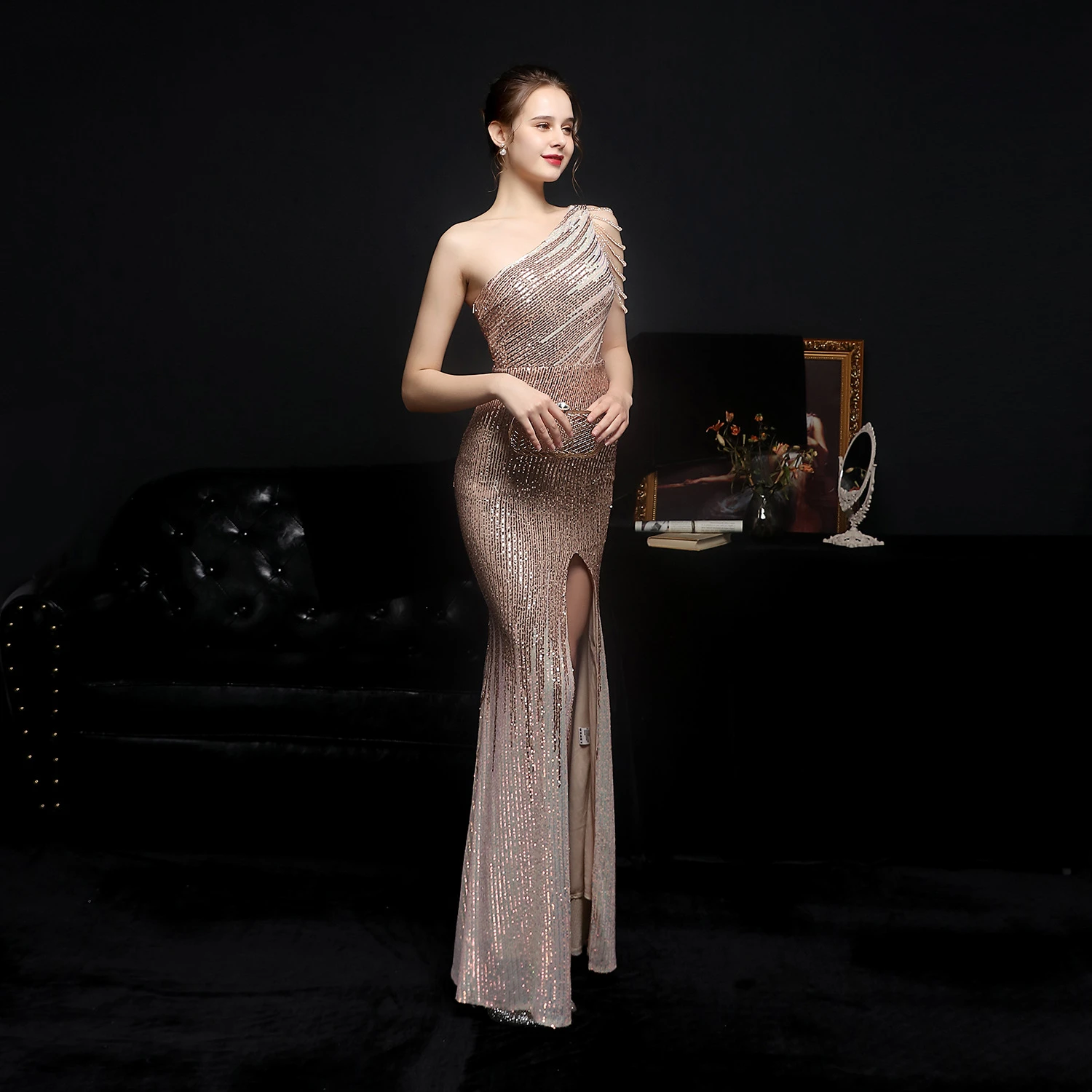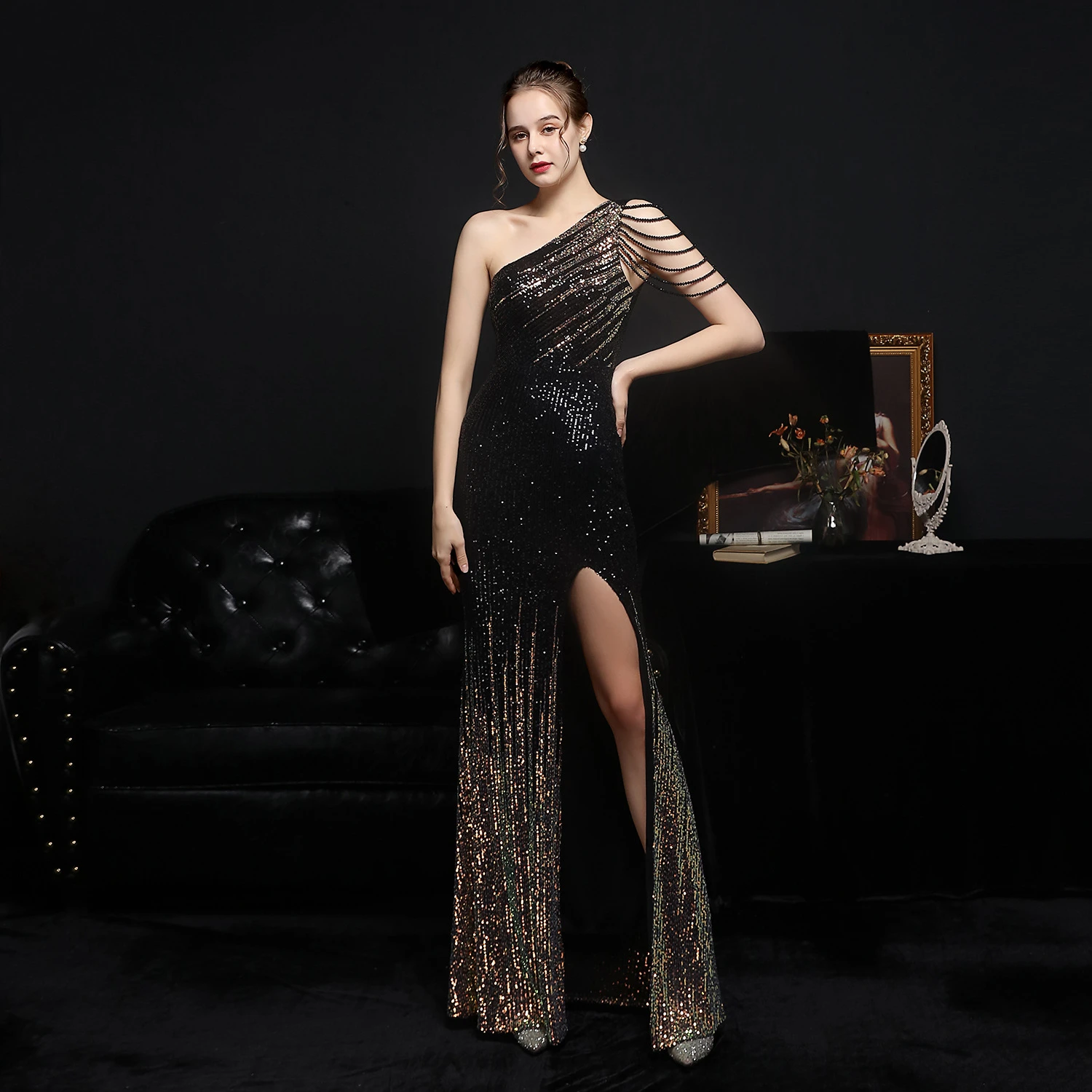 Heavy Craft Colorful Sequin Celebrity Party Party Evening Dress Sexy Long Slim Toast Dress Bride