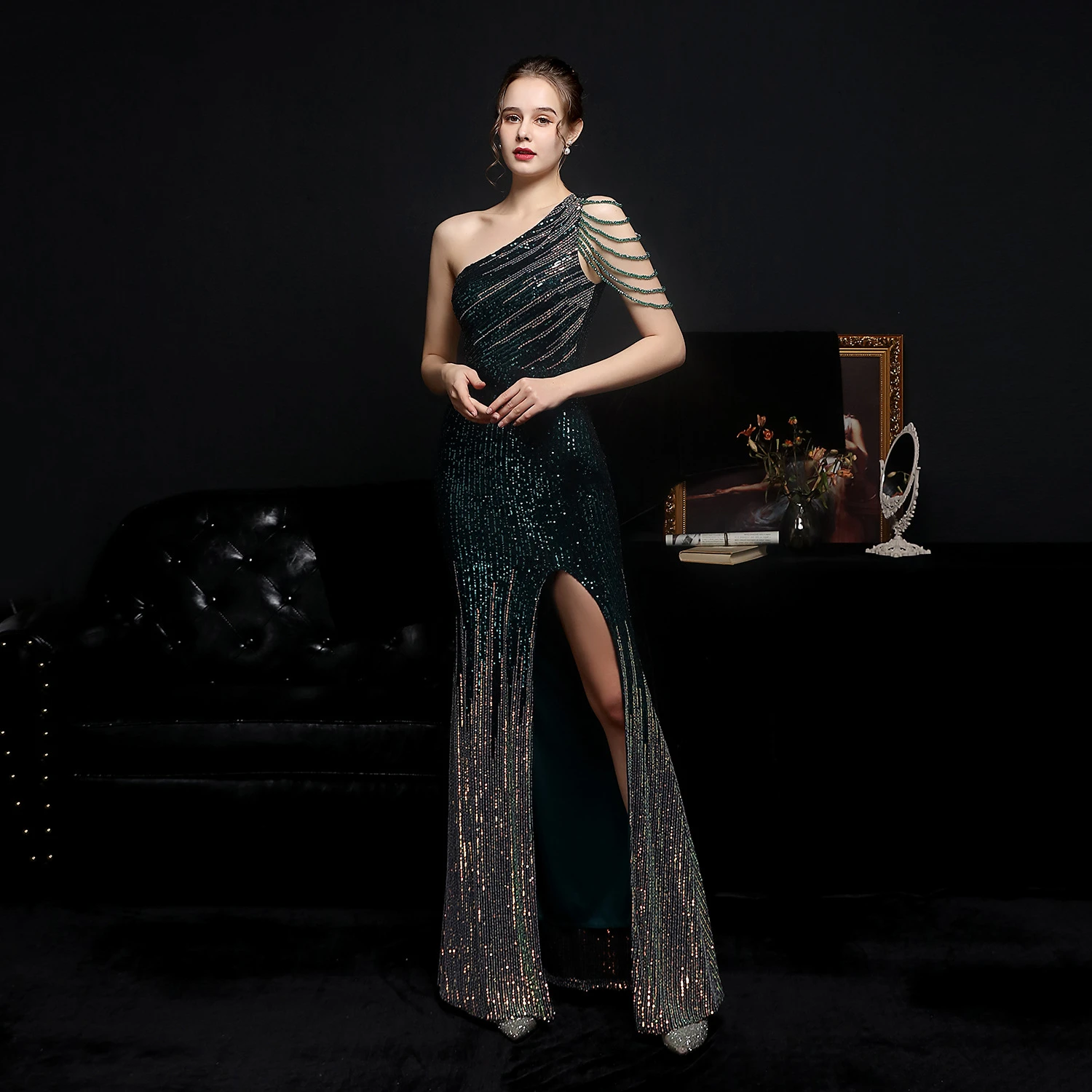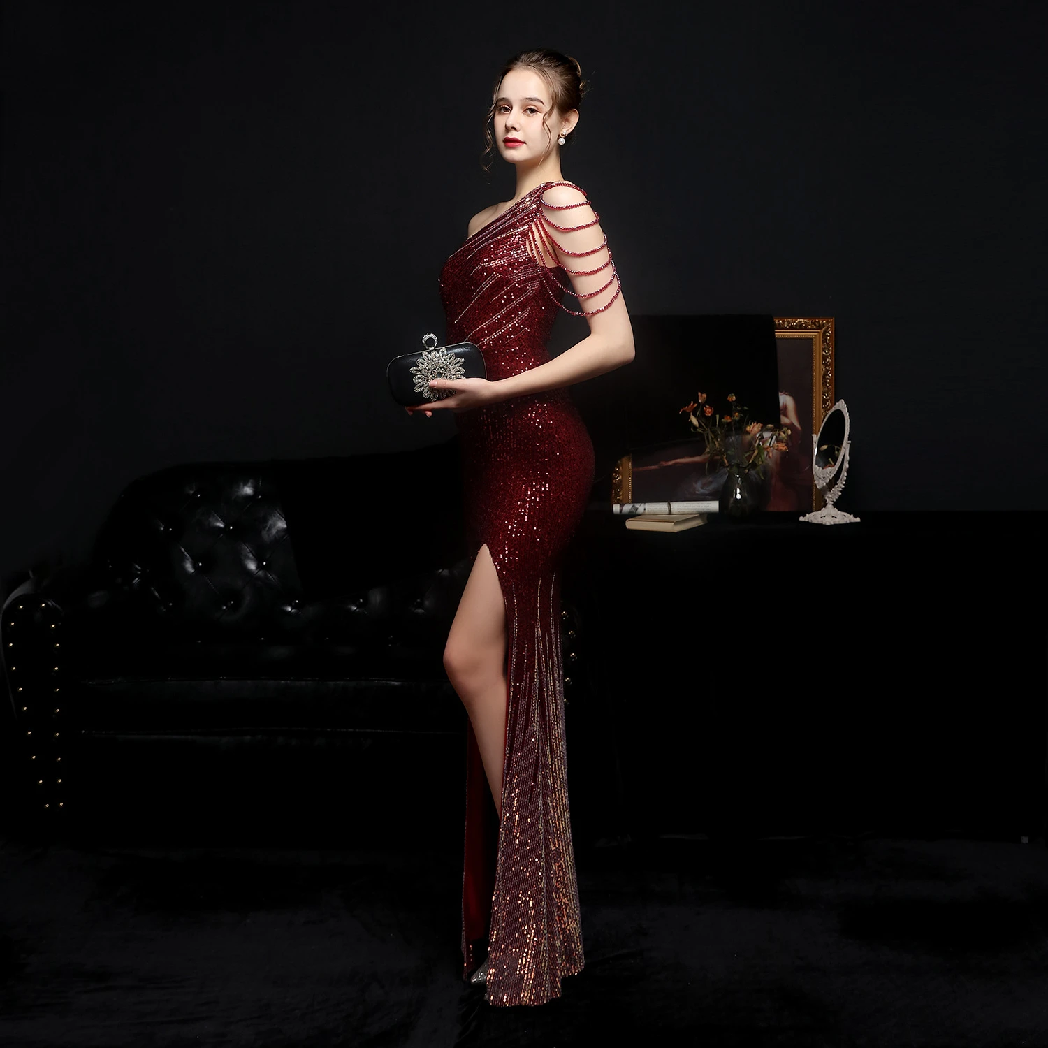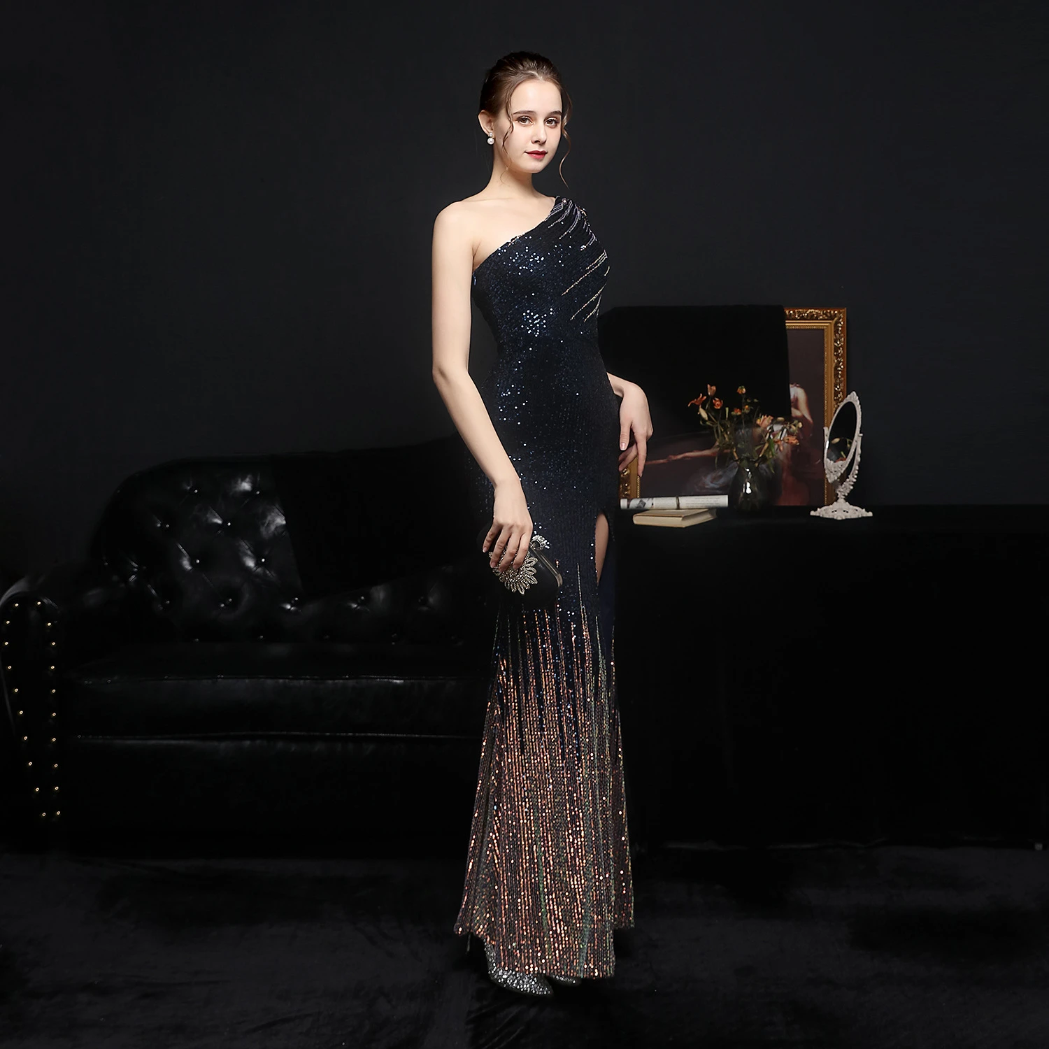 Heavy Craft Colorful Sequin Celebrity Party Party Evening Dress Sexy Long Slim Toast Dress Bride