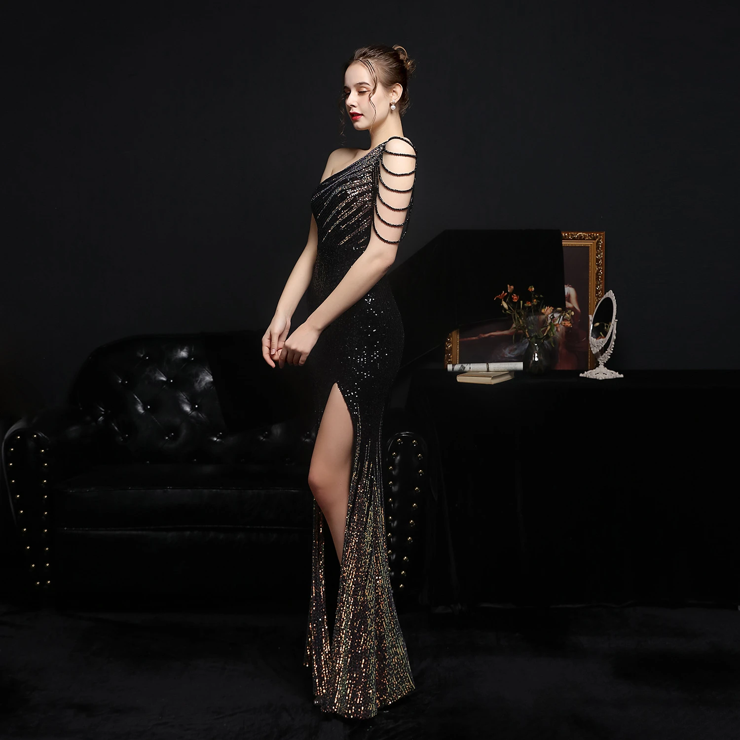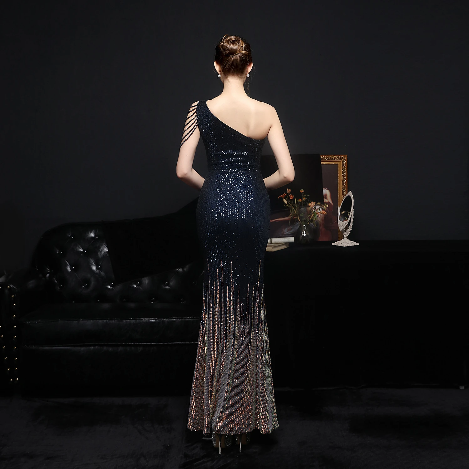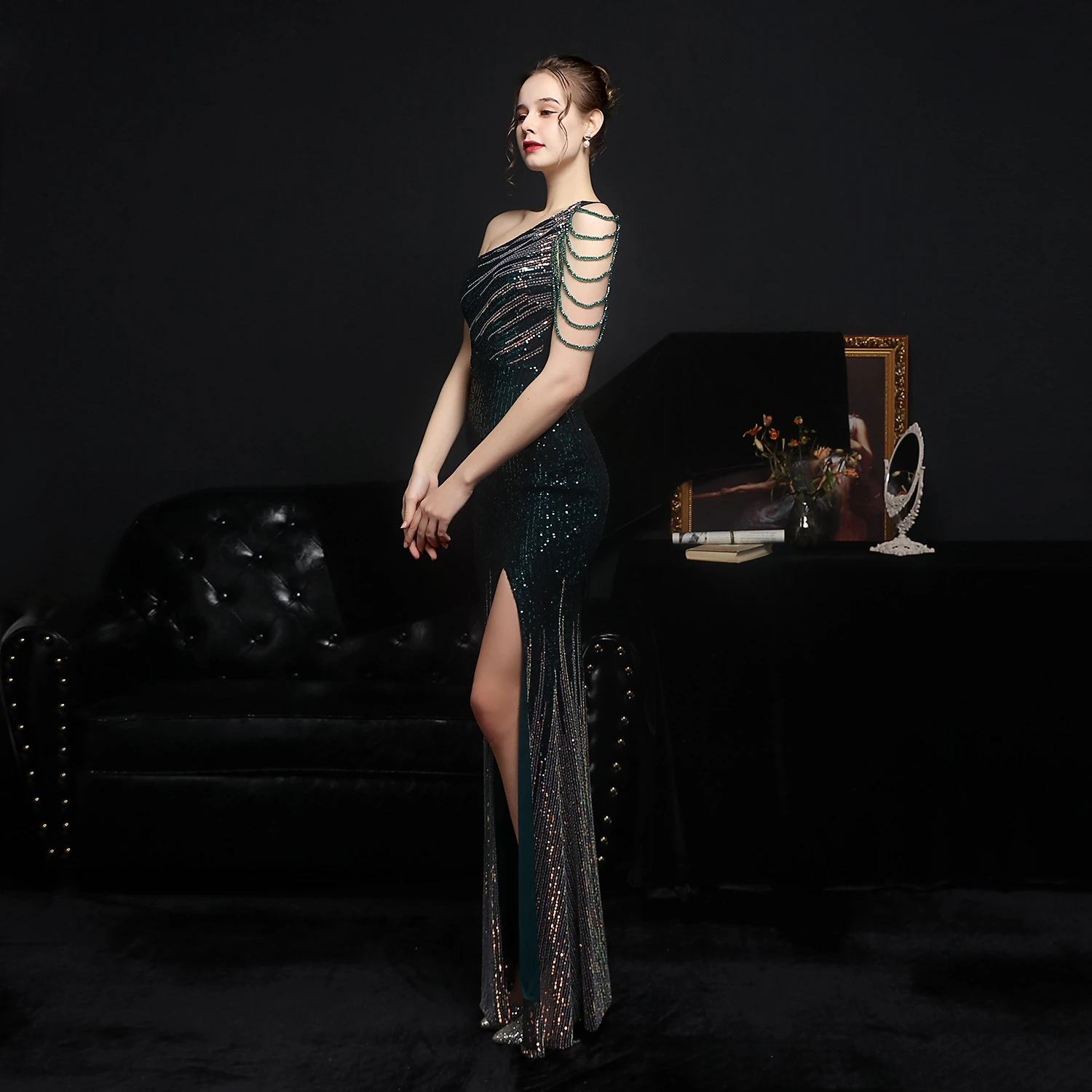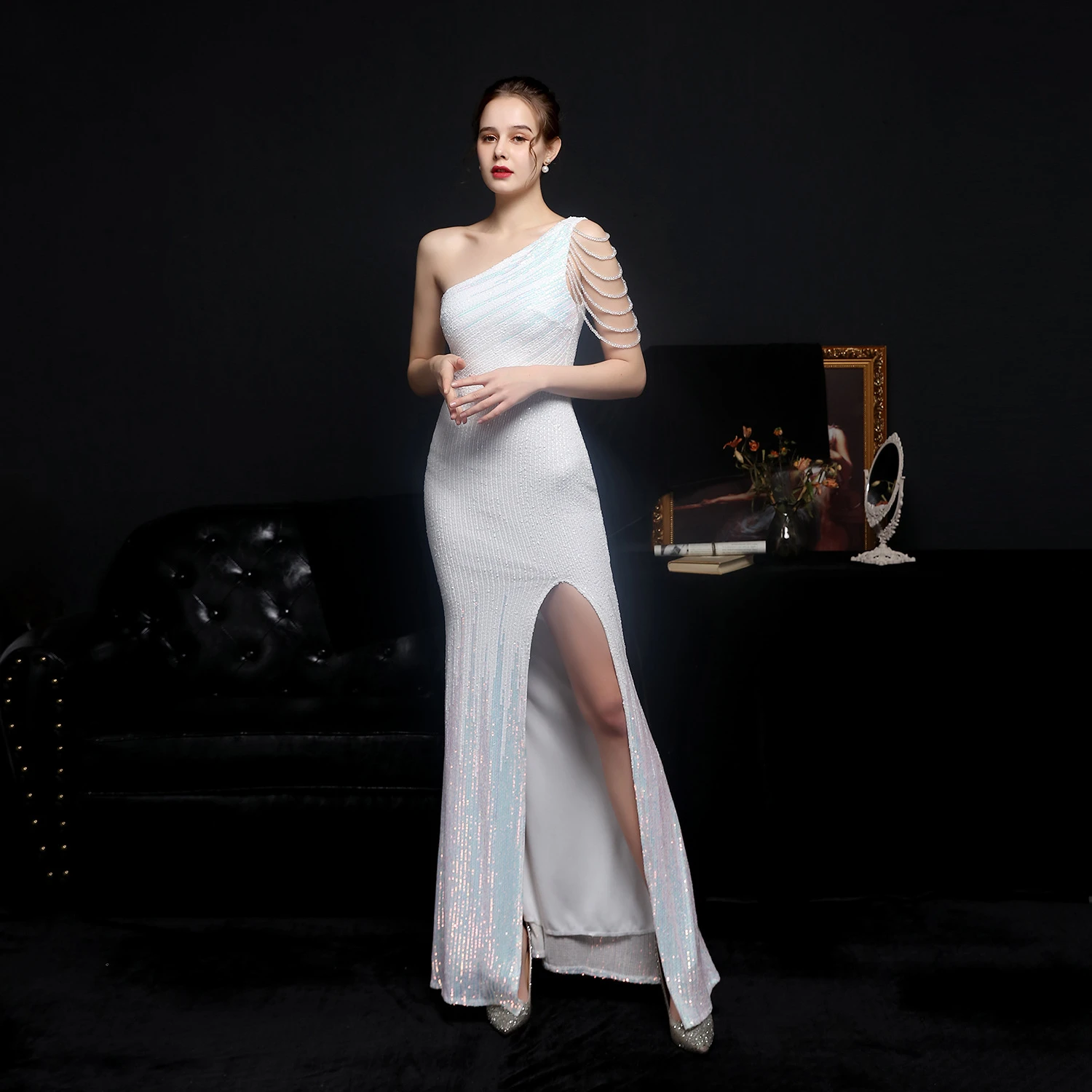 Heavy Craft Colorful Sequin Celebrity Party Party Evening Dress Sexy Long Slim Toast Dress Bride