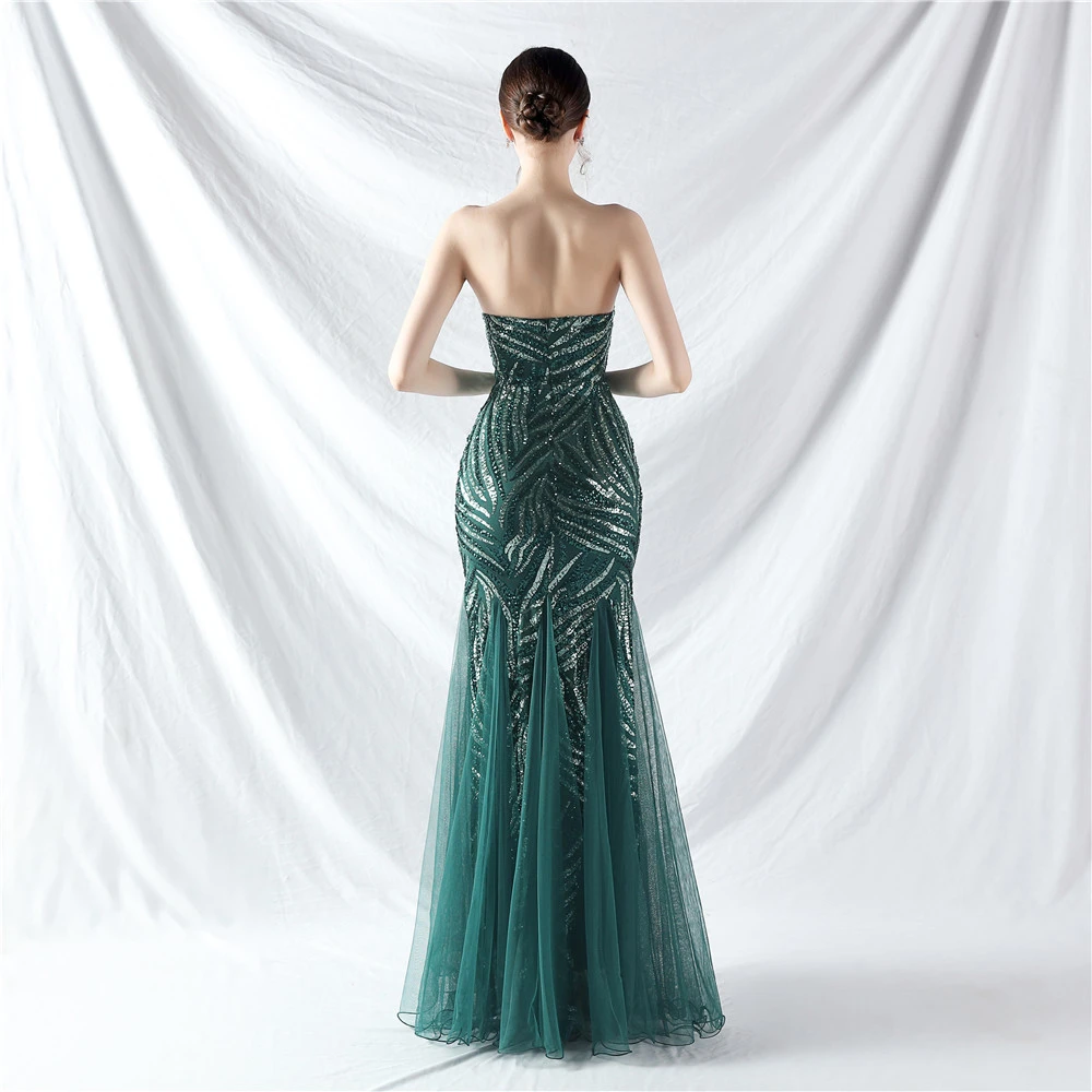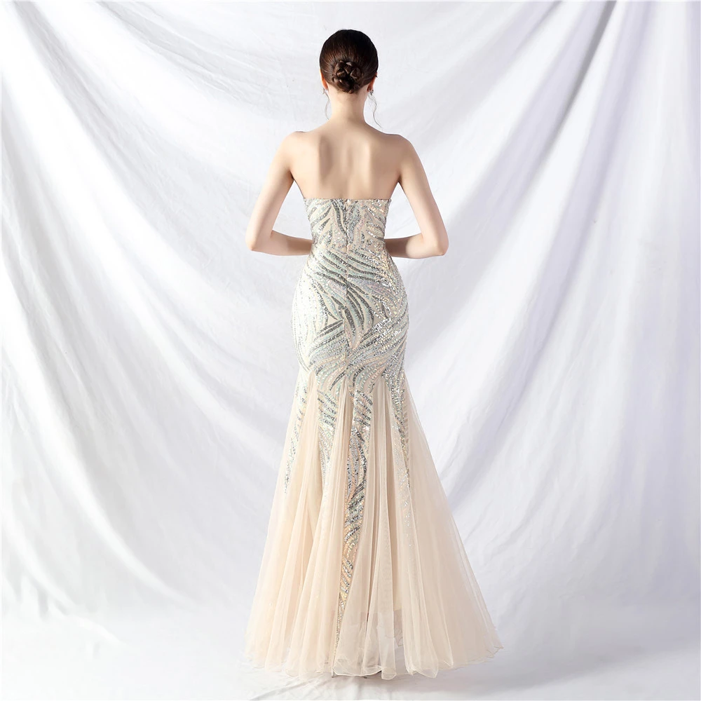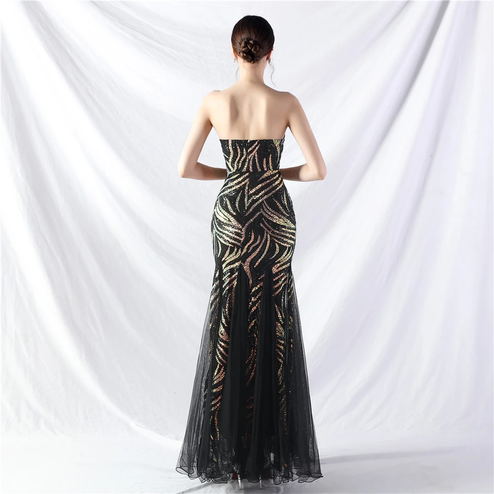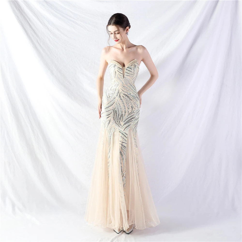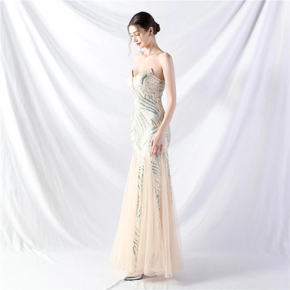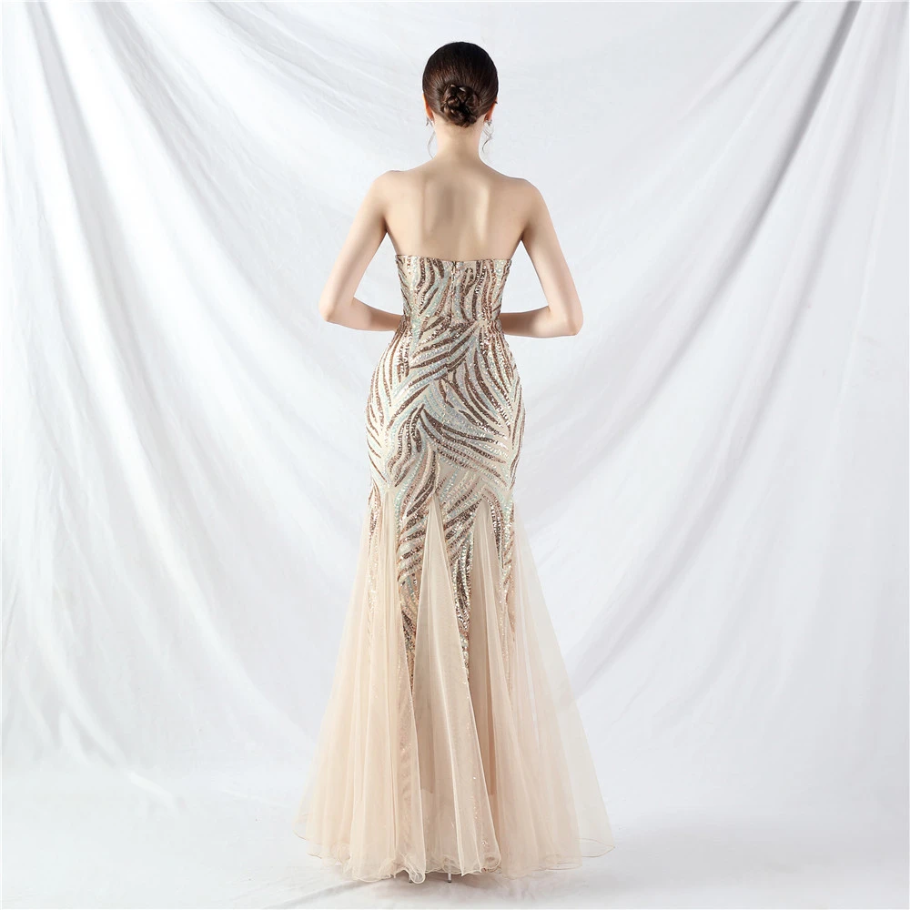 Heavy-Crafted Beaded Splicing Mesh Gauze Super Dense Stacked Sequins Heavy-Crafted Evening Dress