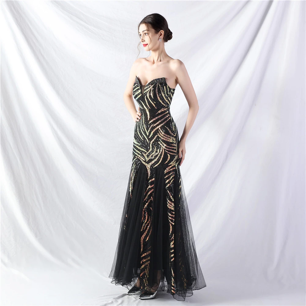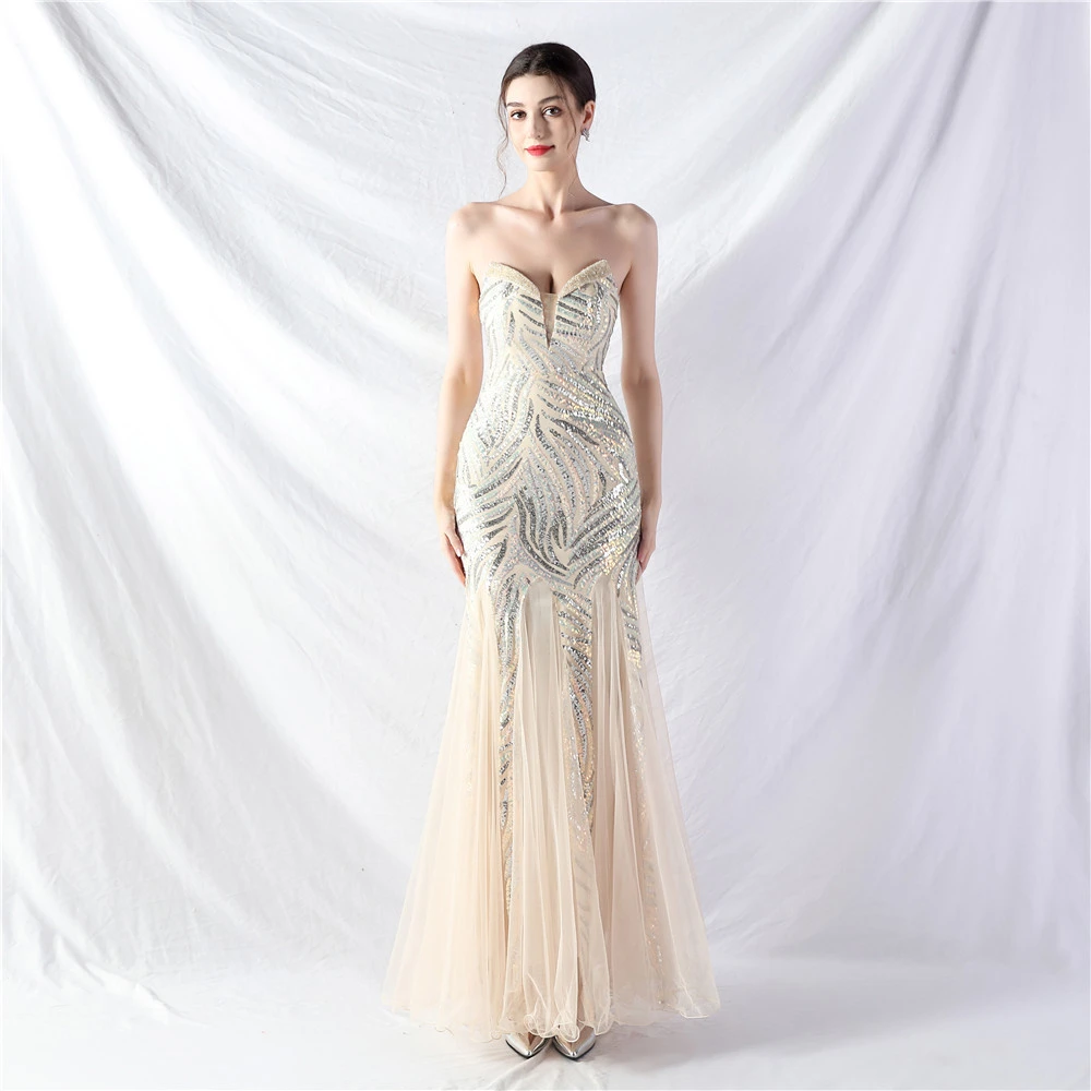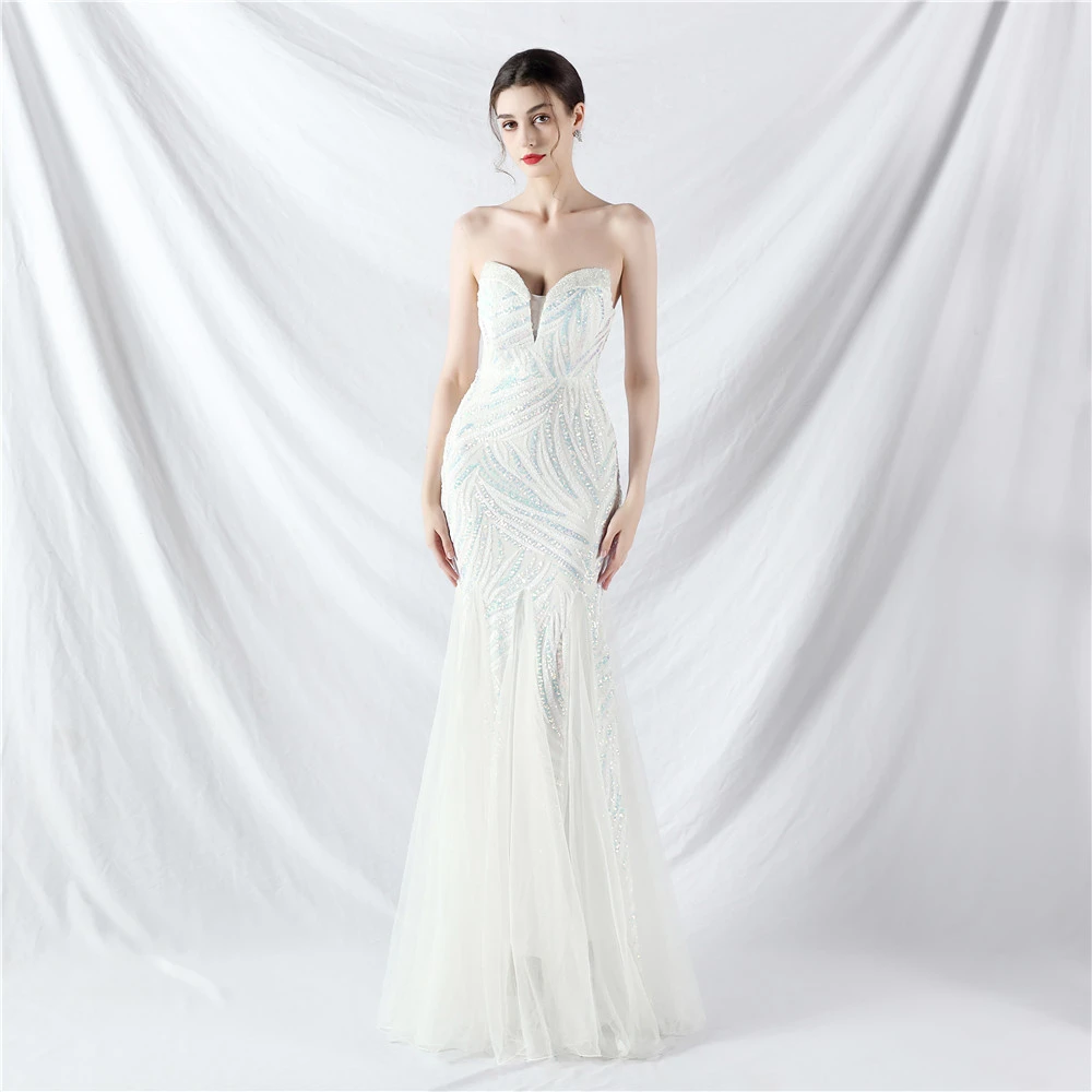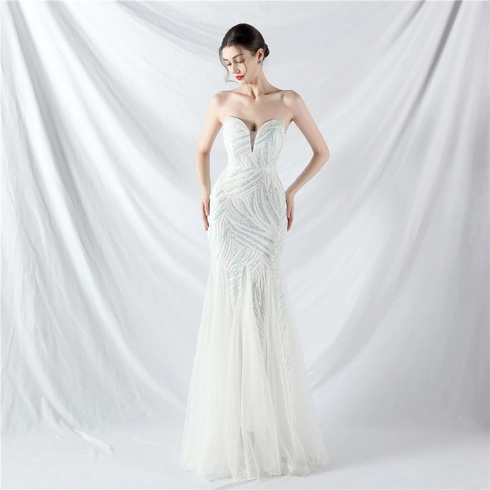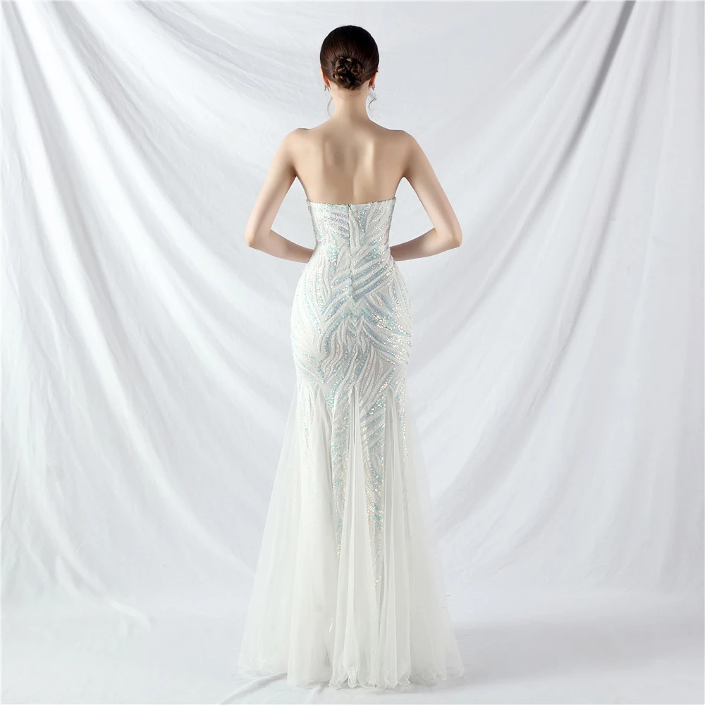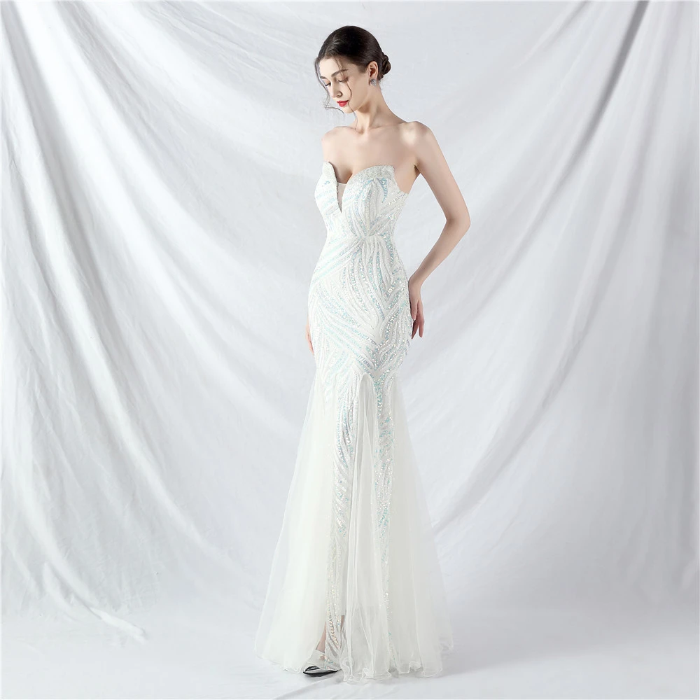 Heavy-Crafted Beaded Splicing Mesh Gauze Super Dense Stacked Sequins Heavy-Crafted Evening Dress