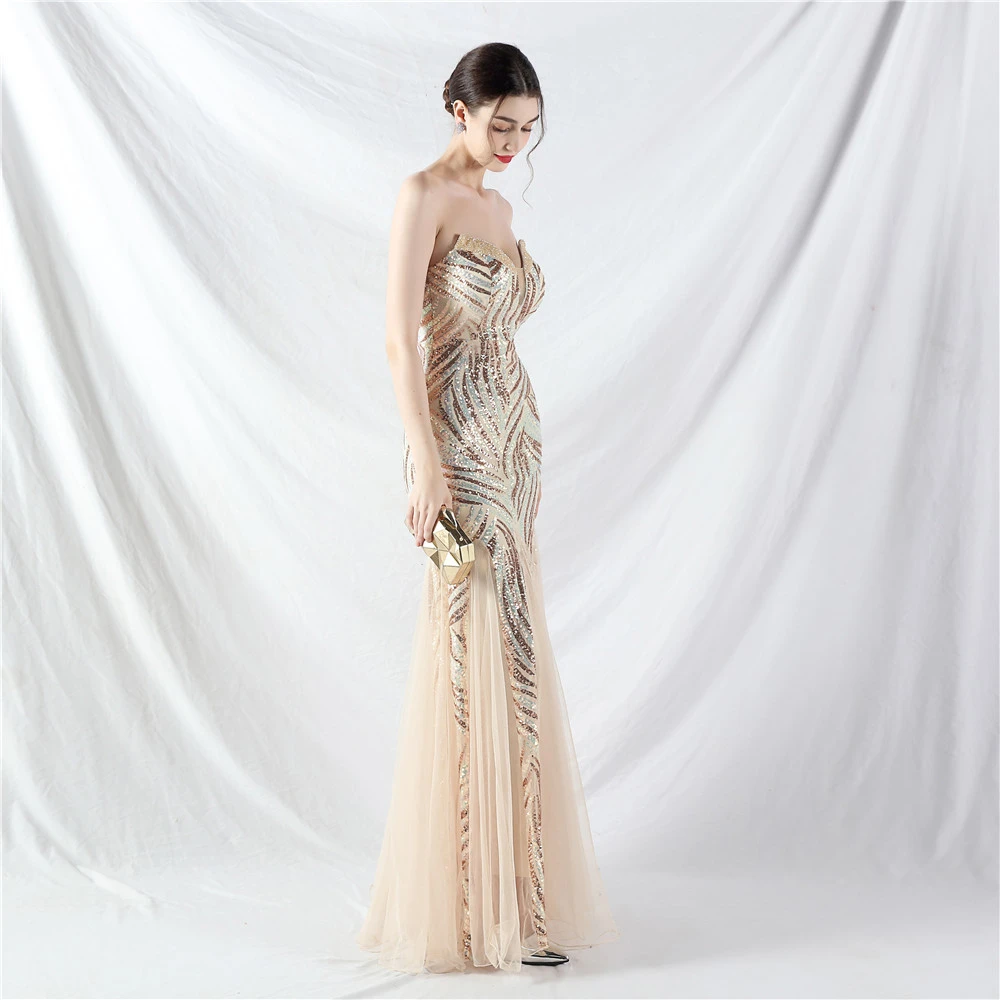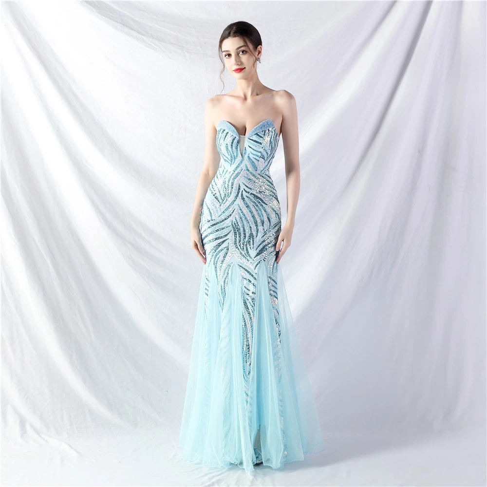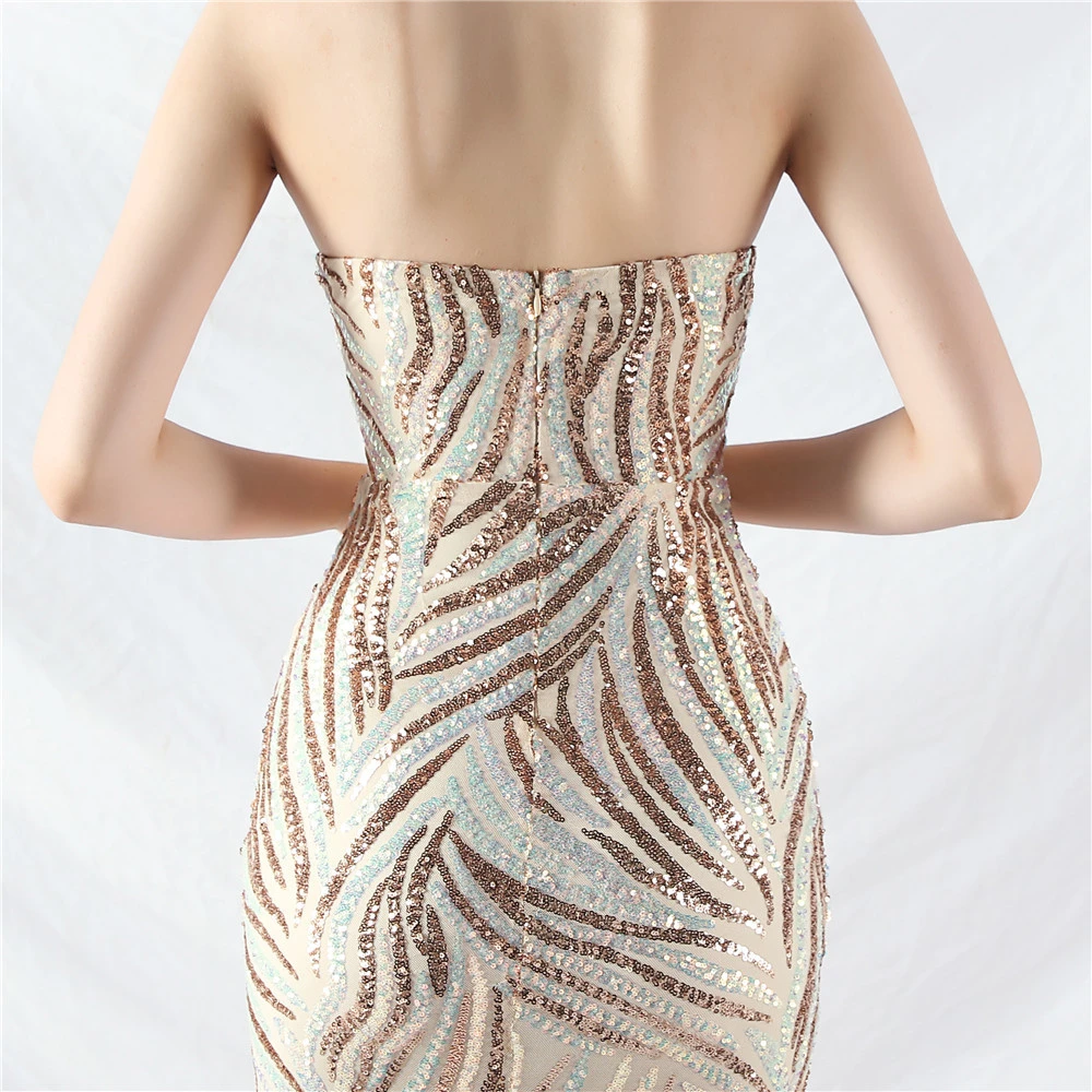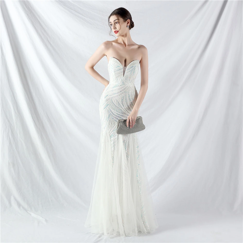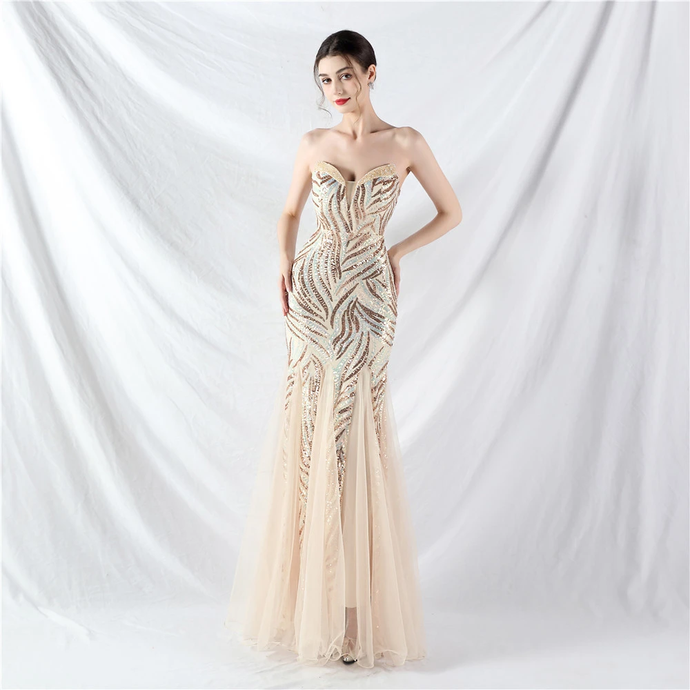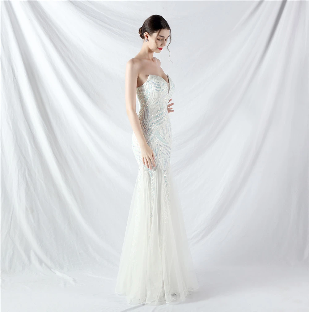 Heavy-Crafted Beaded Splicing Mesh Gauze Super Dense Stacked Sequins Heavy-Crafted Evening Dress