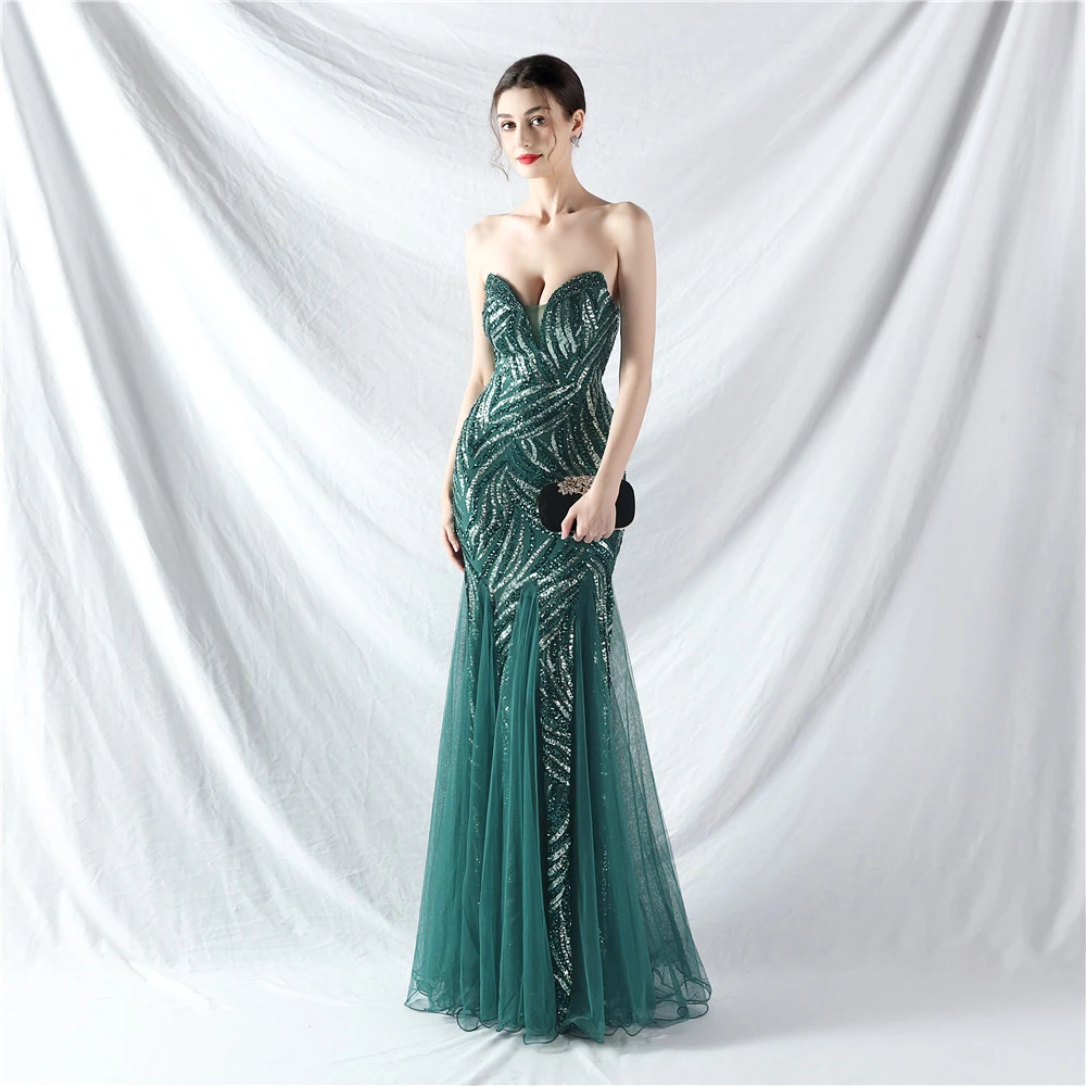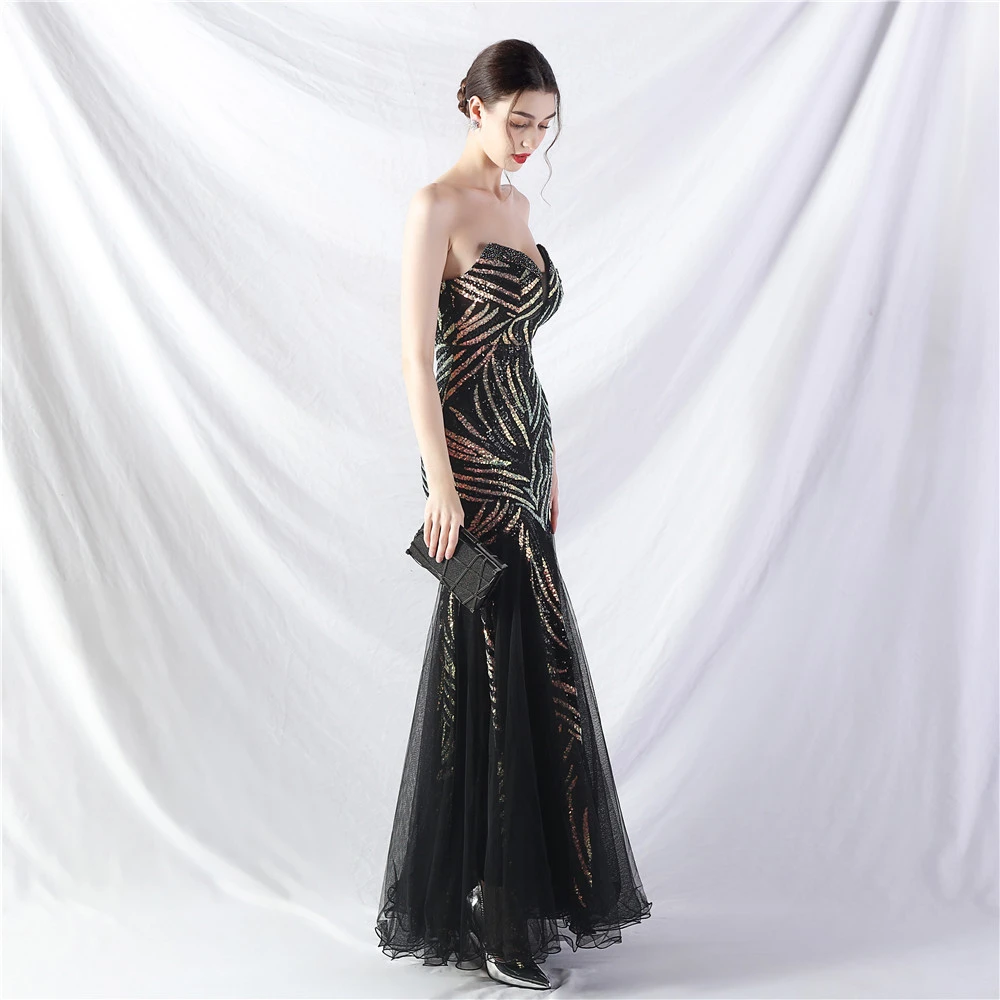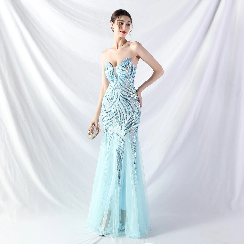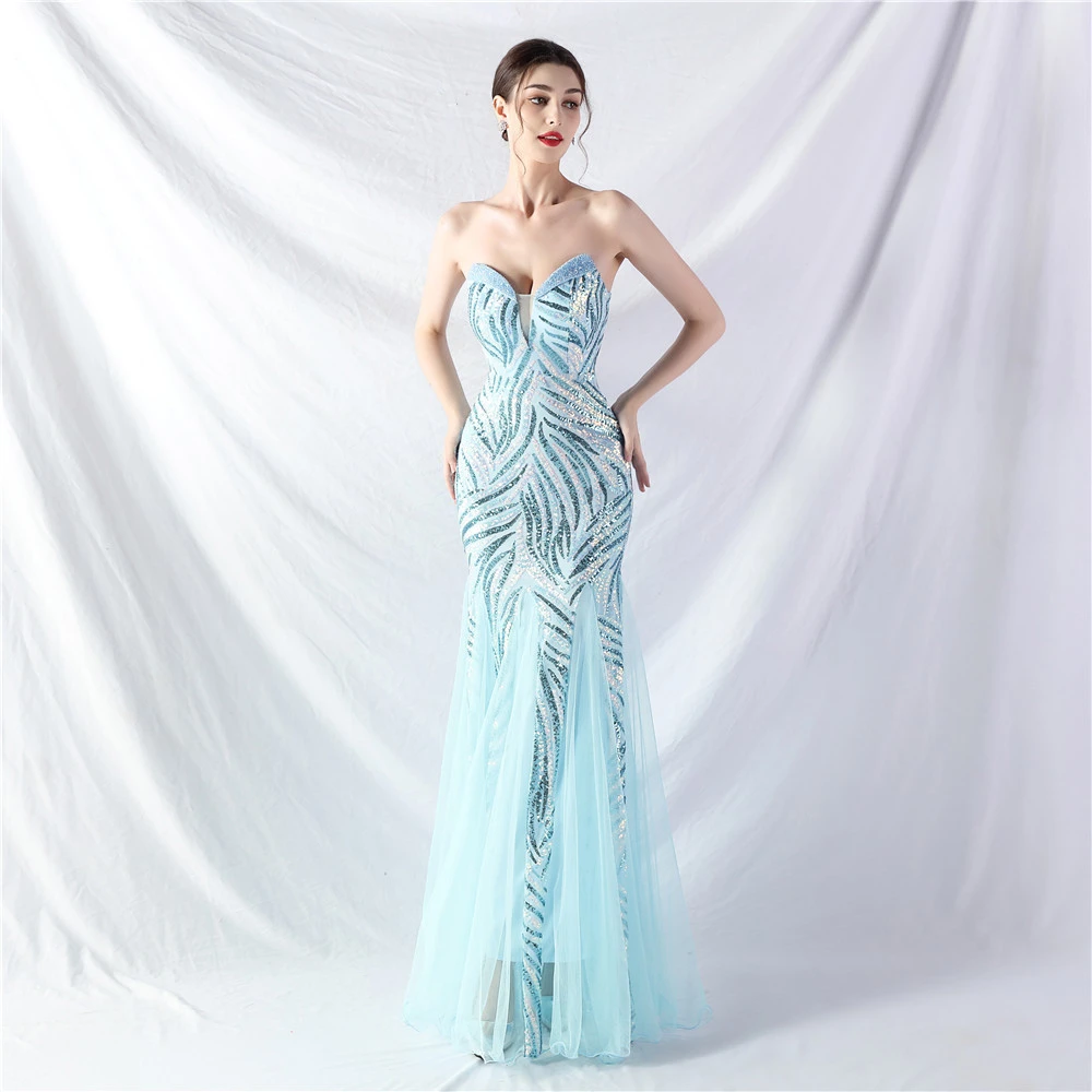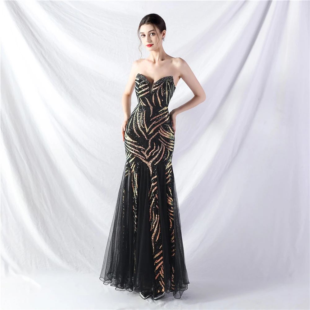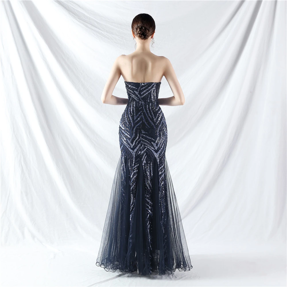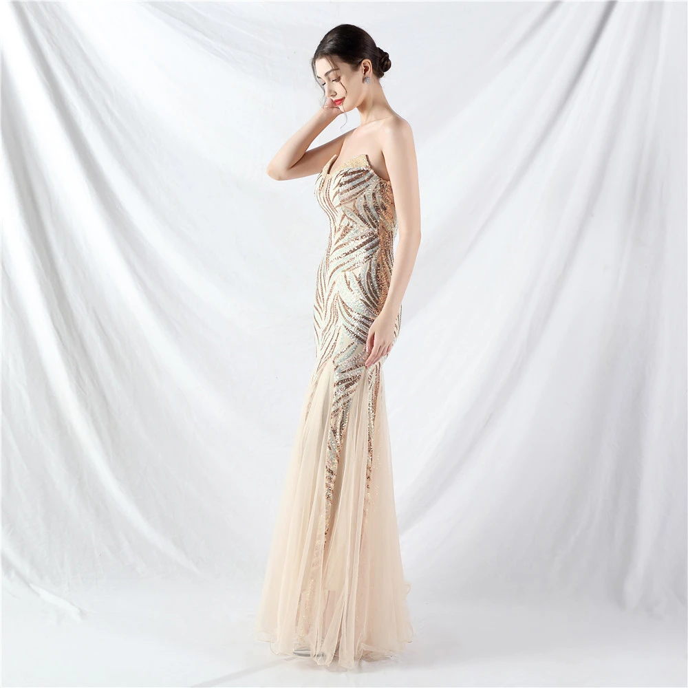 Heavy-Crafted Beaded Splicing Mesh Gauze Super Dense Stacked Sequins Heavy-Crafted Evening Dress
