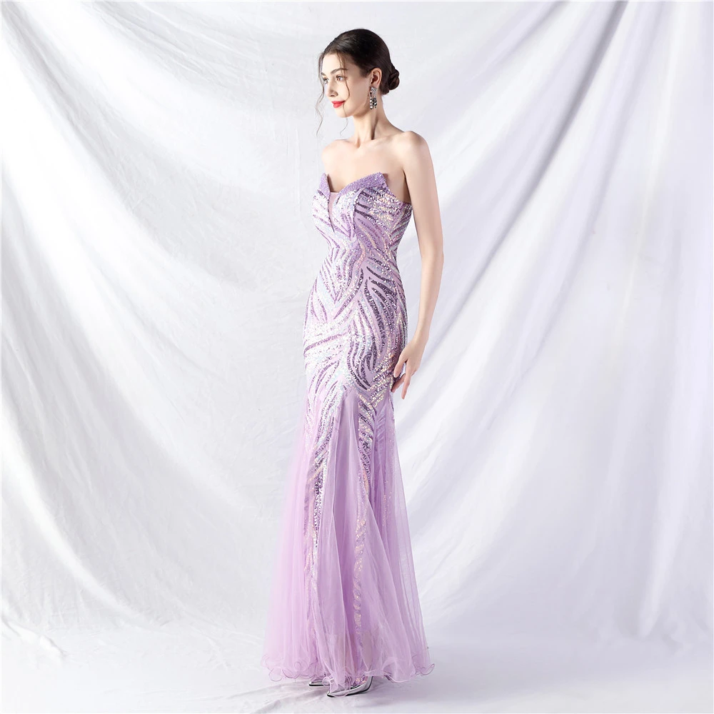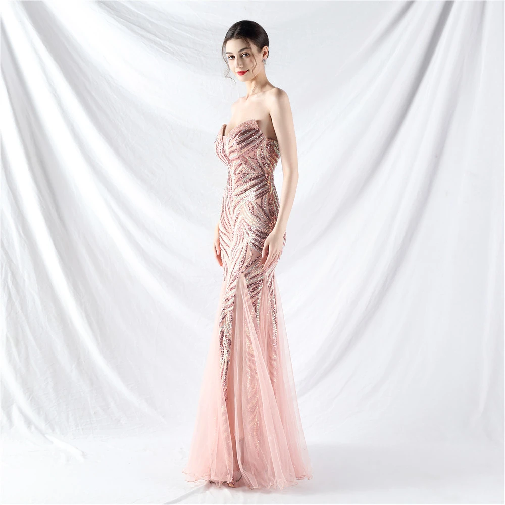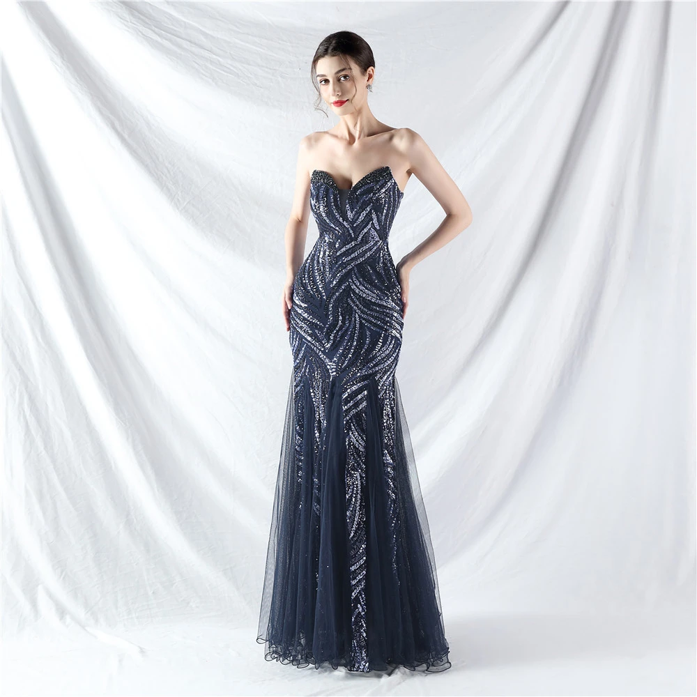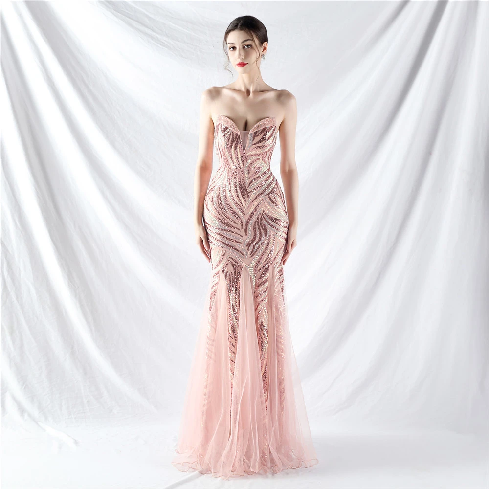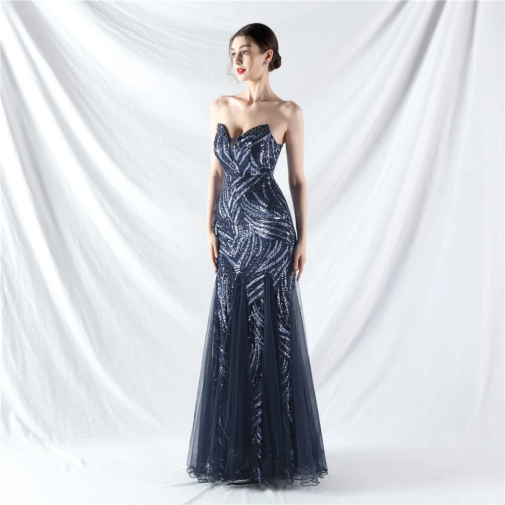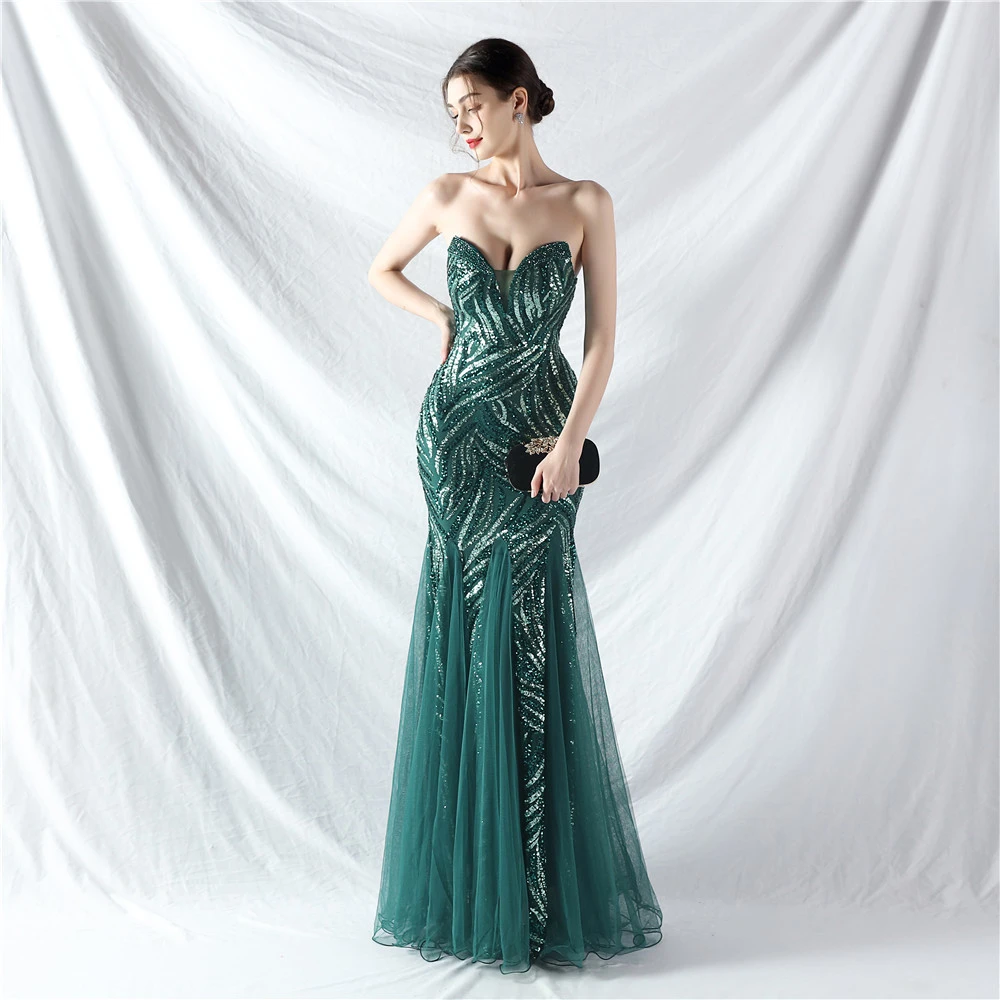 Heavy-Crafted Beaded Splicing Mesh Gauze Super Dense Stacked Sequins Heavy-Crafted Evening Dress