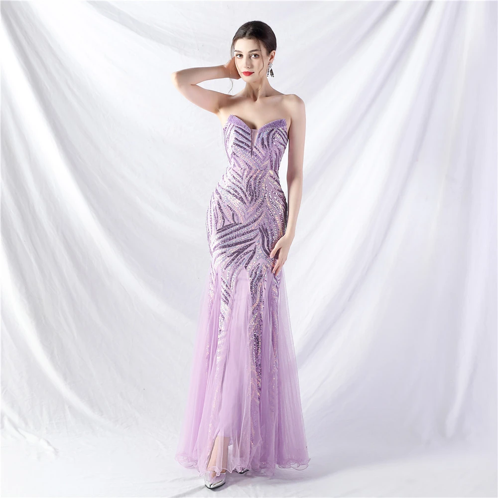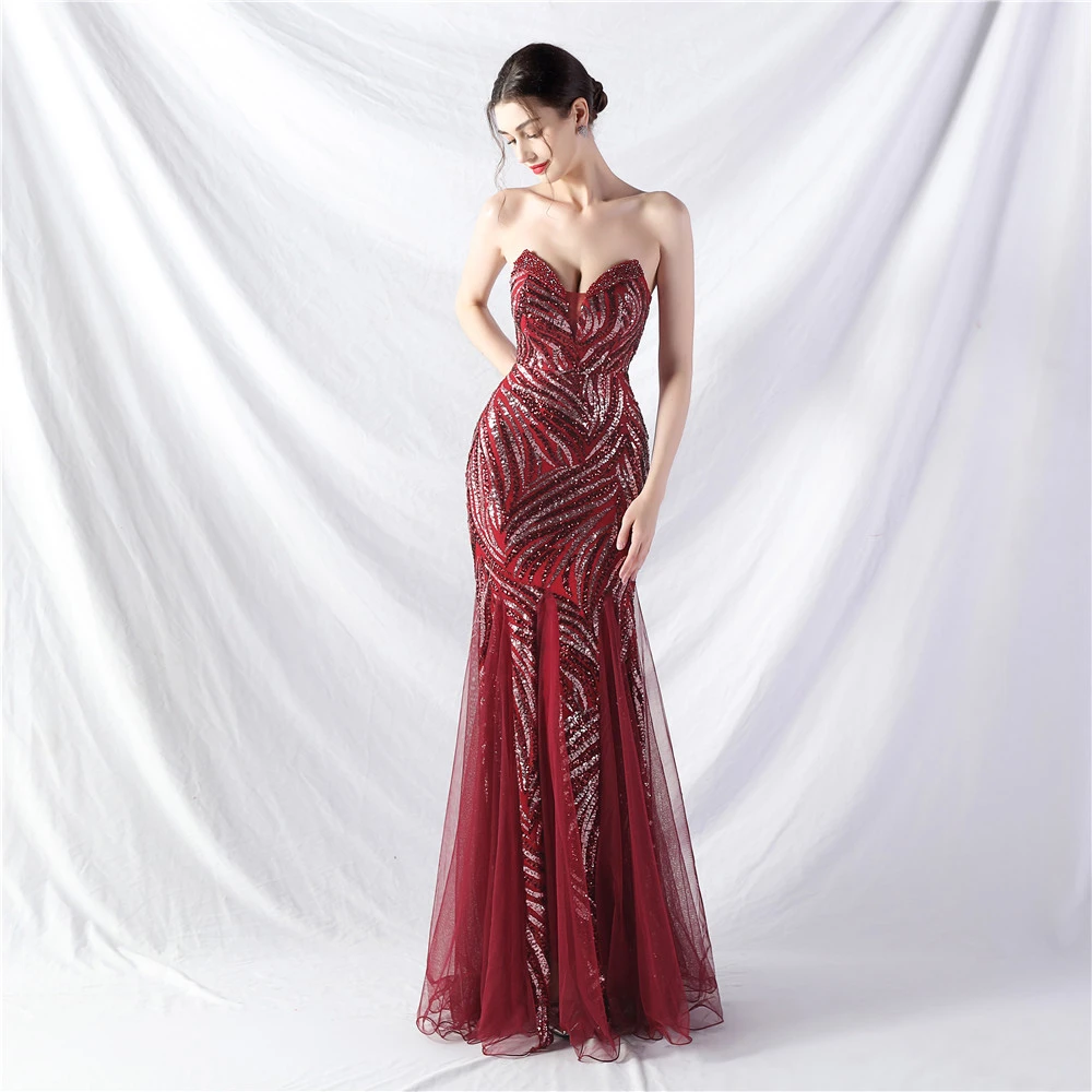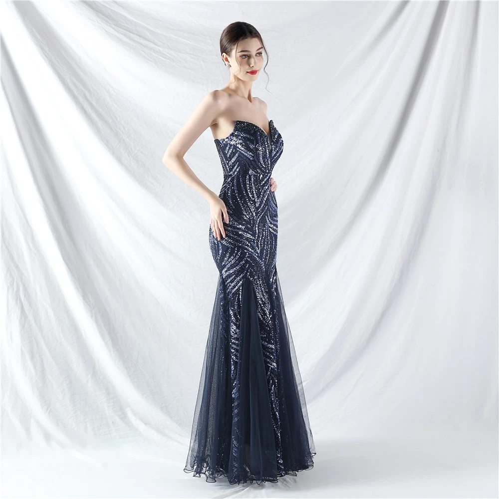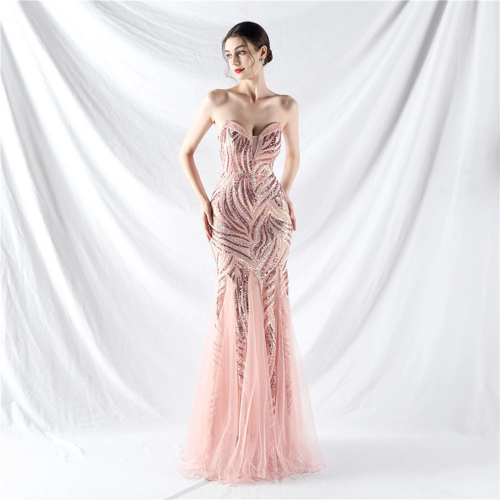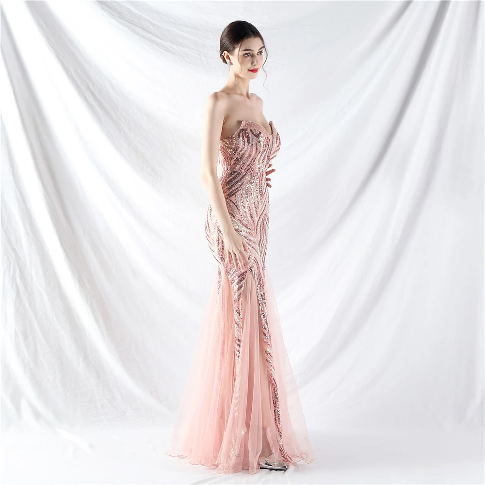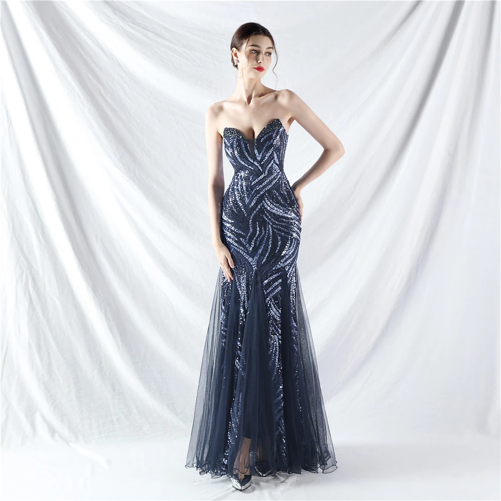 Heavy-Crafted Beaded Splicing Mesh Gauze Super Dense Stacked Sequins Heavy-Crafted Evening Dress