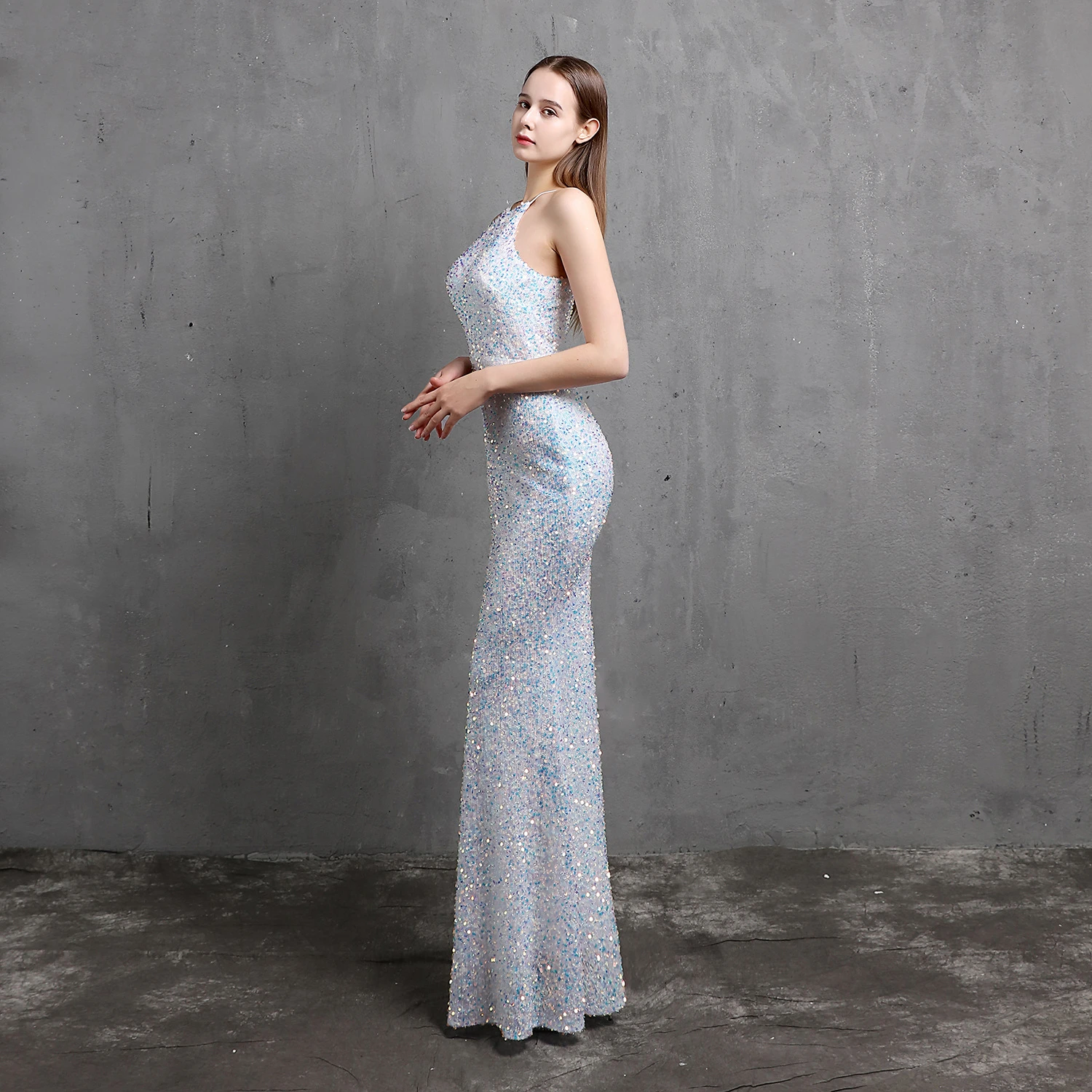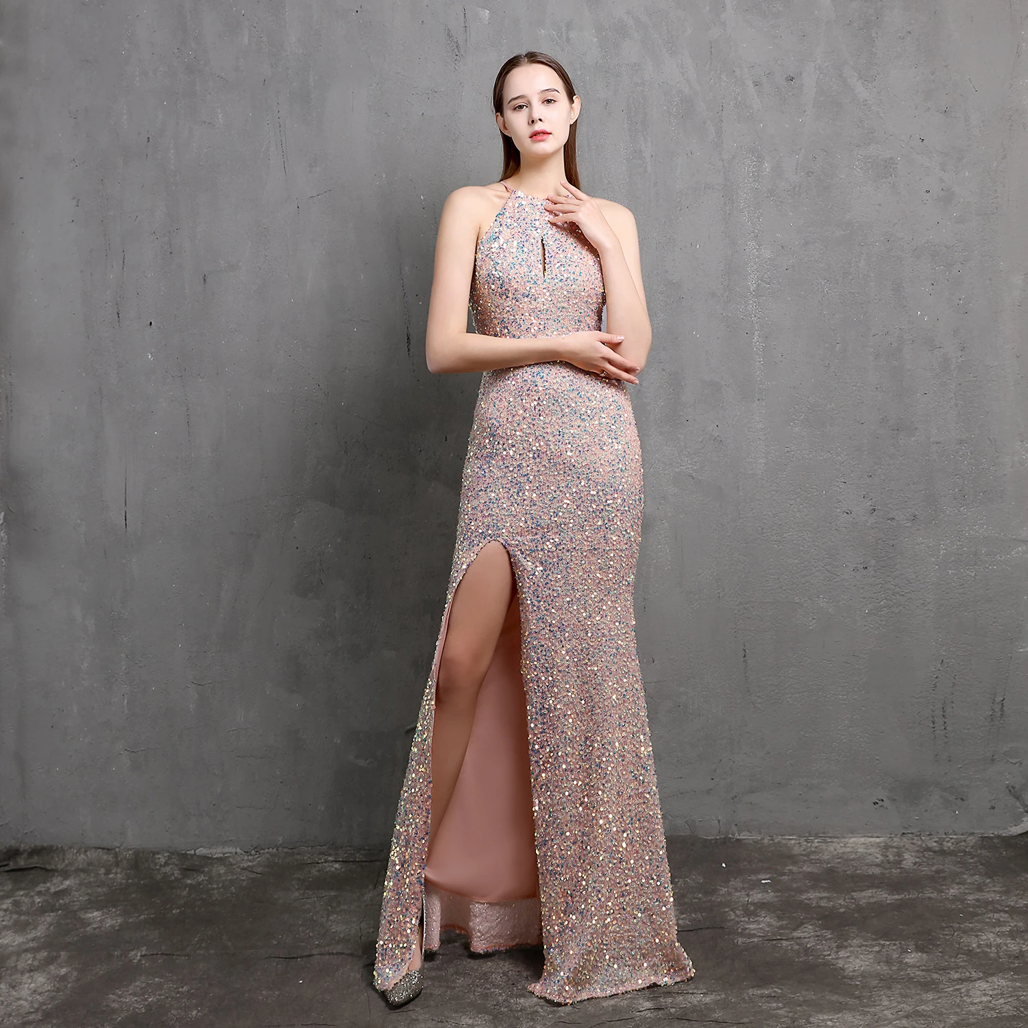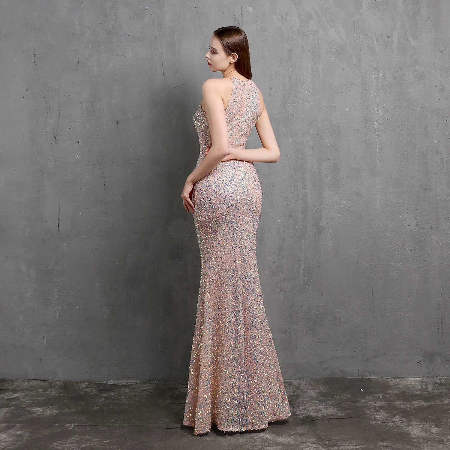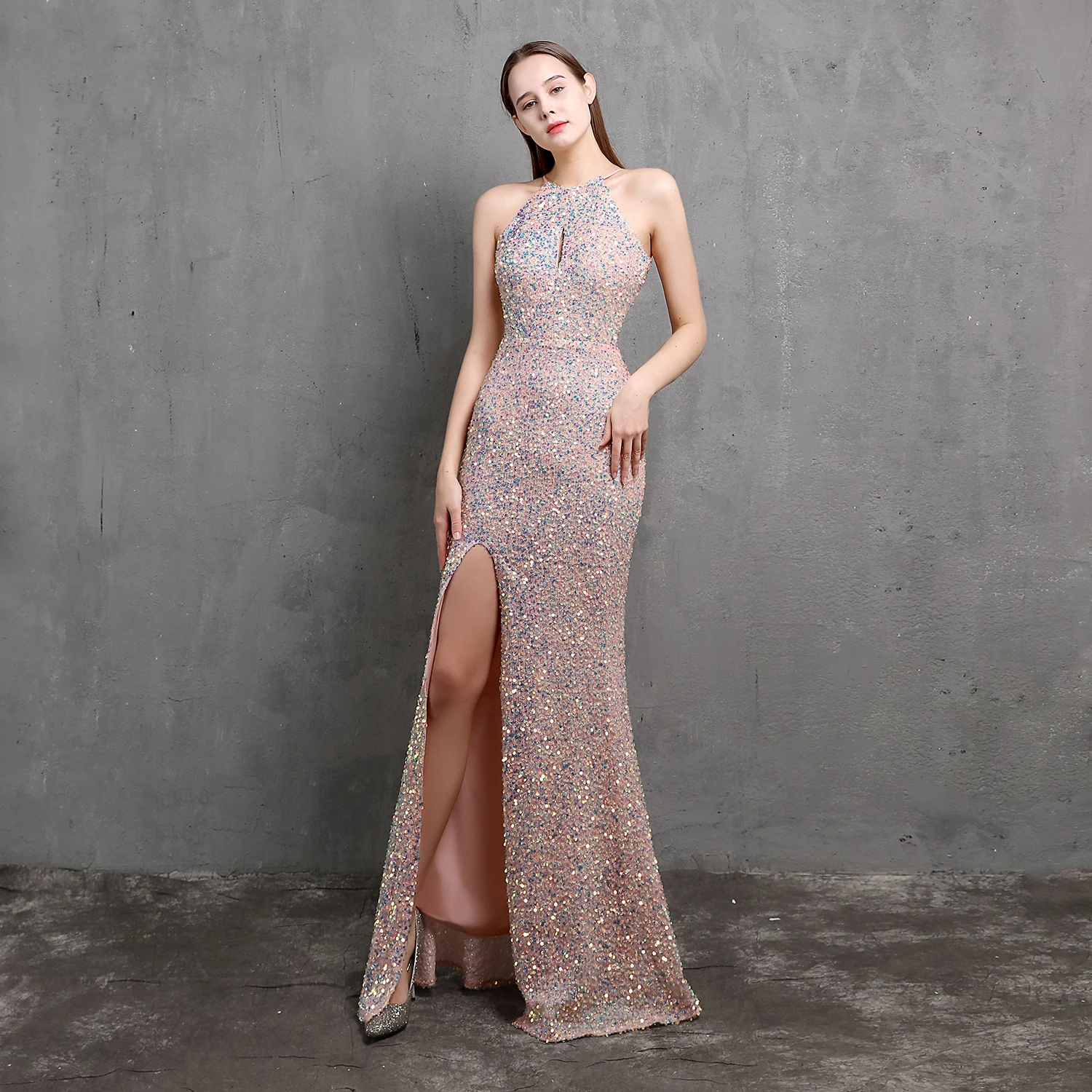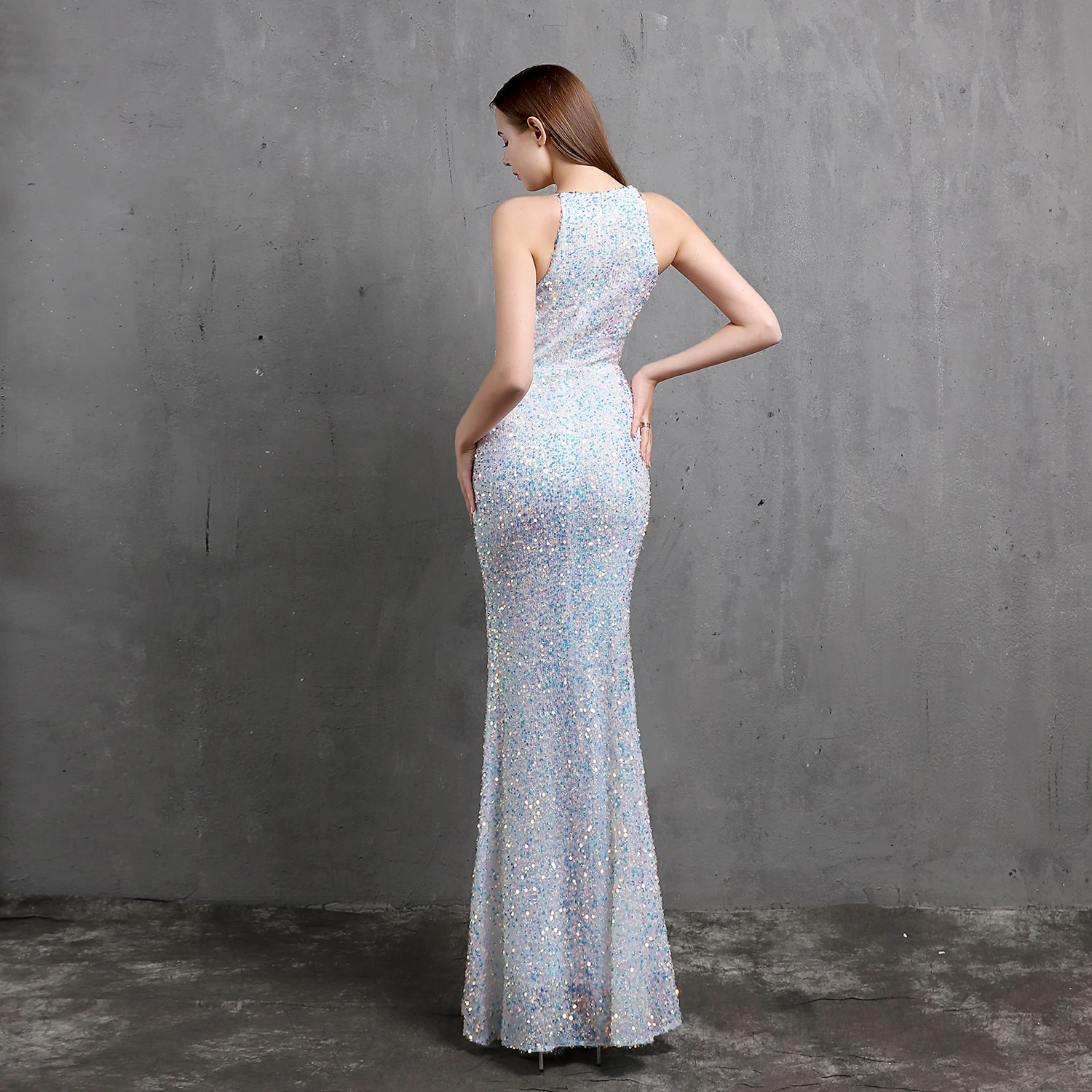 Heavy-Duty Colorful Sequins Celebrity Party Party Evening Dress Sexy Long Slim Toast Dress Bride