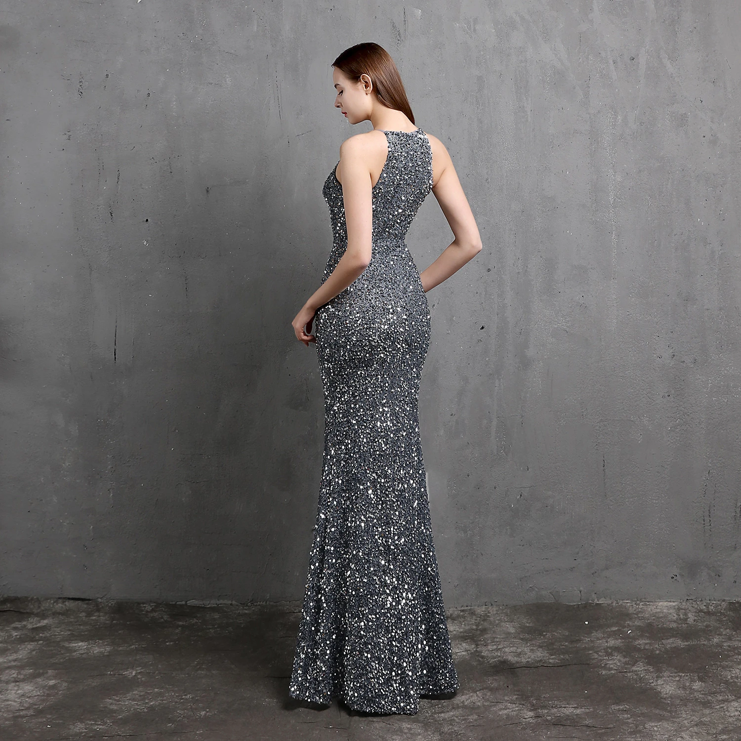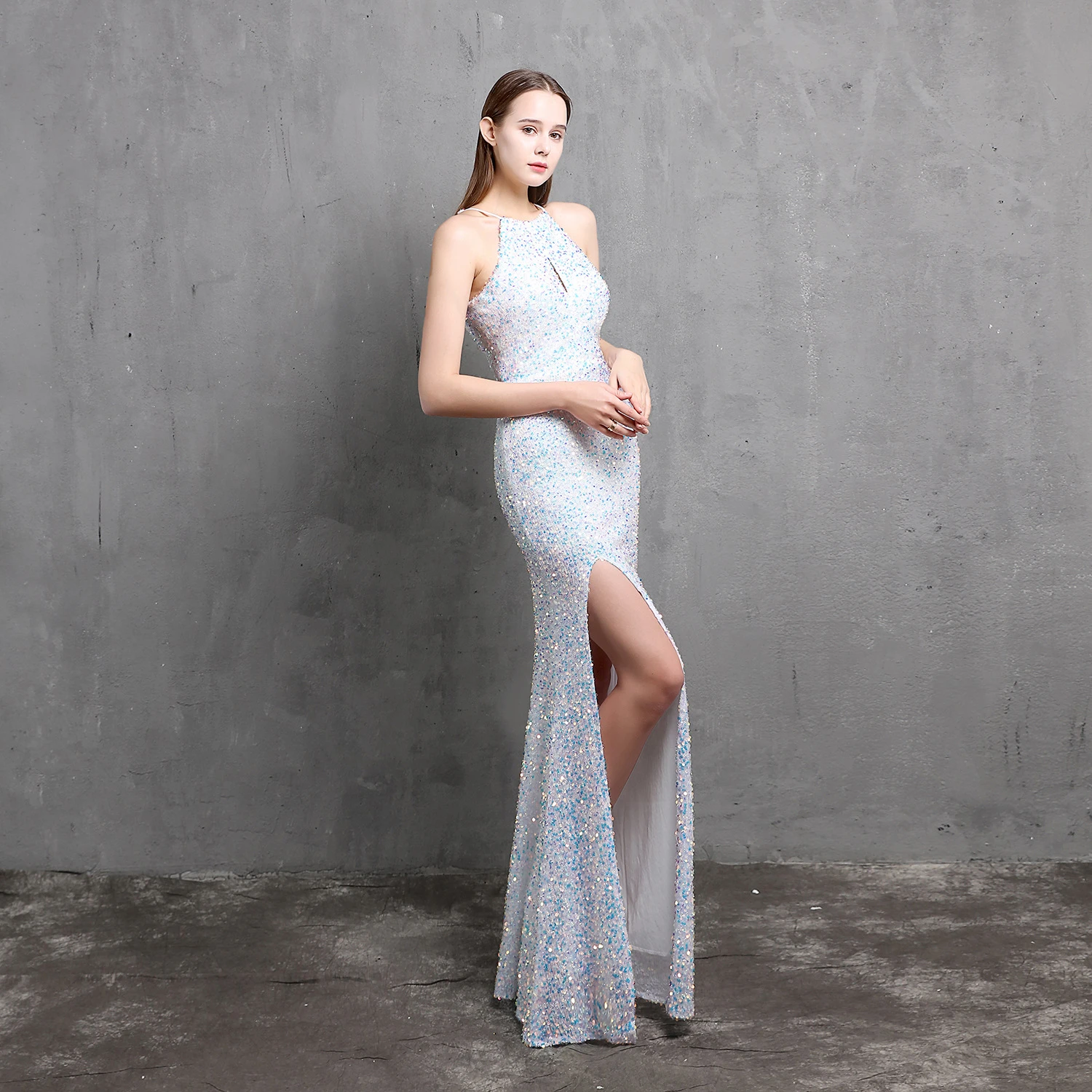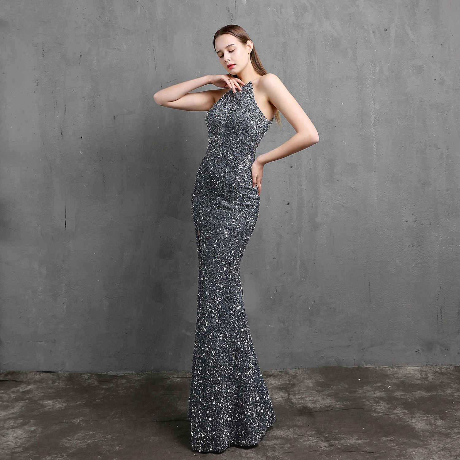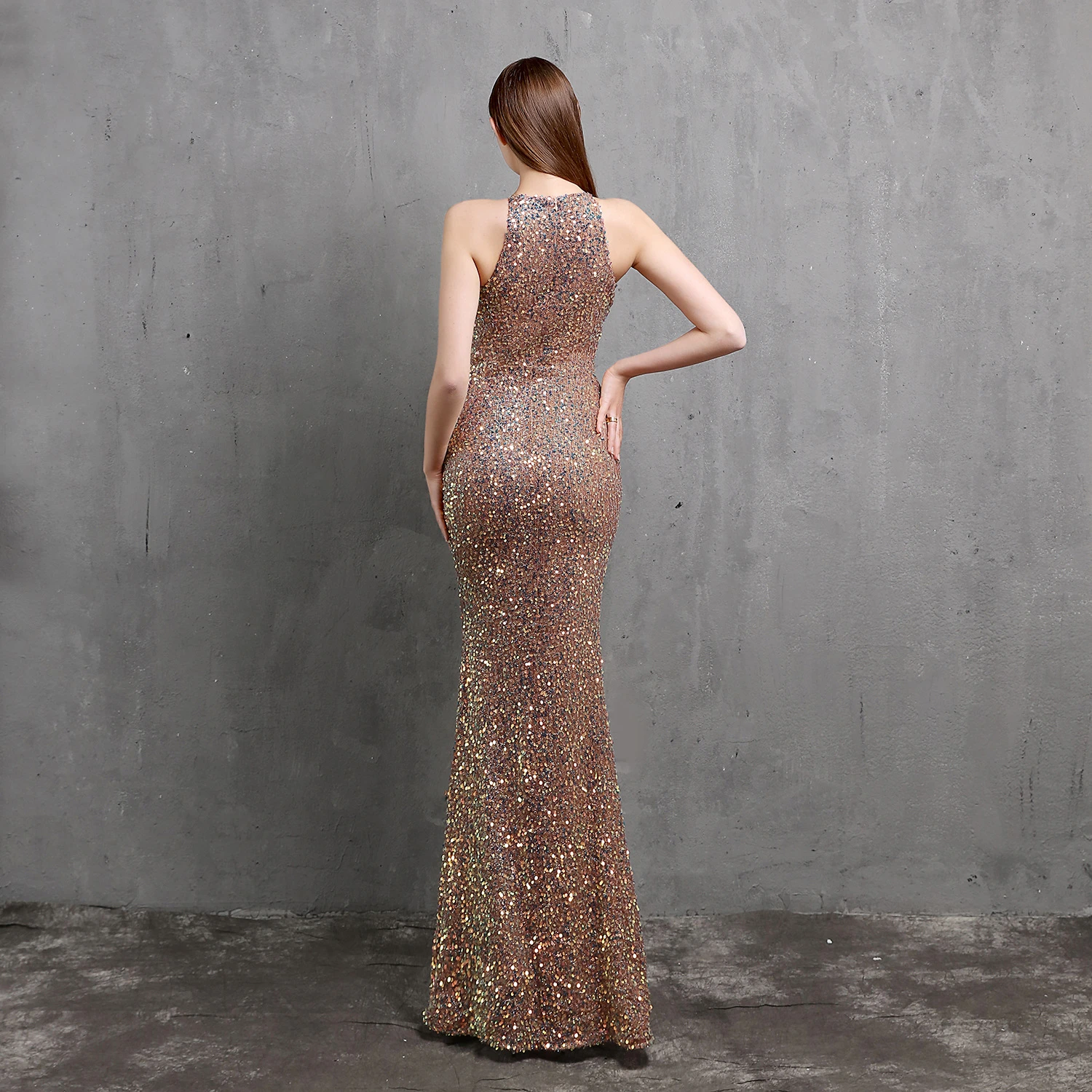 Heavy-Duty Colorful Sequins Celebrity Party Party Evening Dress Sexy Long Slim Toast Dress Bride