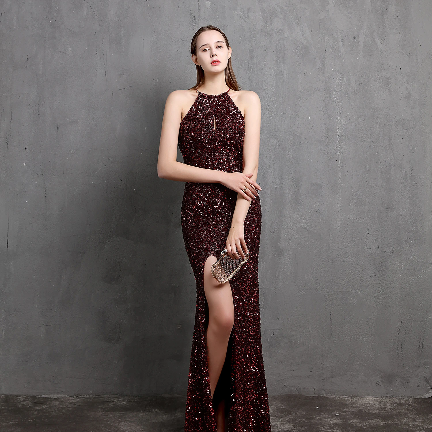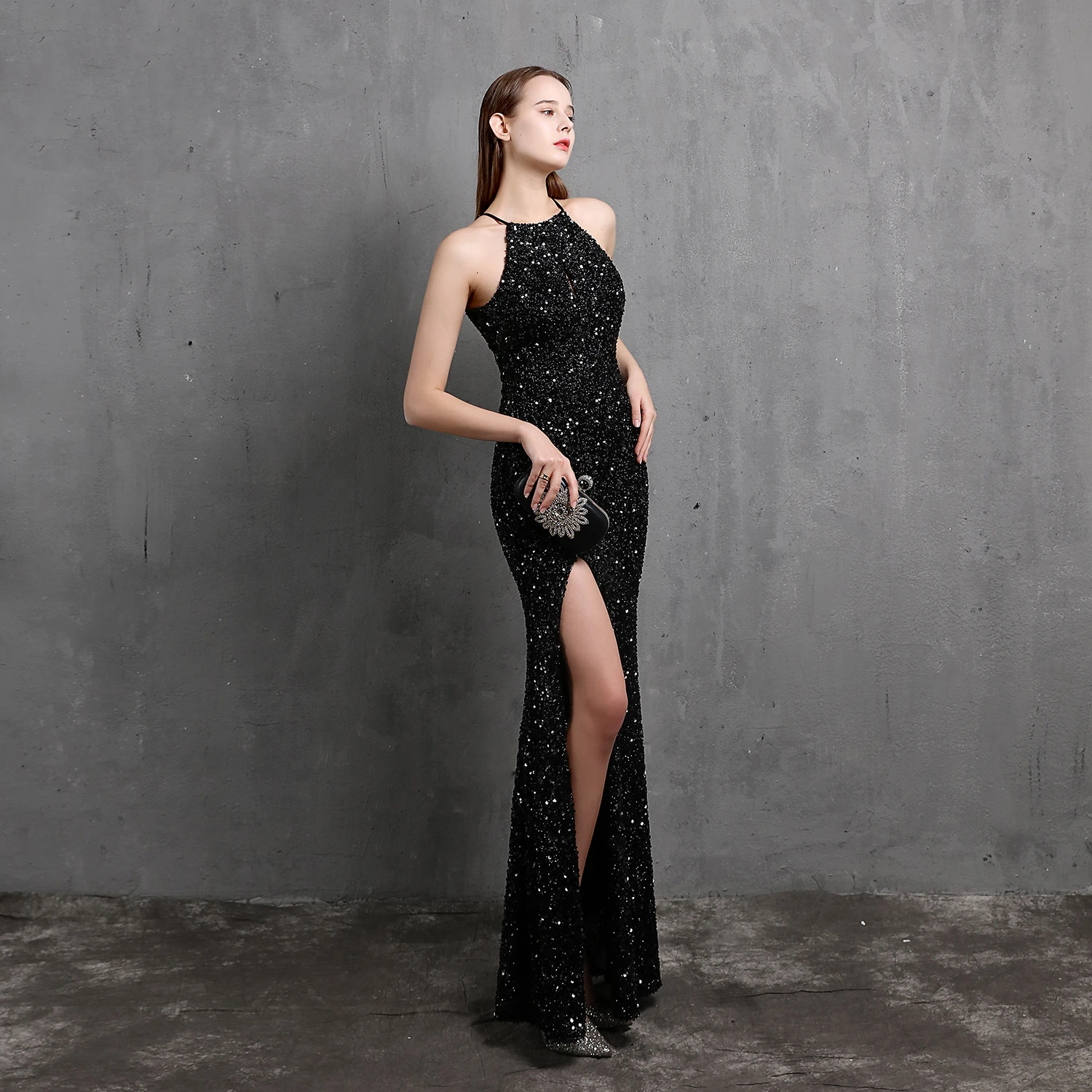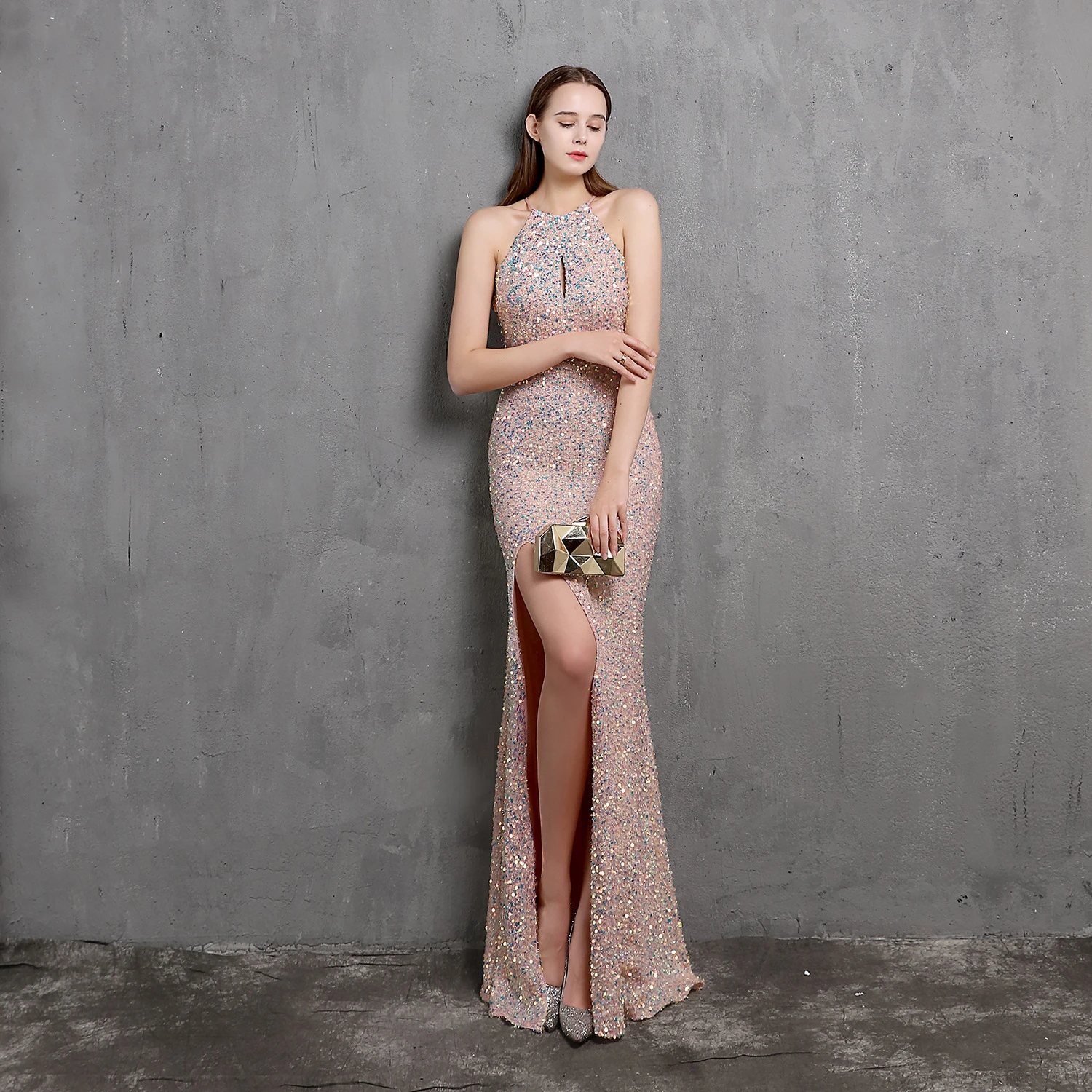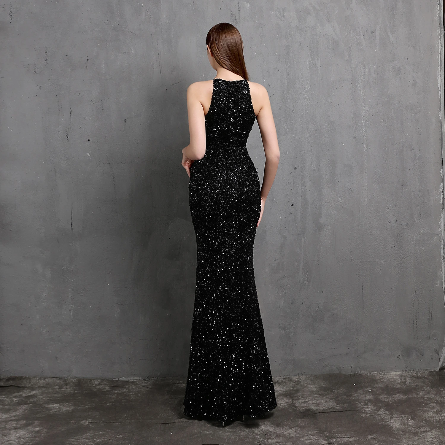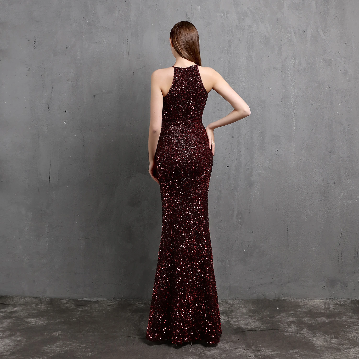 Heavy-Duty Colorful Sequins Celebrity Party Party Evening Dress Sexy Long Slim Toast Dress Bride