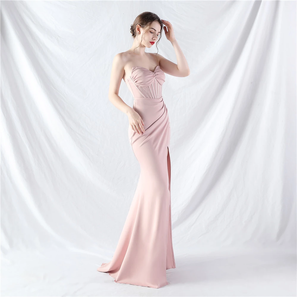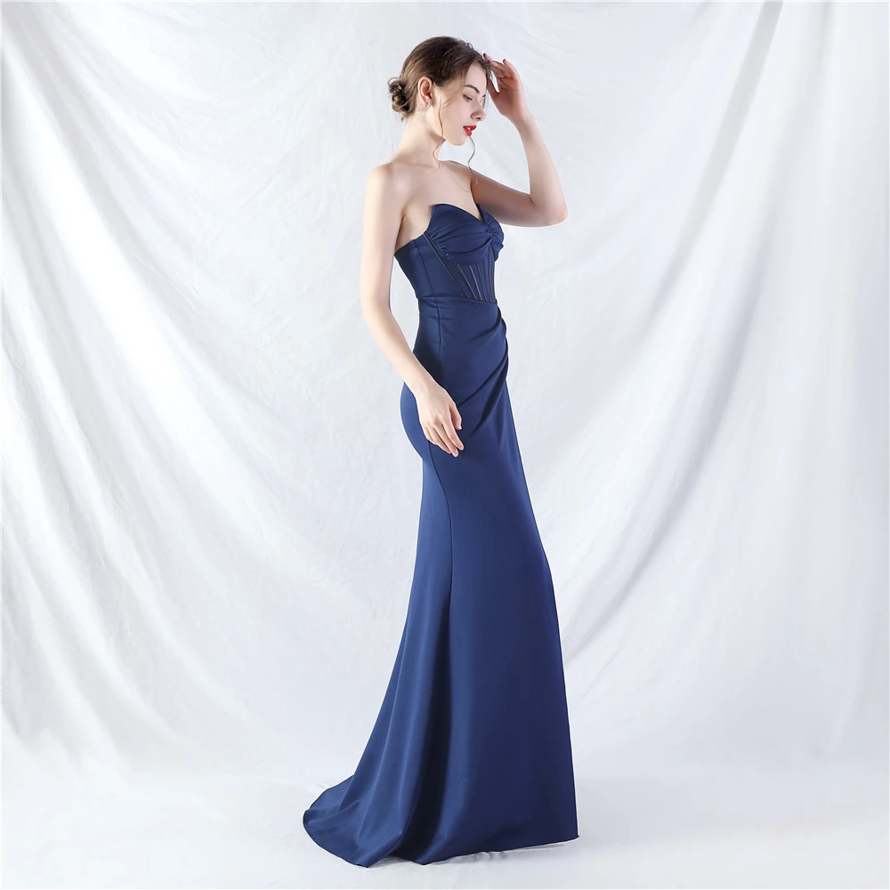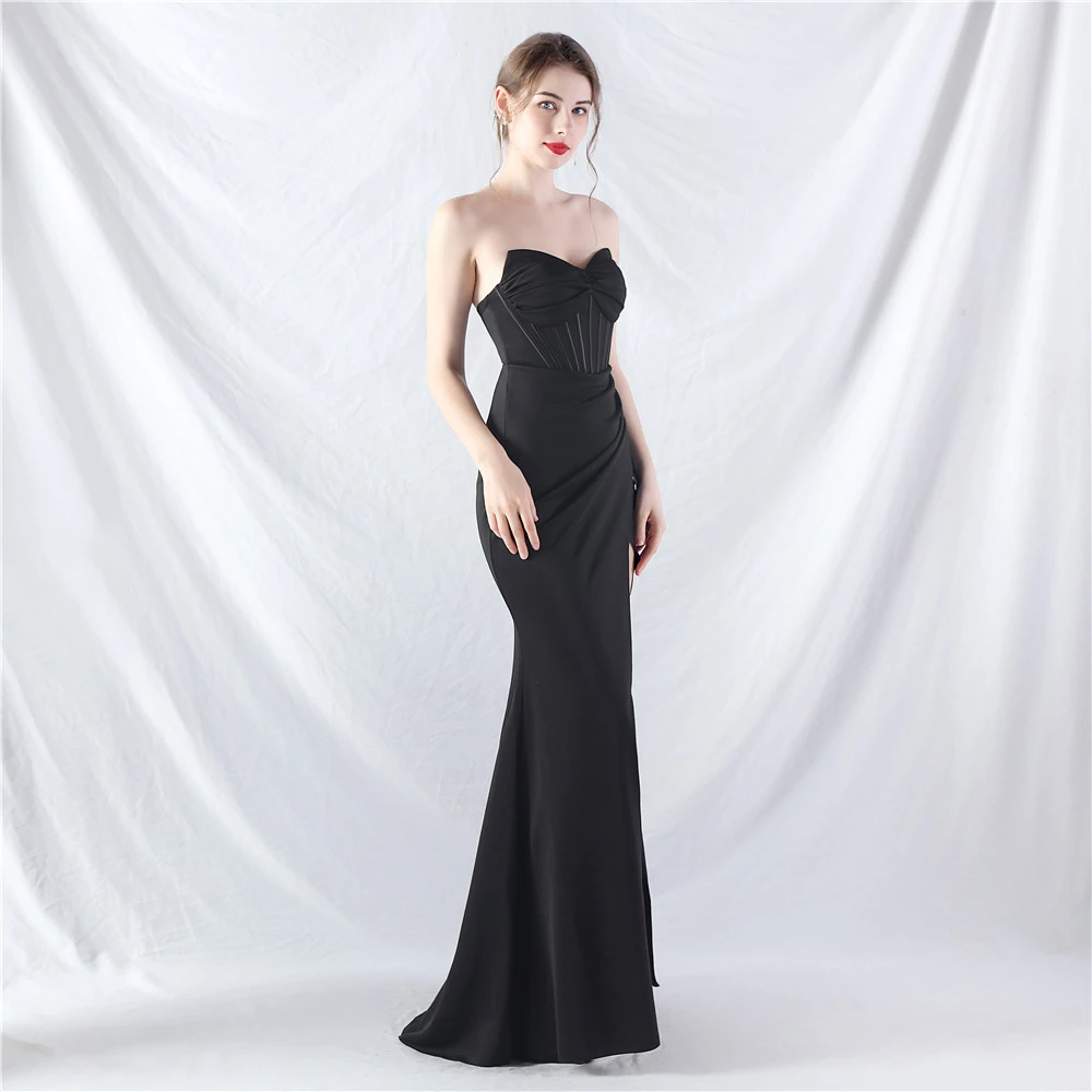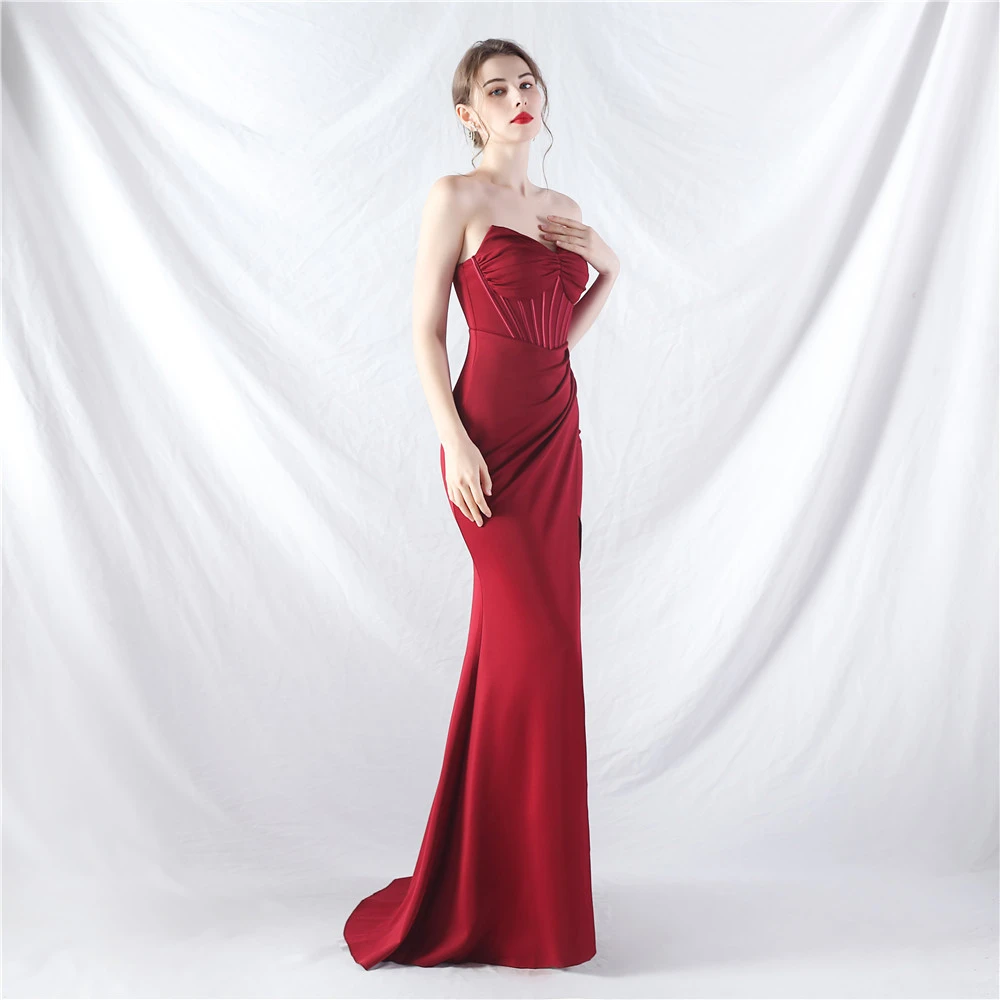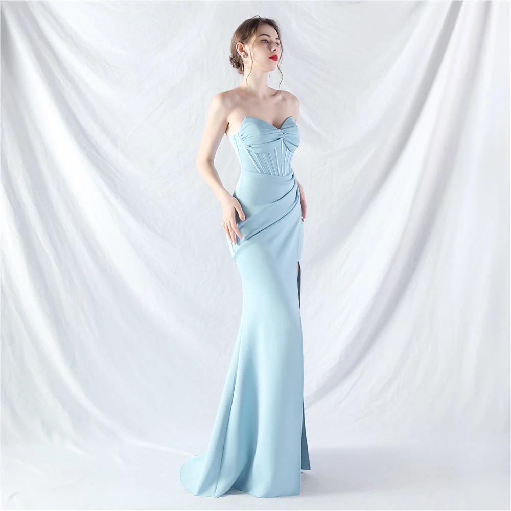 Heavy-Duty Palace Fishbone Vest Waisted High-End Small Vertical Tail Satin Evening Dress
