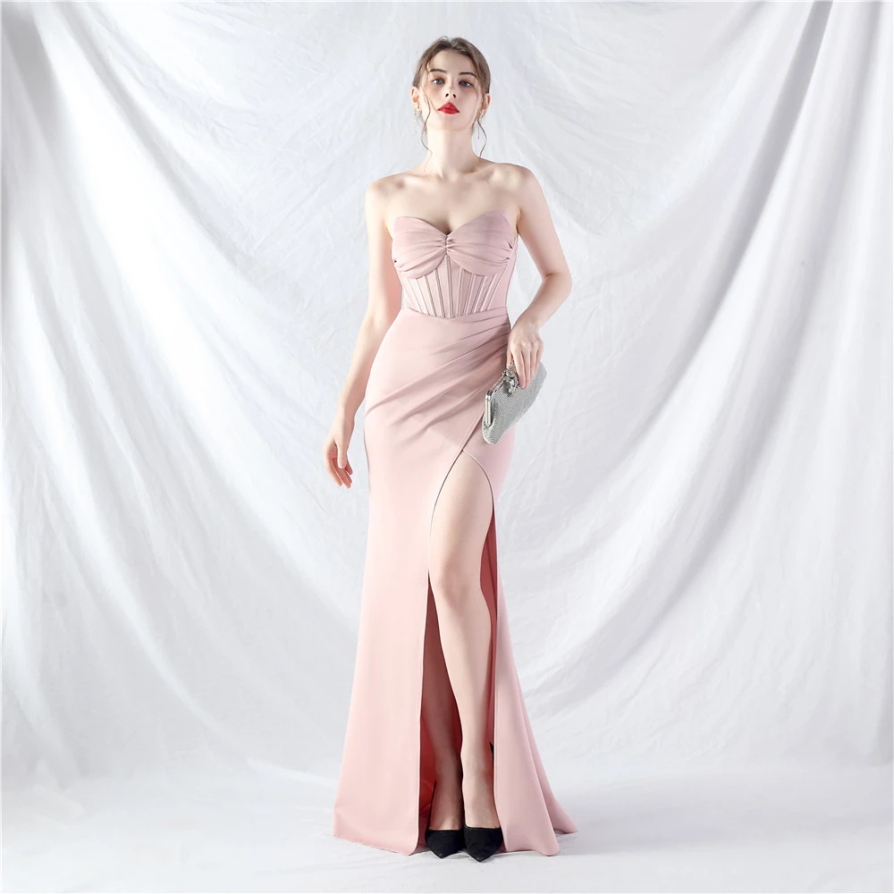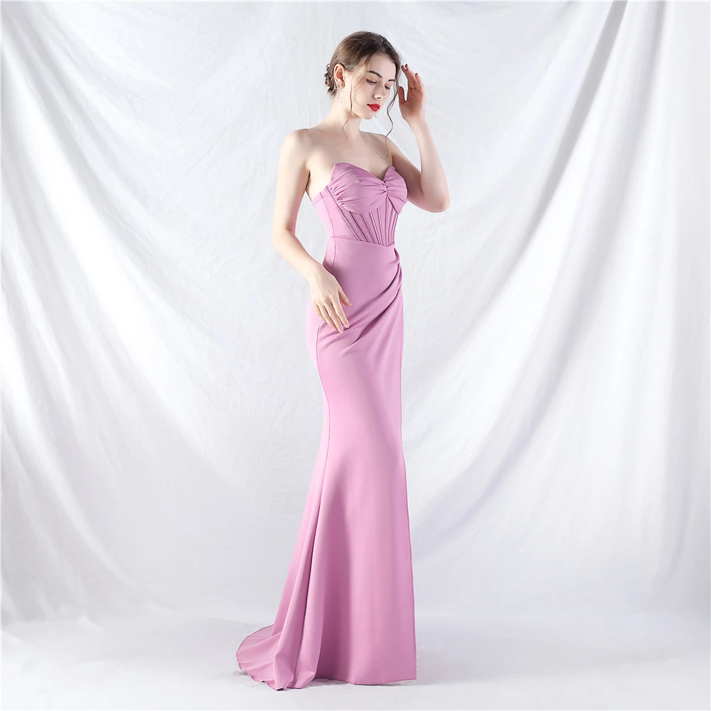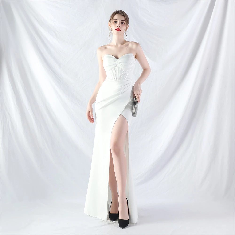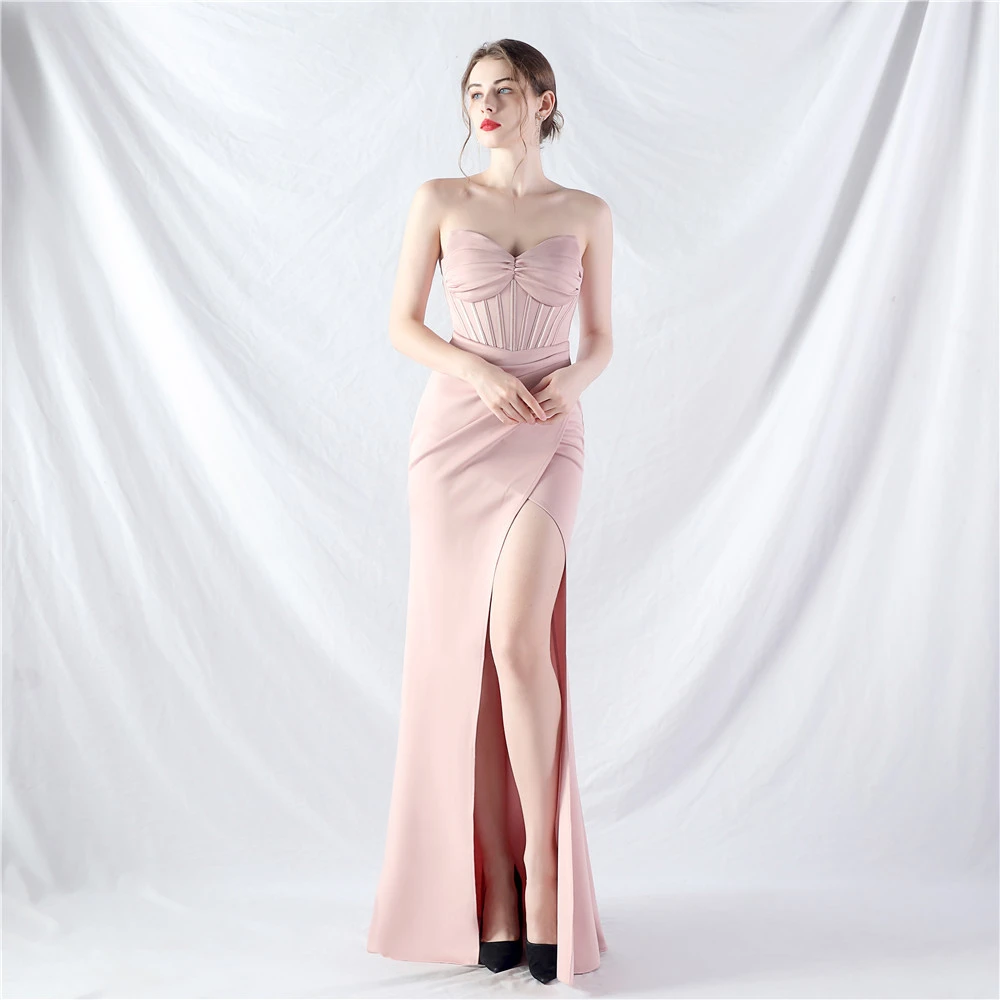 Heavy-Duty Palace Fishbone Vest Waisted High-End Small Vertical Tail Satin Evening Dress