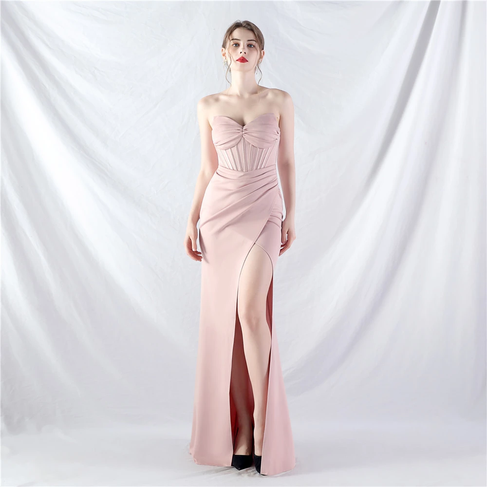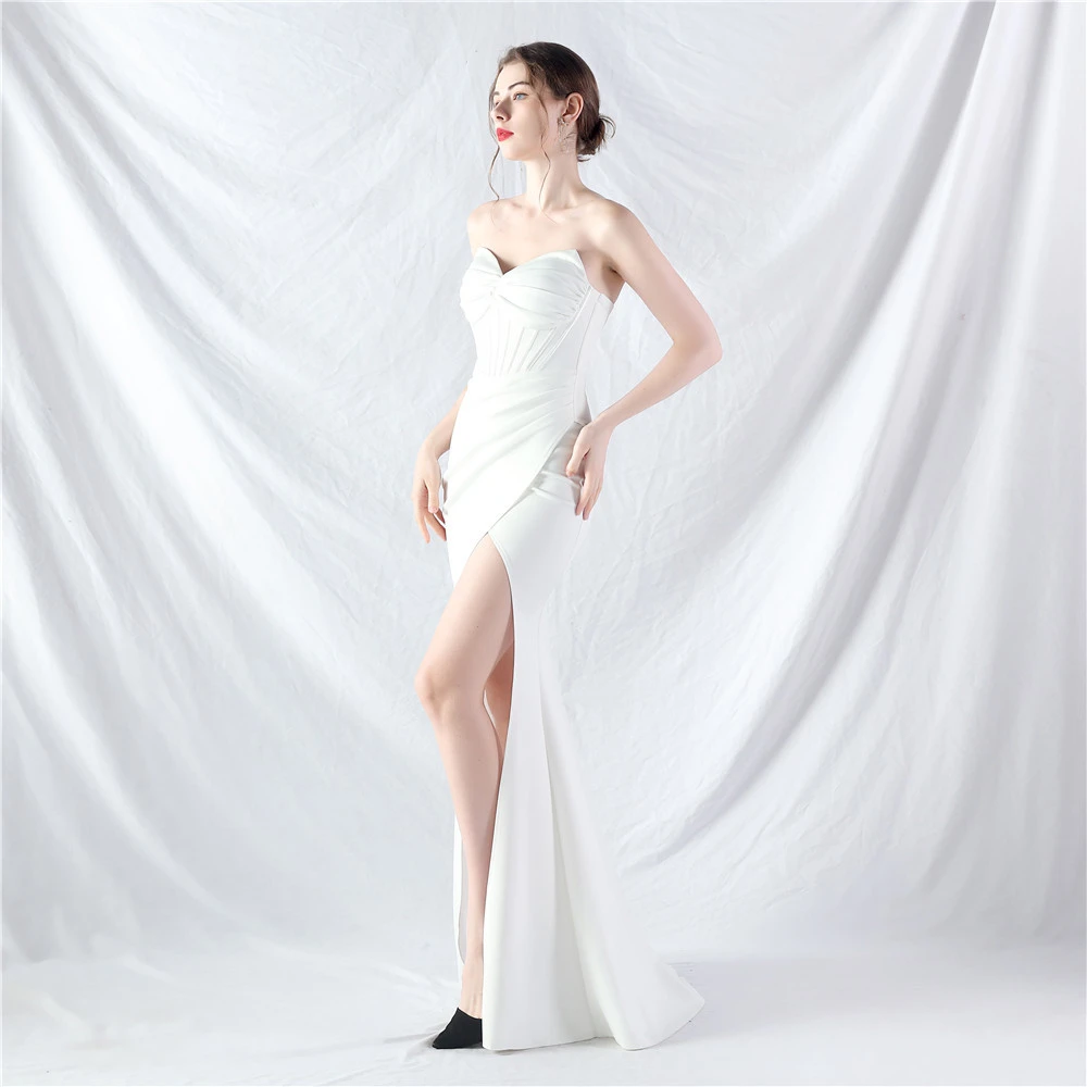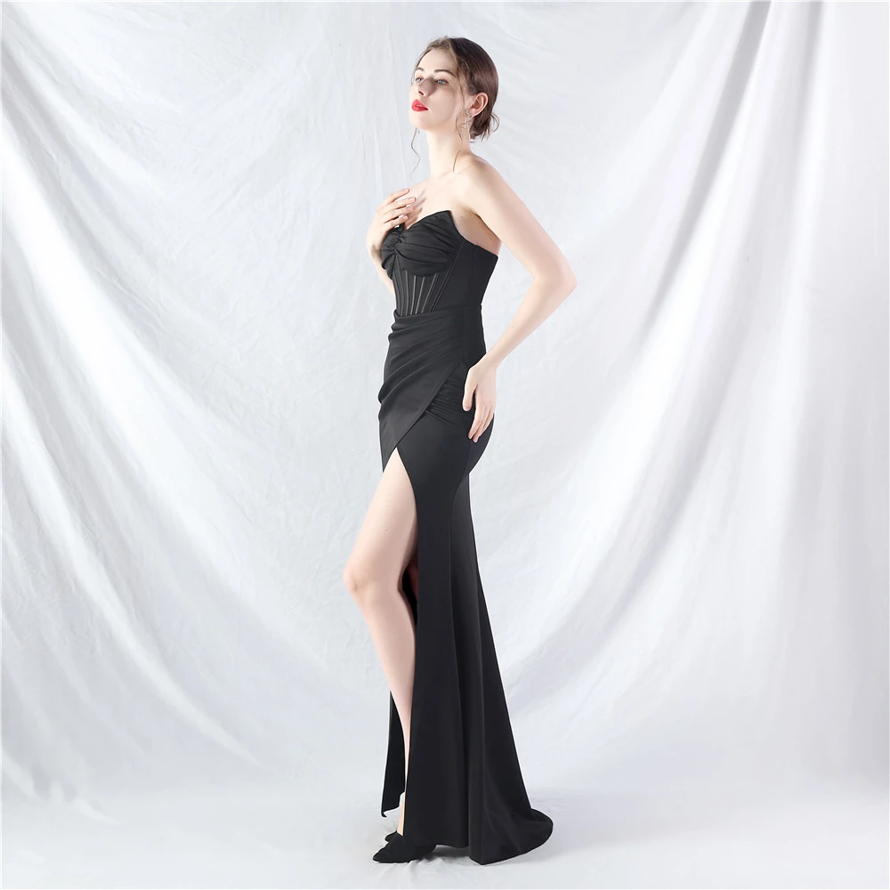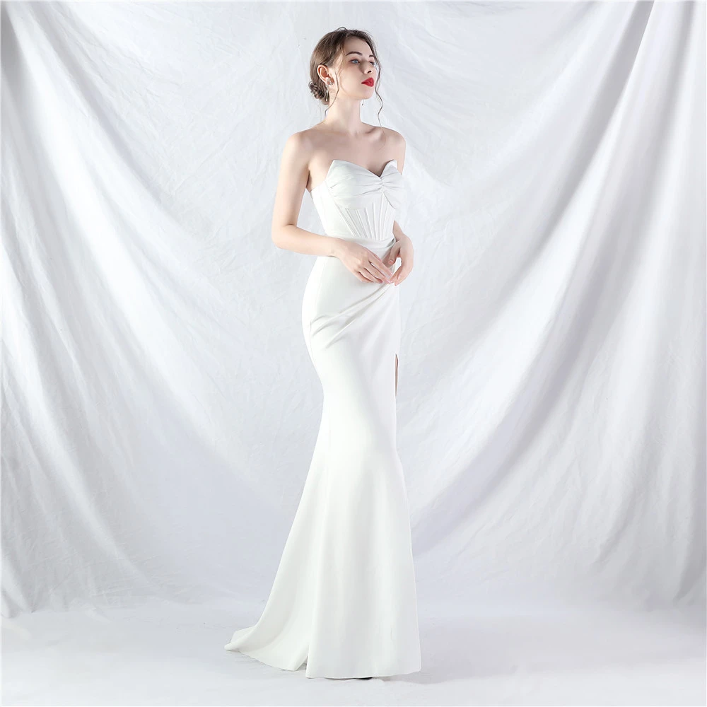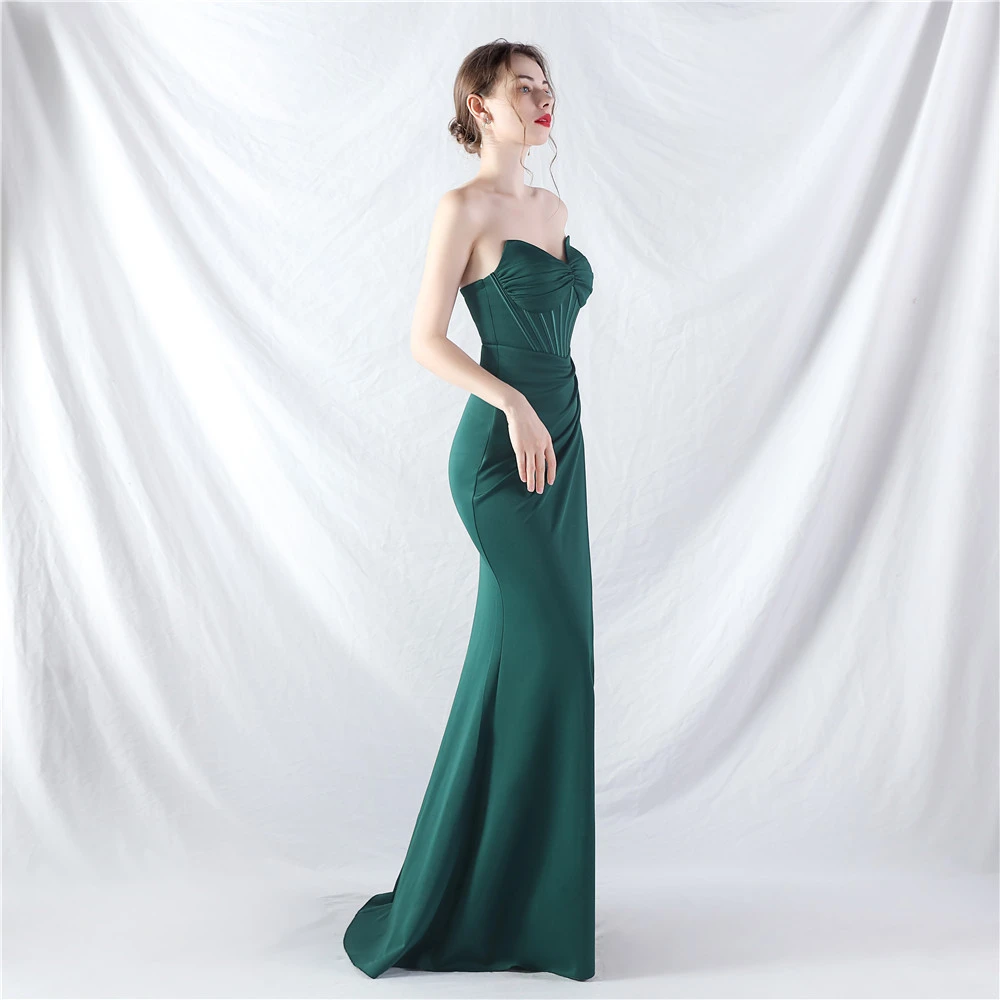 Heavy-Duty Palace Fishbone Vest Waisted High-End Small Vertical Tail Satin Evening Dress