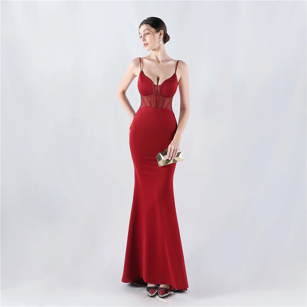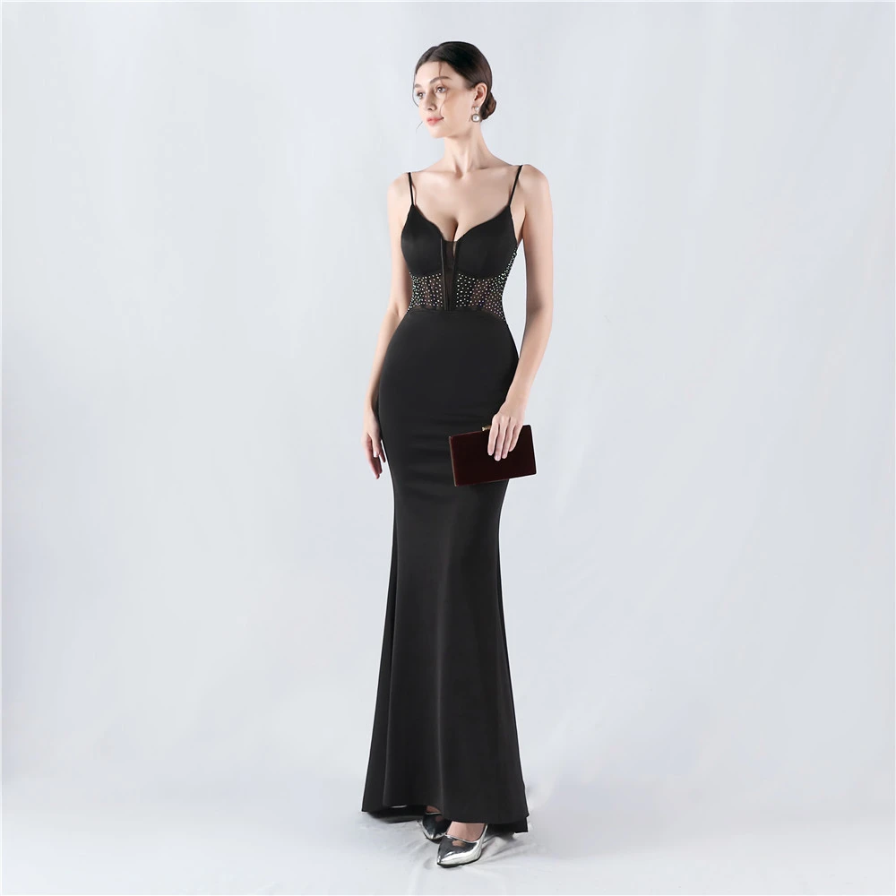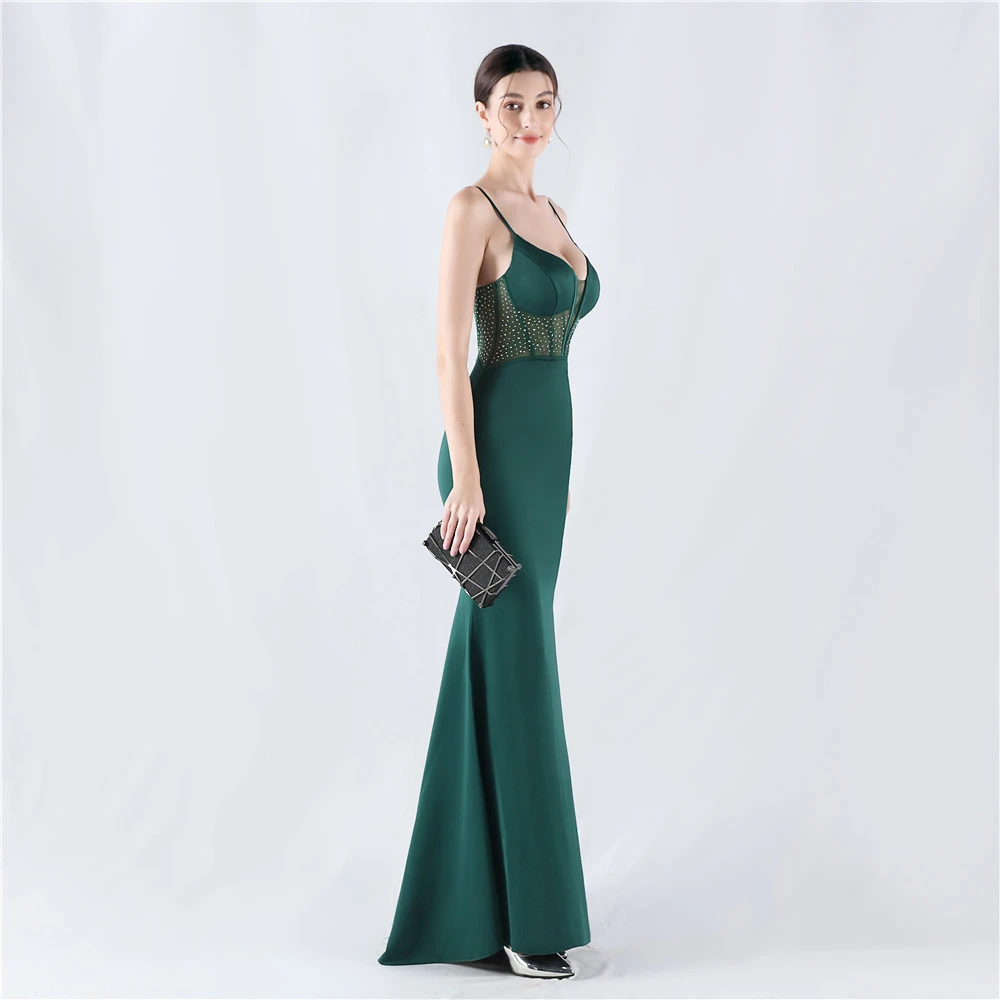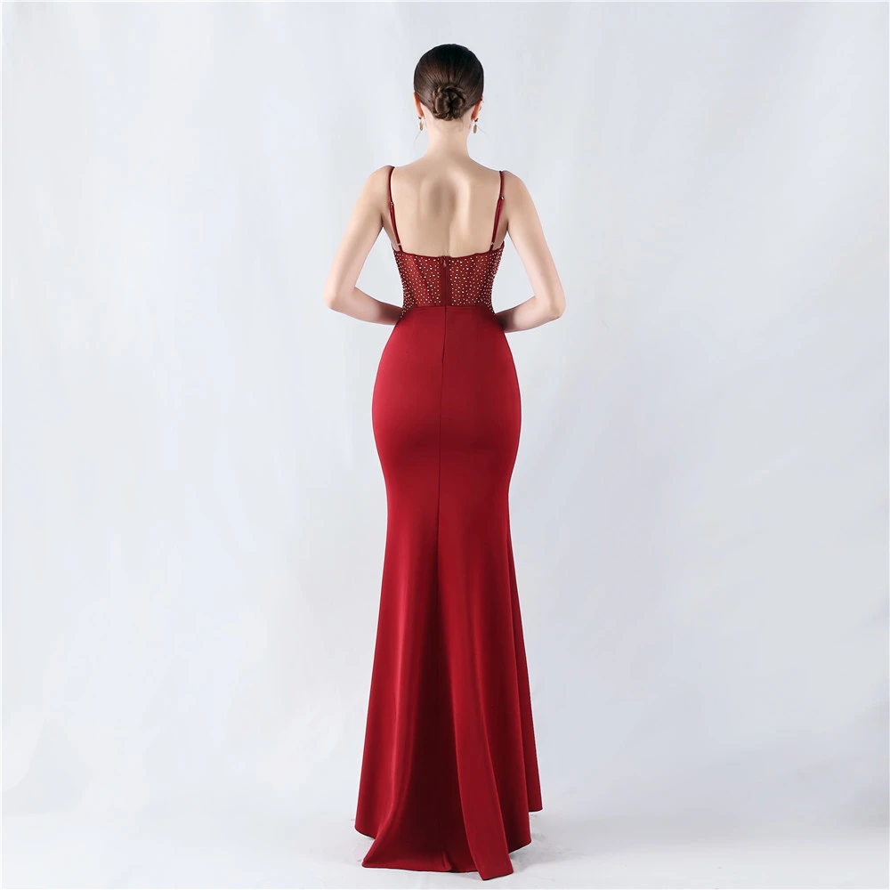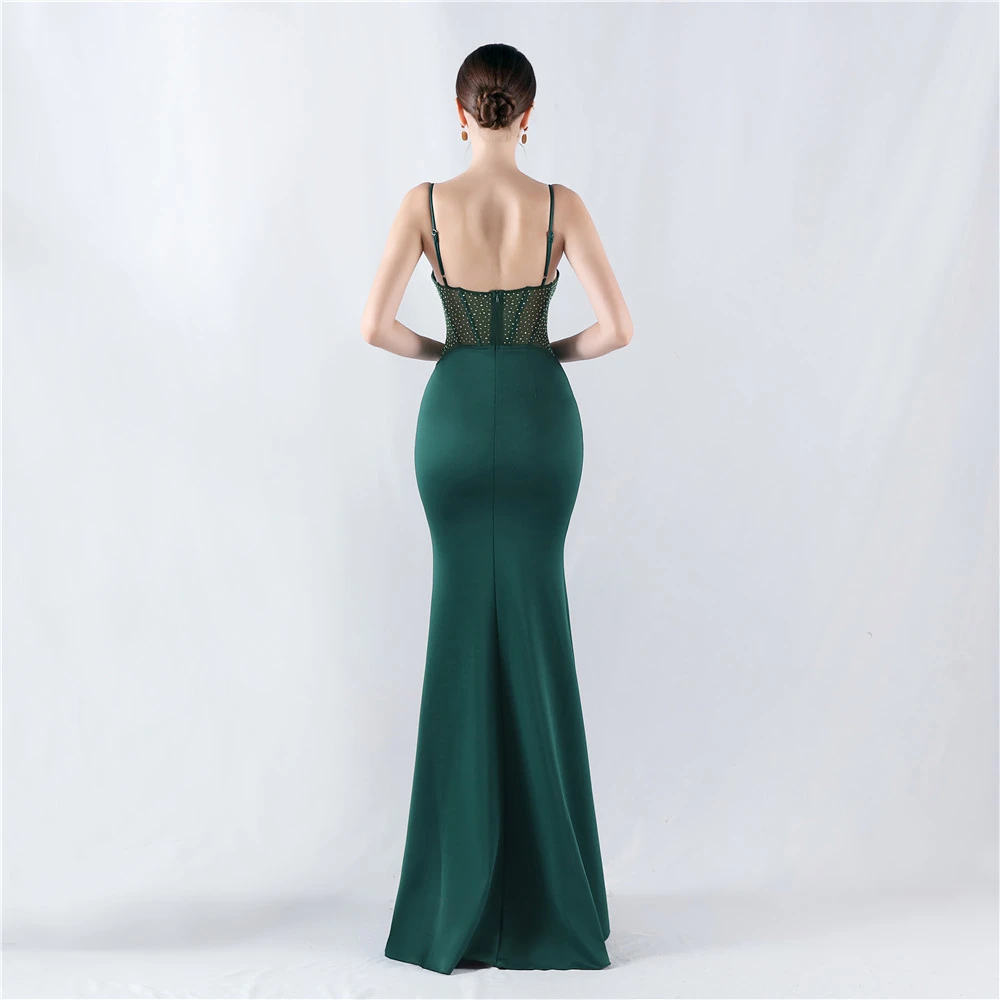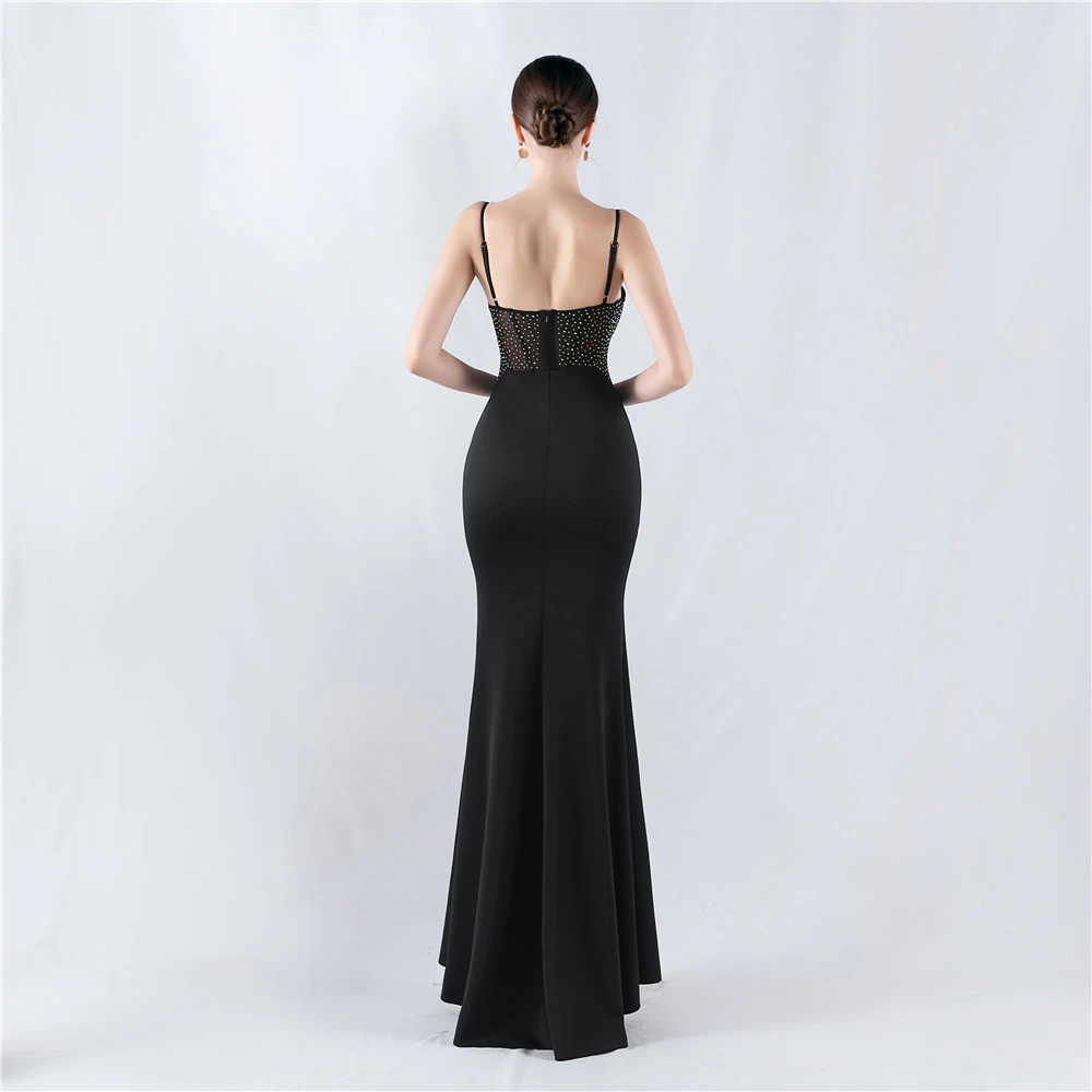 Heavy Hot Diamond Fishbone Vest Shaping Mesh Hot Diamond Sling Hip Fishtail Evening Dress