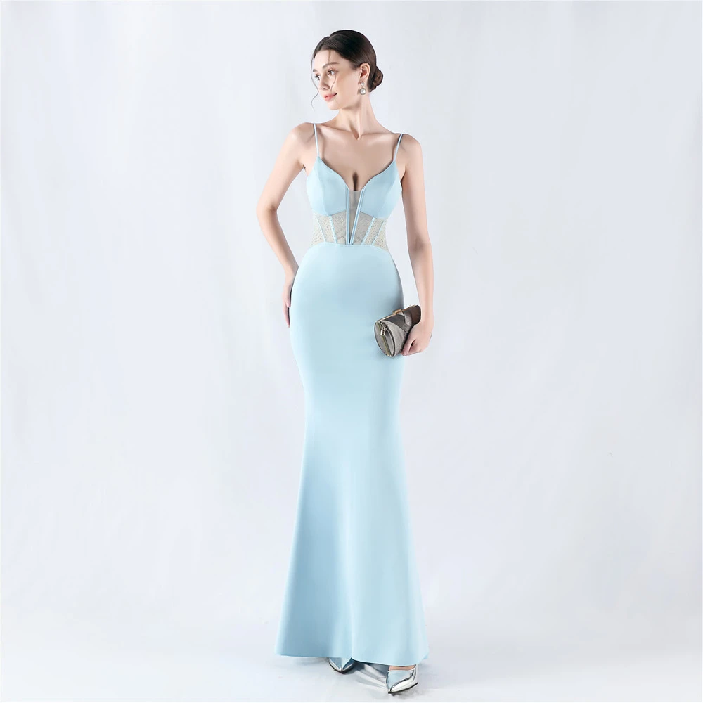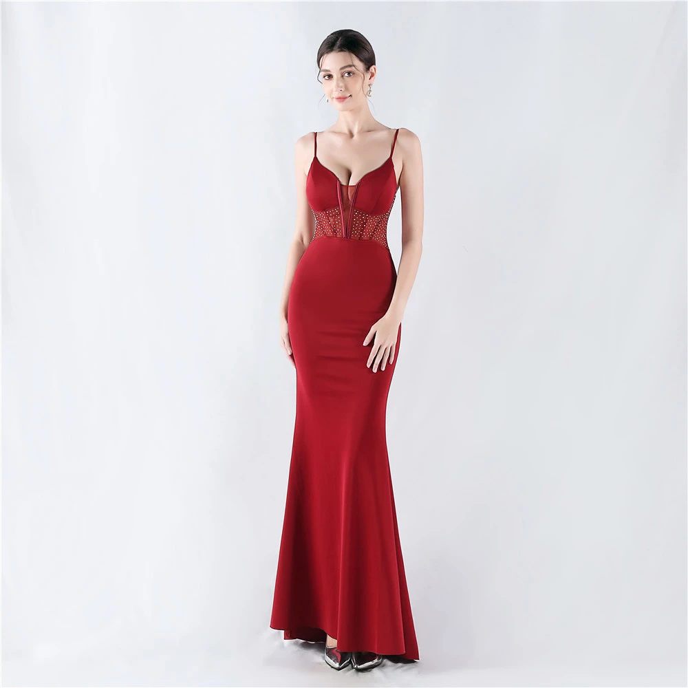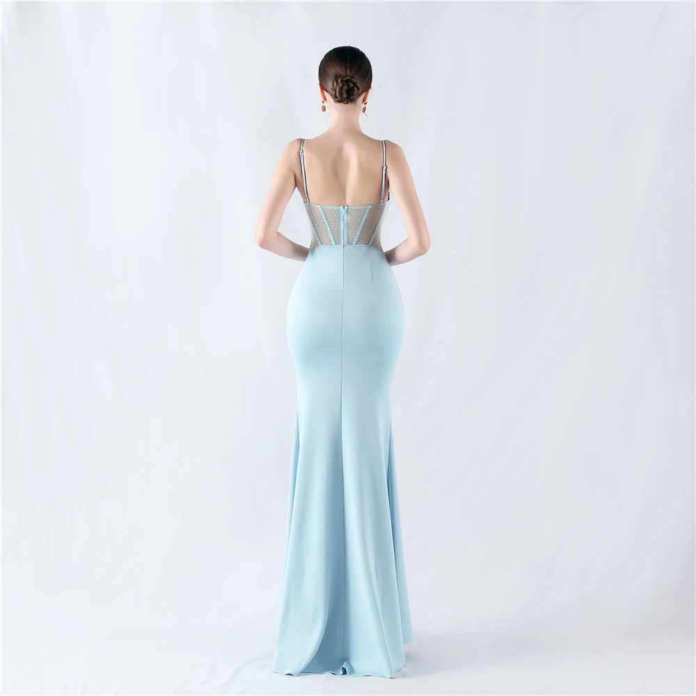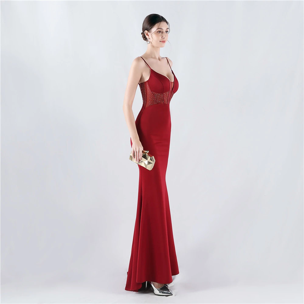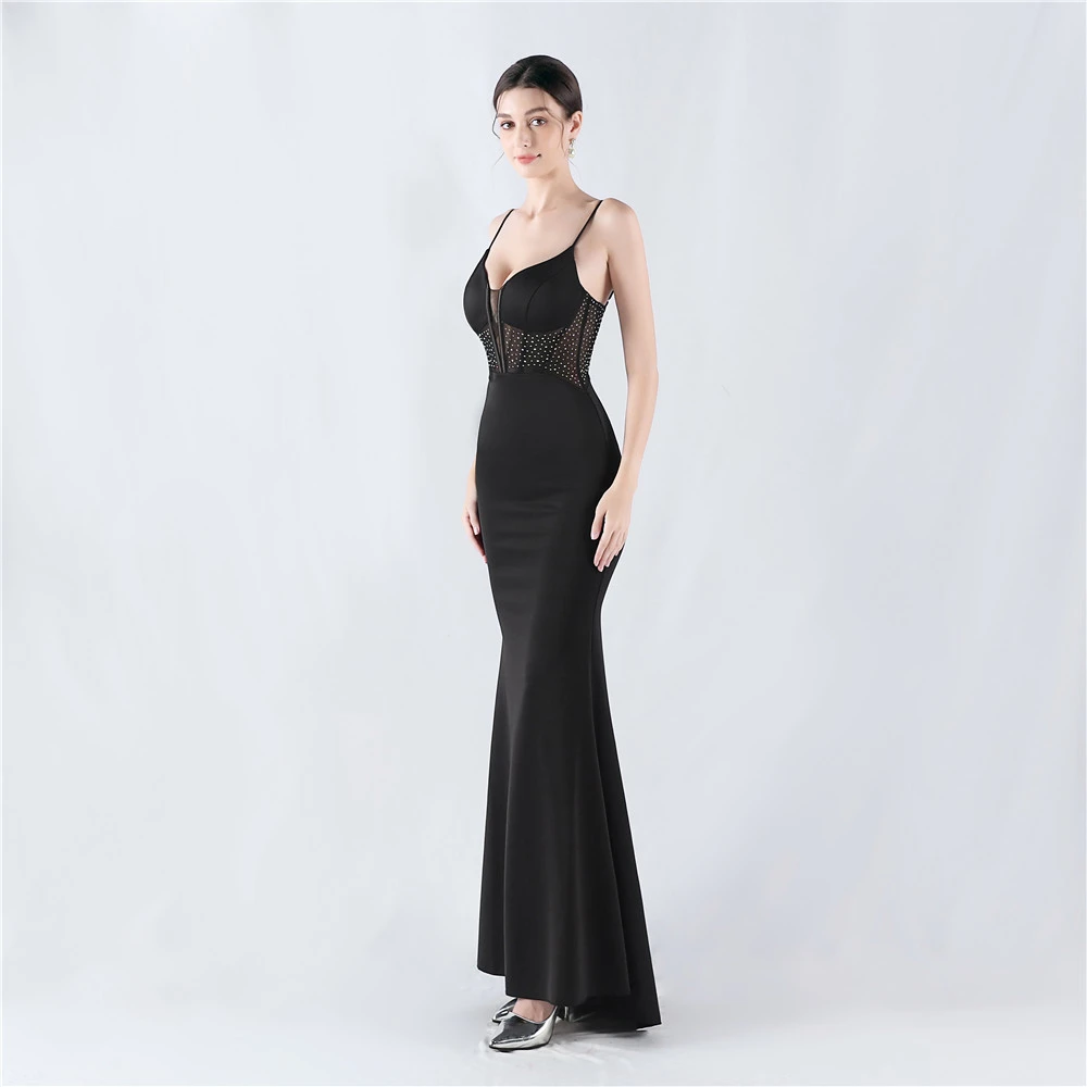 Heavy Hot Diamond Fishbone Vest Shaping Mesh Hot Diamond Sling Hip Fishtail Evening Dress