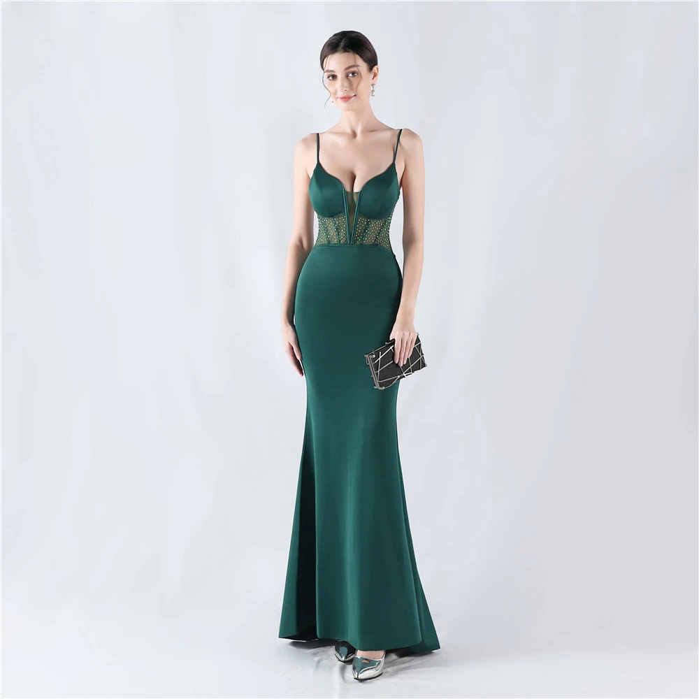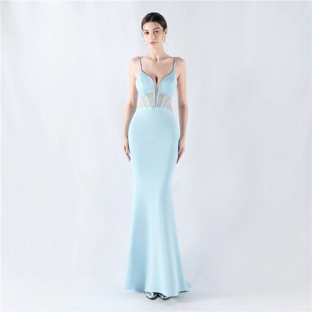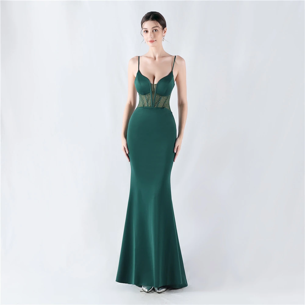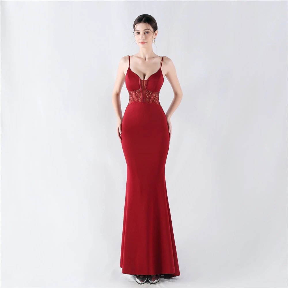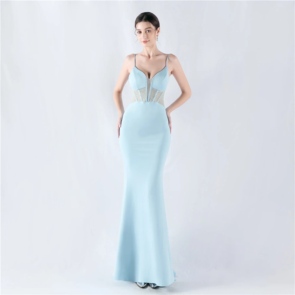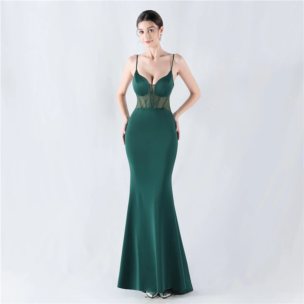 Heavy Hot Diamond Fishbone Vest Shaping Mesh Hot Diamond Sling Hip Fishtail Evening Dress