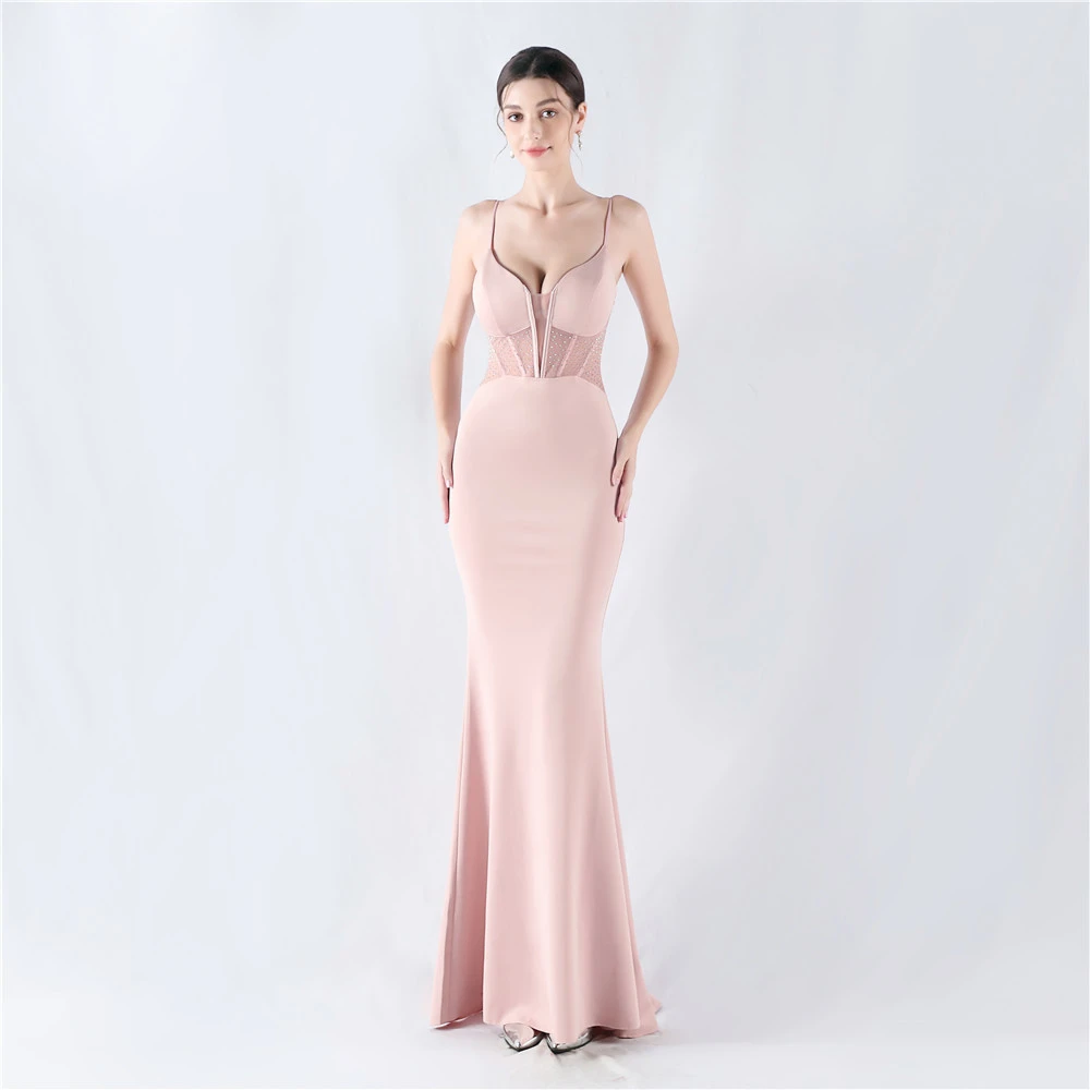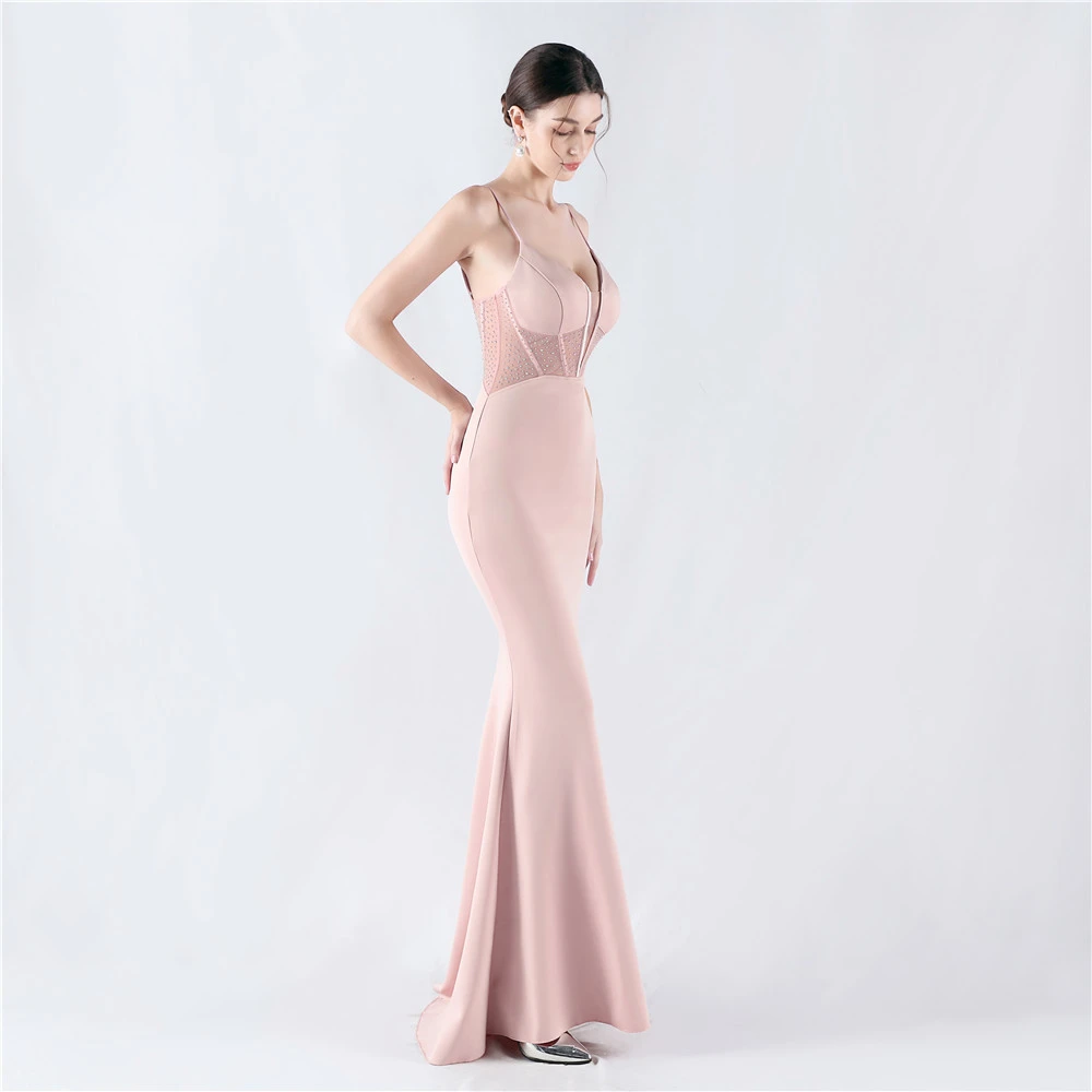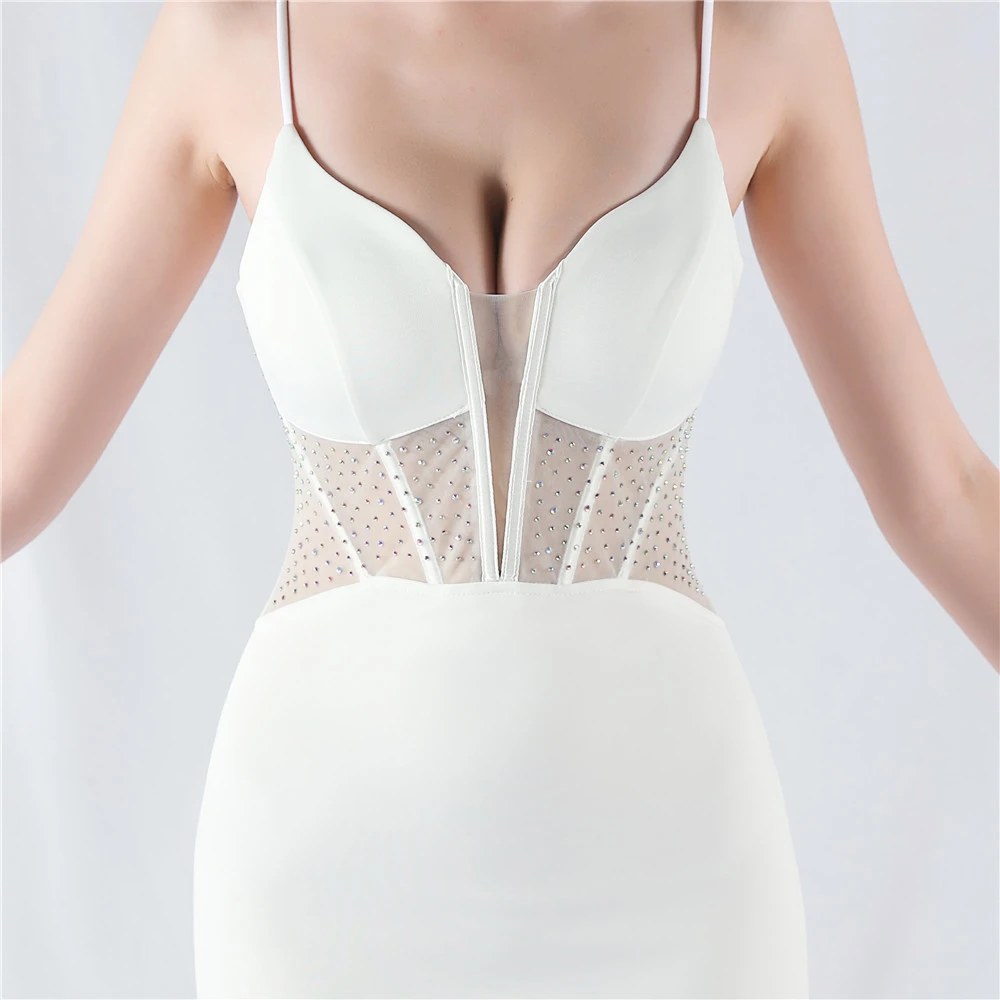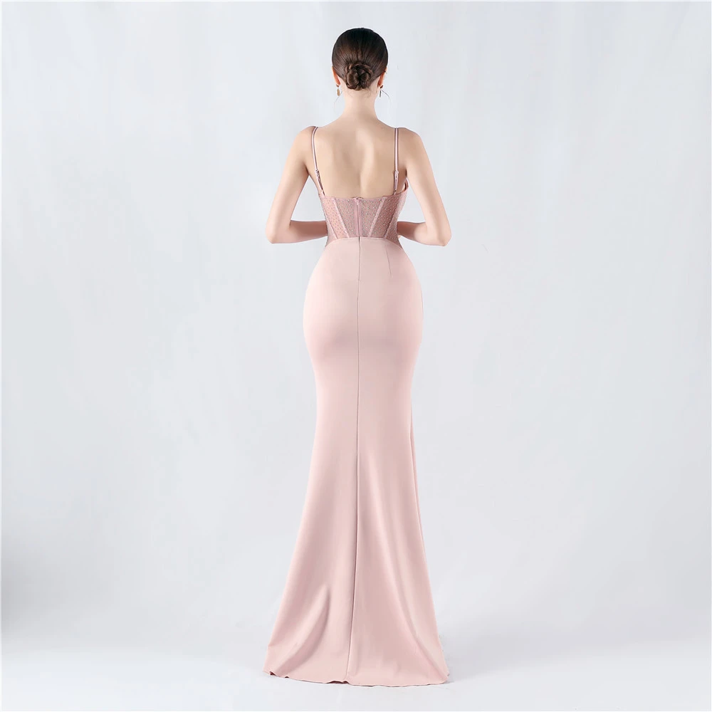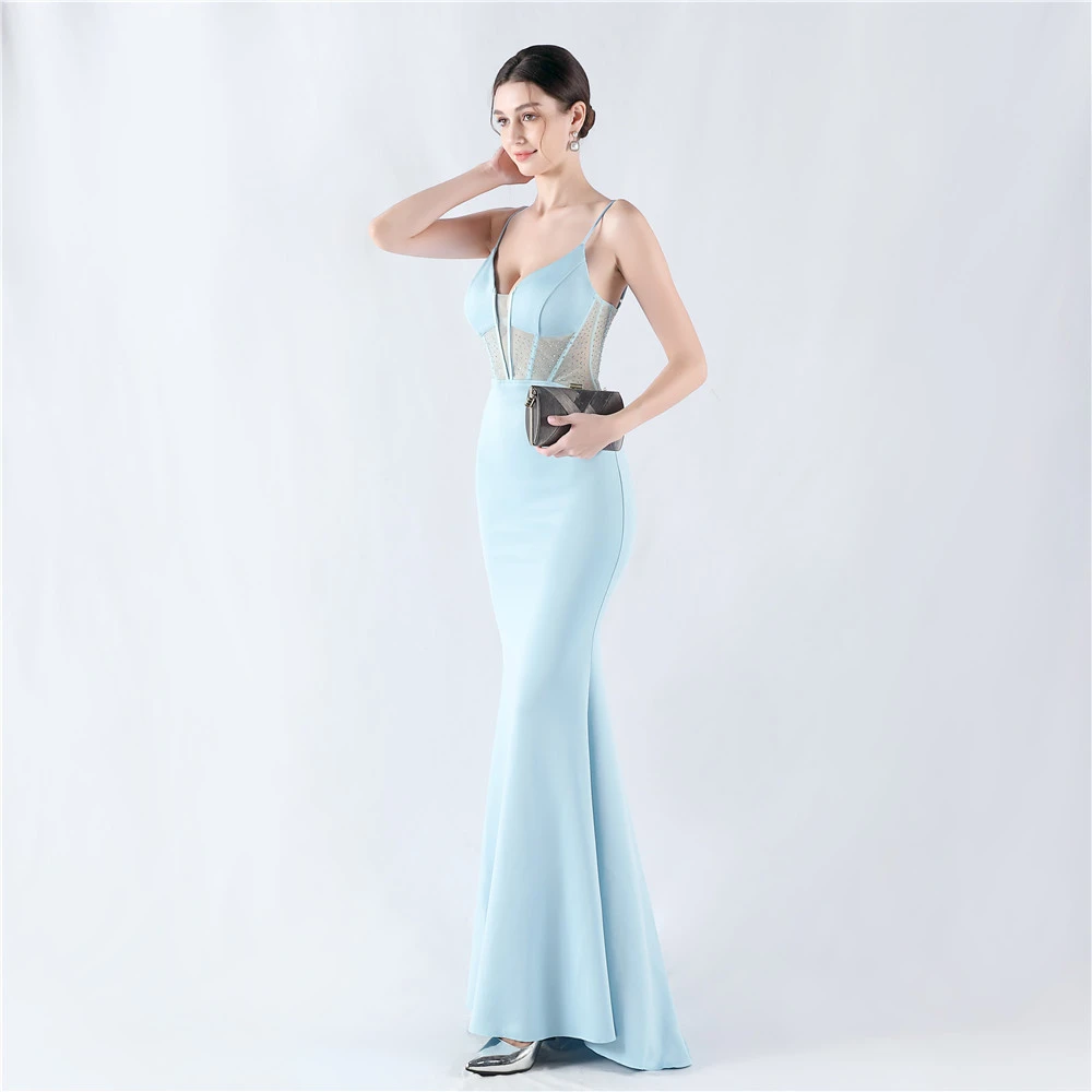 Heavy Hot Diamond Fishbone Vest Shaping Mesh Hot Diamond Sling Hip Fishtail Evening Dress
