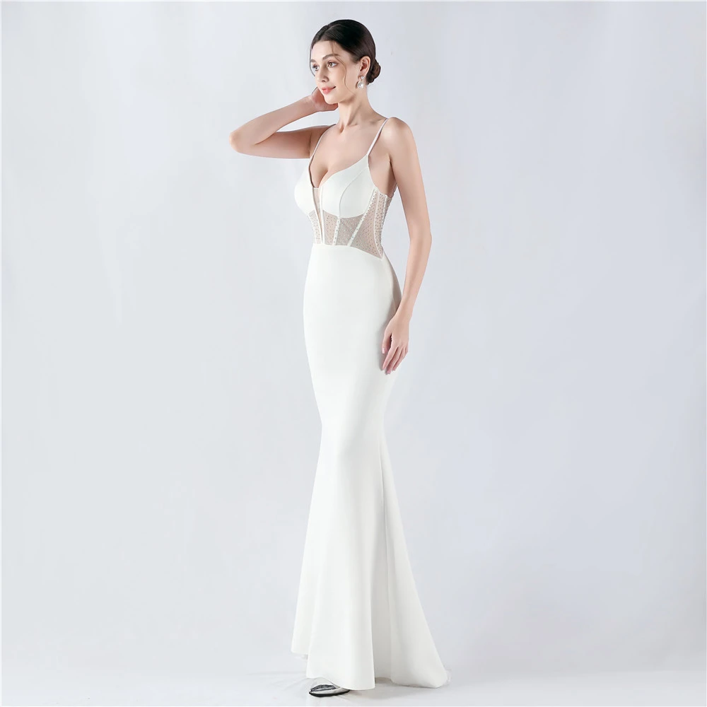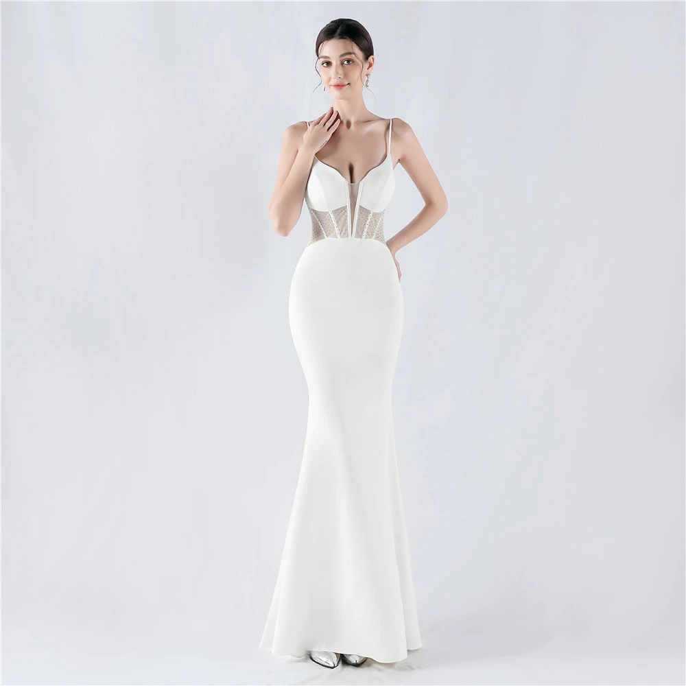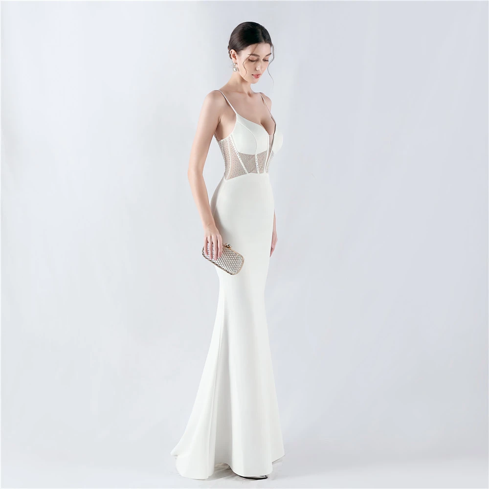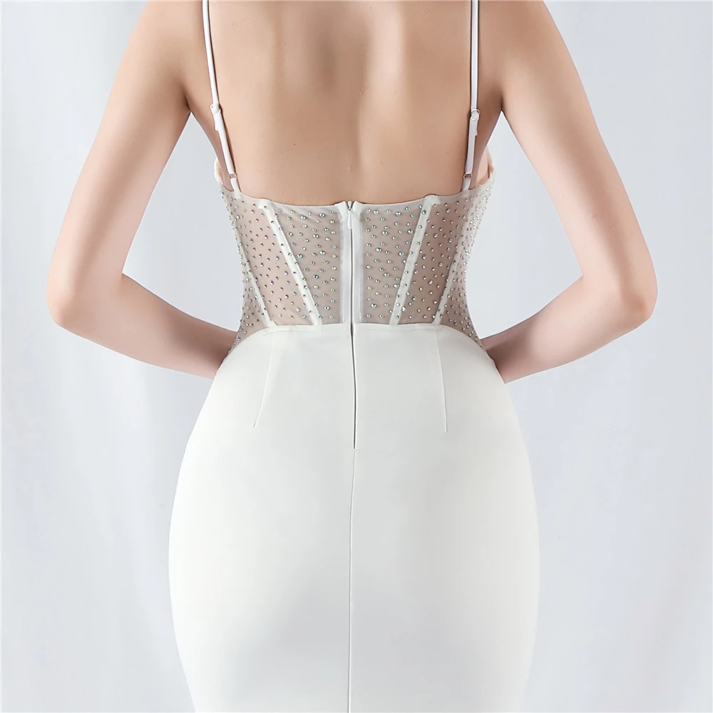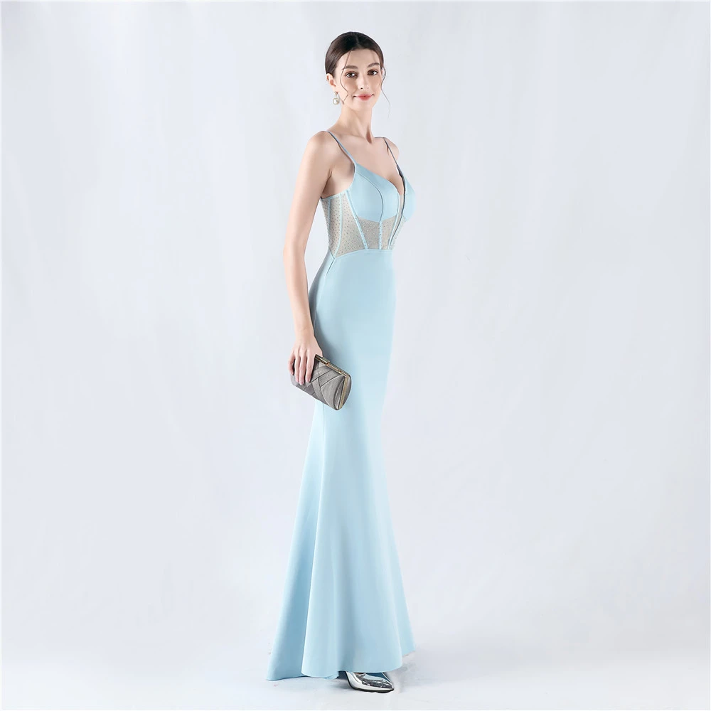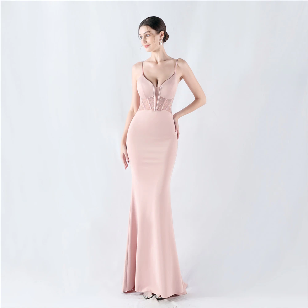 Heavy Hot Diamond Fishbone Vest Shaping Mesh Hot Diamond Sling Hip Fishtail Evening Dress