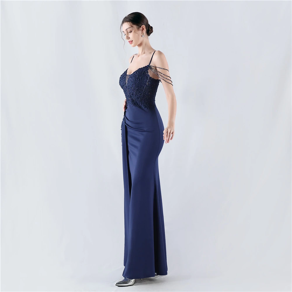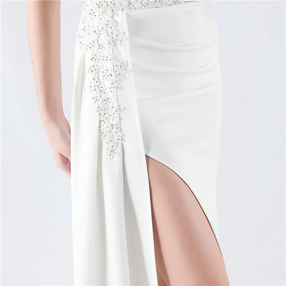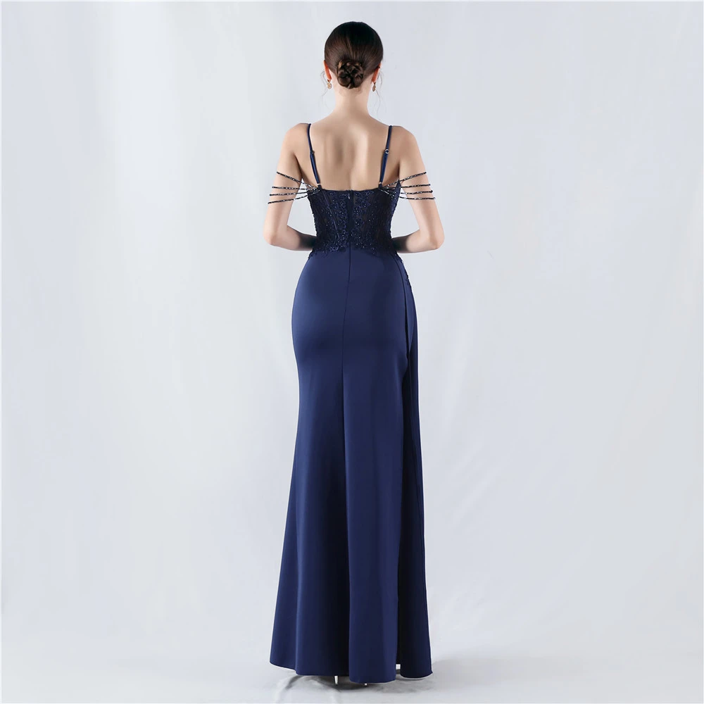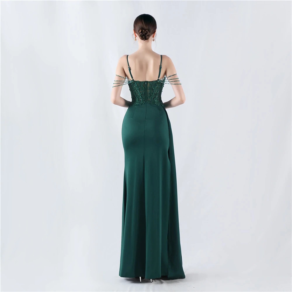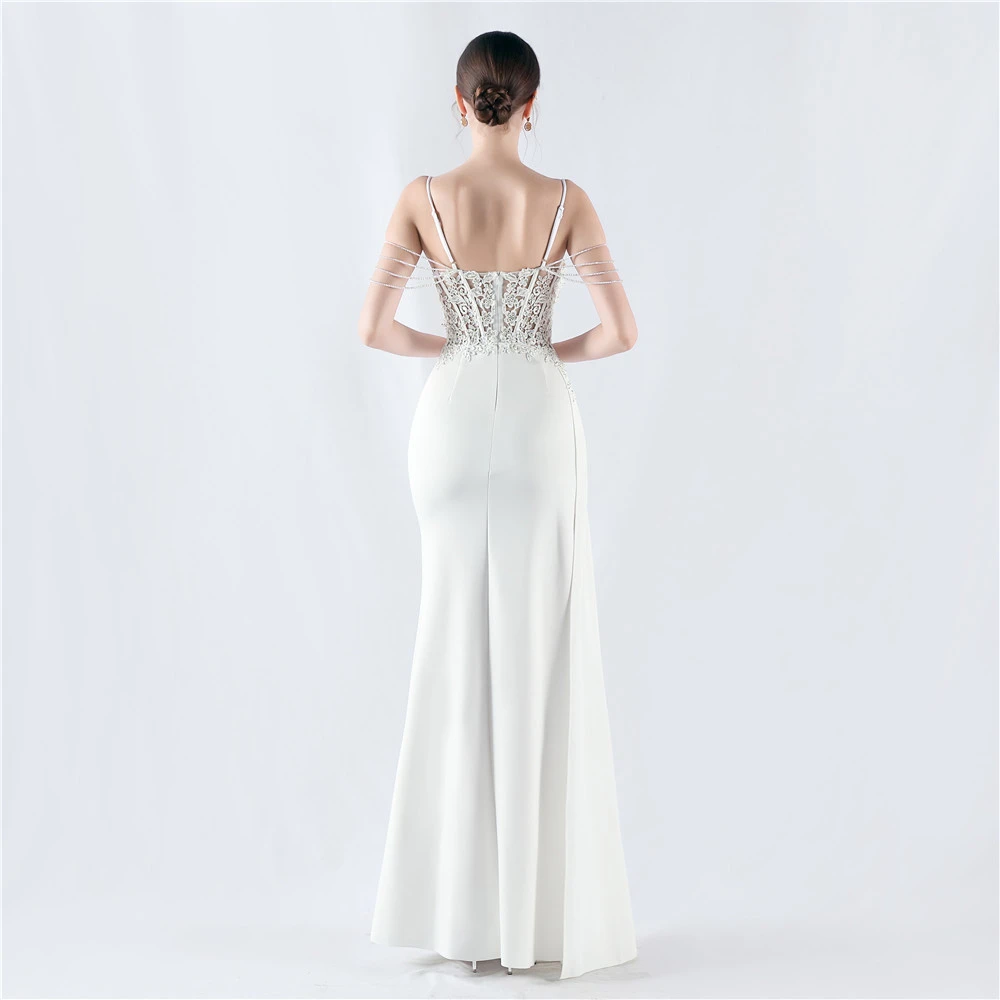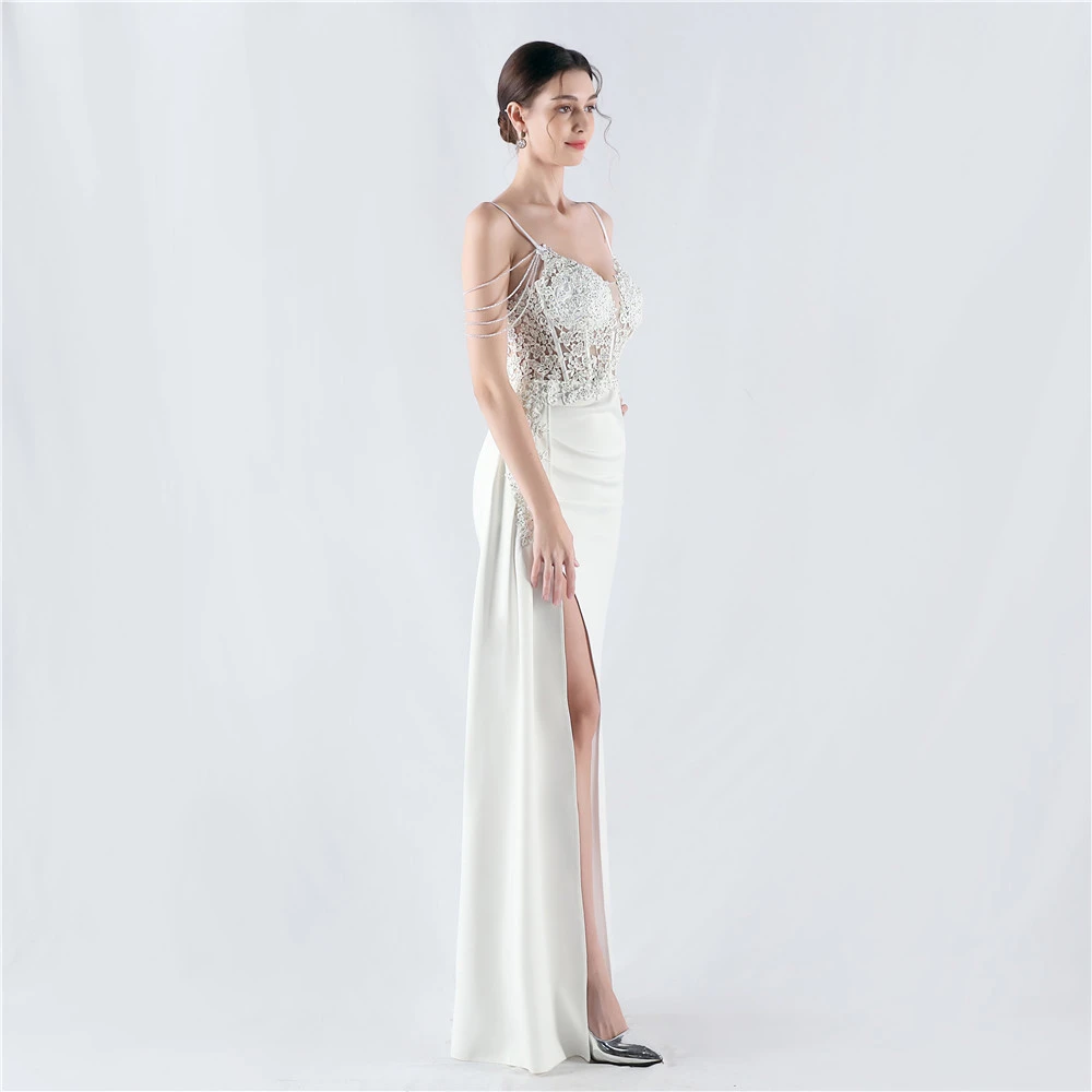 Heavy Hot Diamonds And Flower-Set Waisted Fishbone Beaded Satin Evening Dress Annual Meeting Wedding