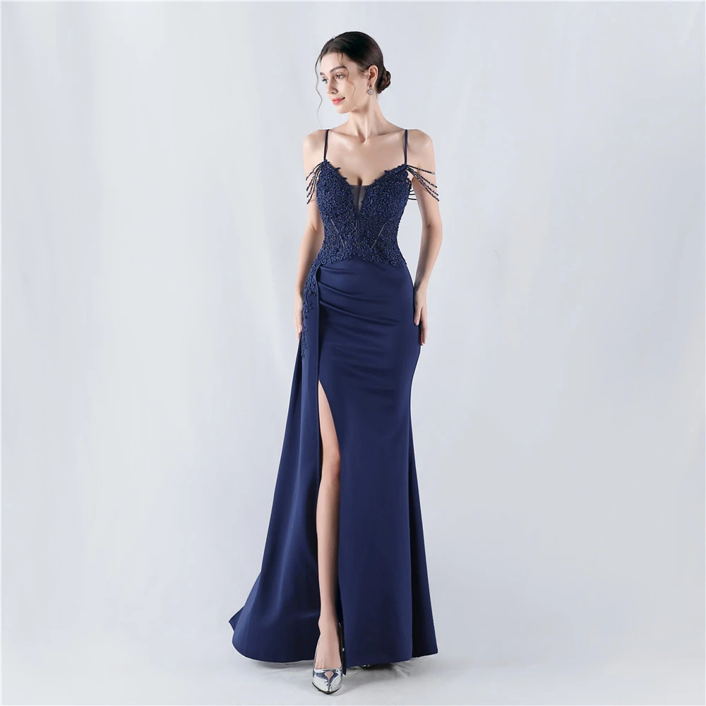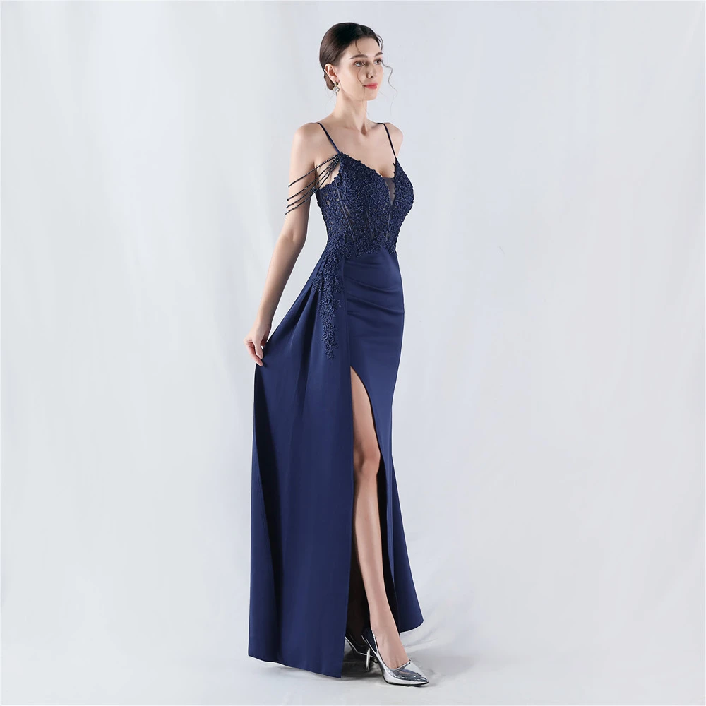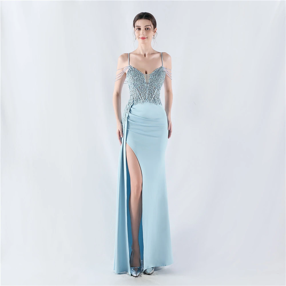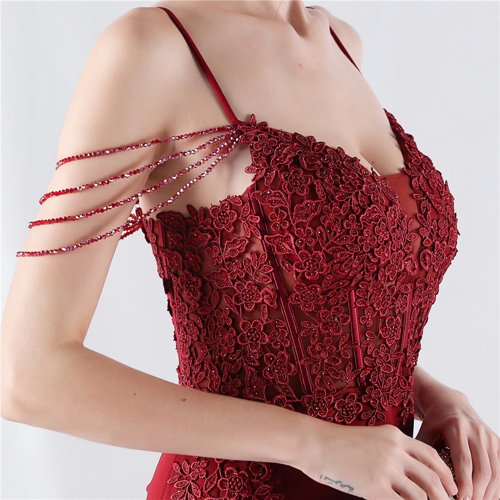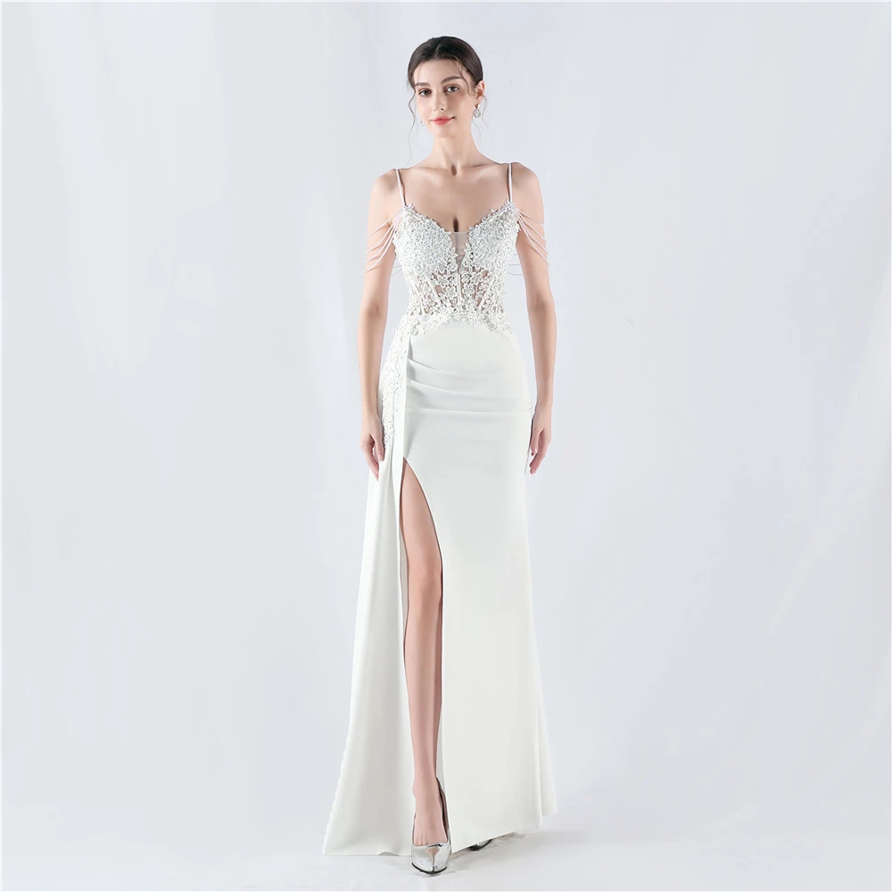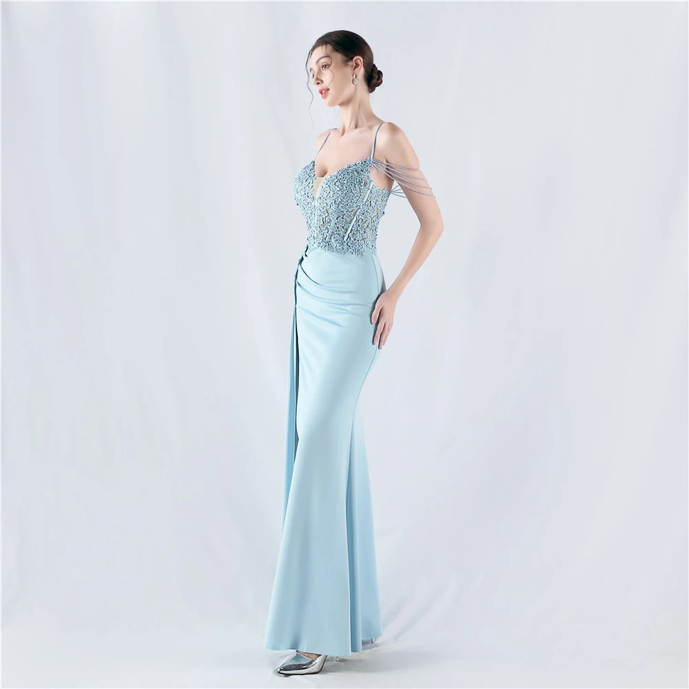 Heavy Hot Diamonds And Flower-Set Waisted Fishbone Beaded Satin Evening Dress Annual Meeting Wedding