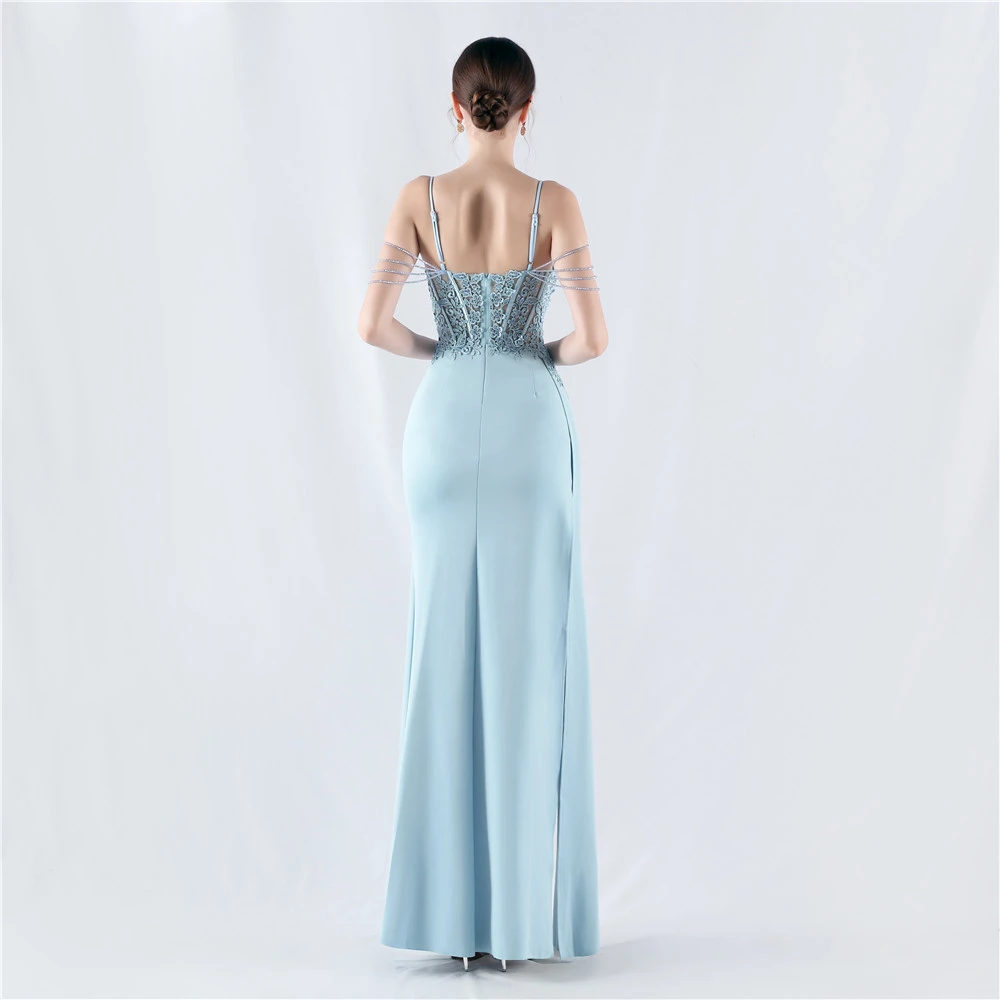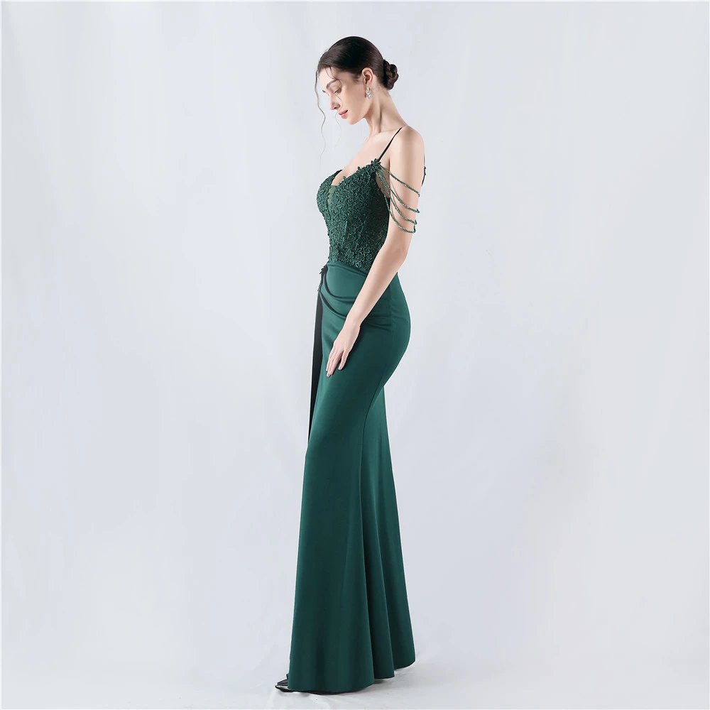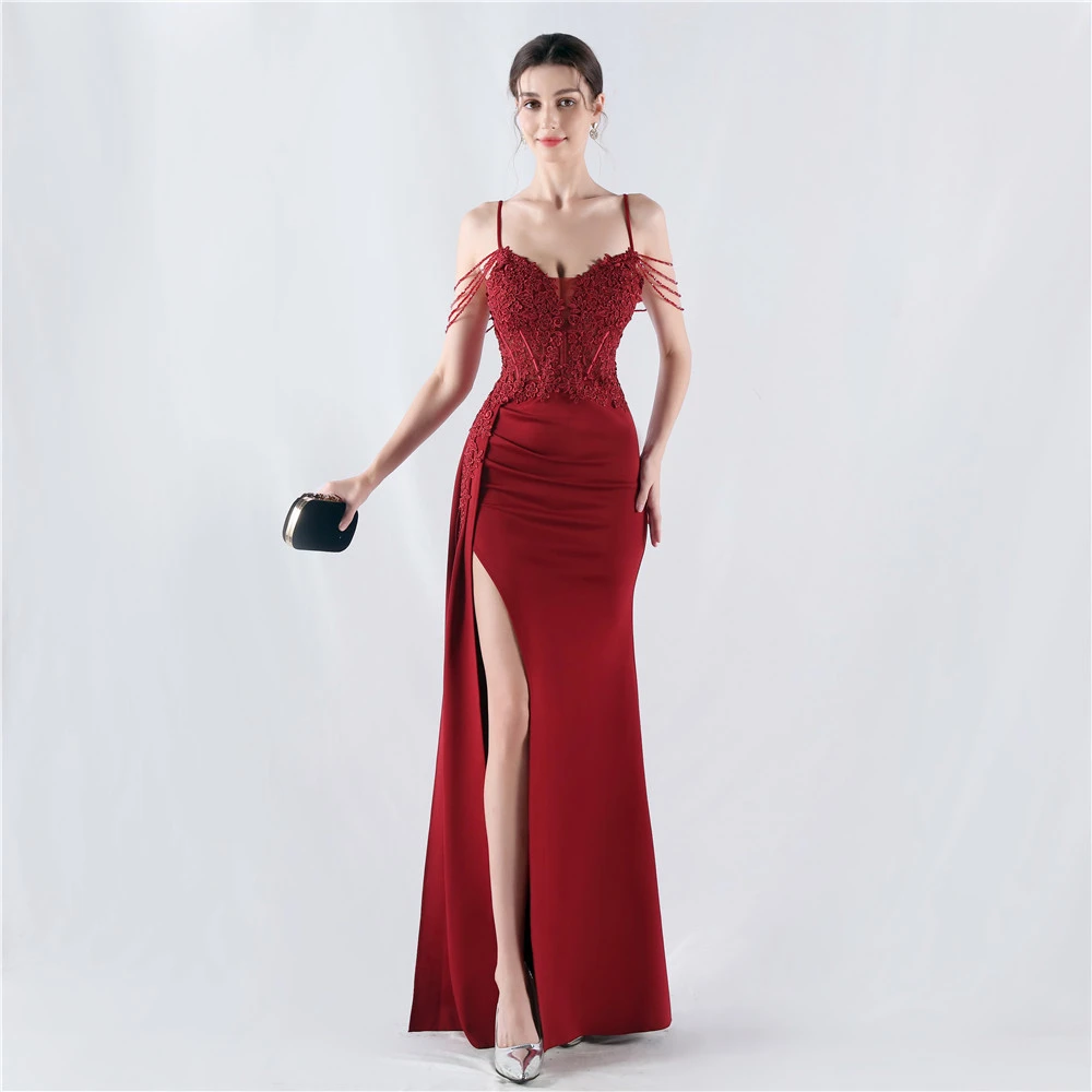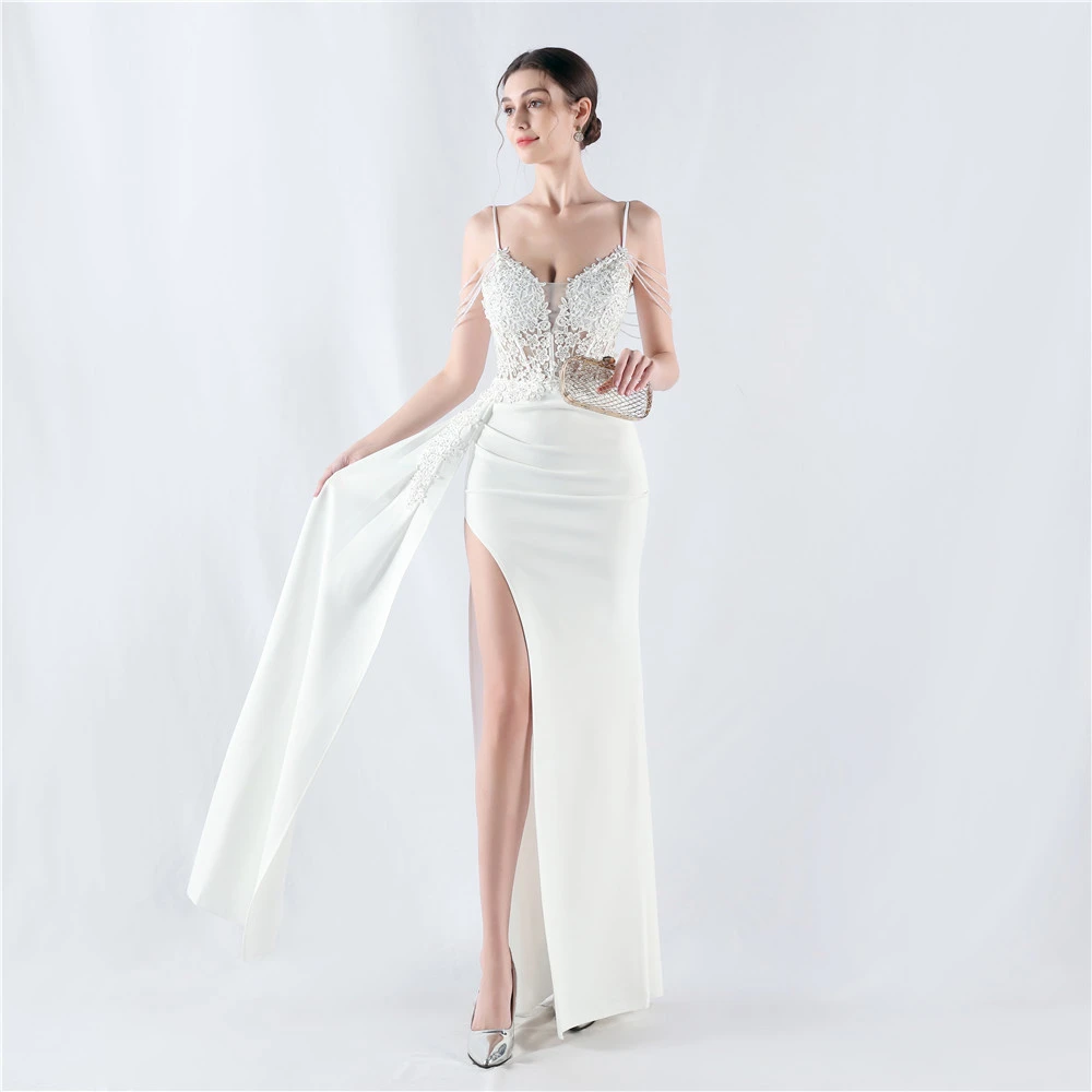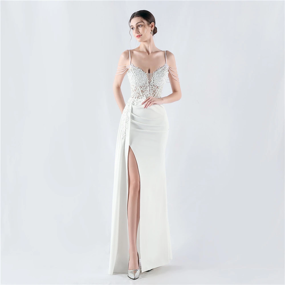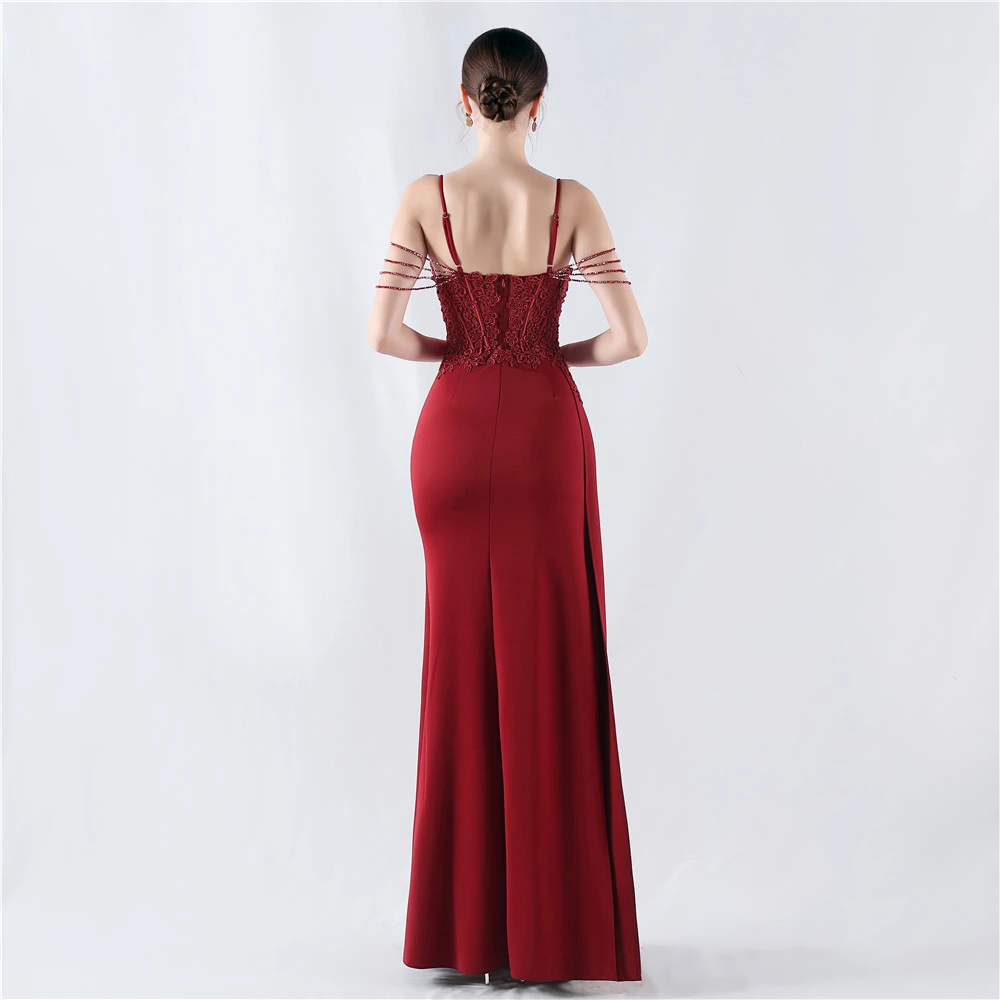 Heavy Hot Diamonds And Flower-Set Waisted Fishbone Beaded Satin Evening Dress Annual Meeting Wedding