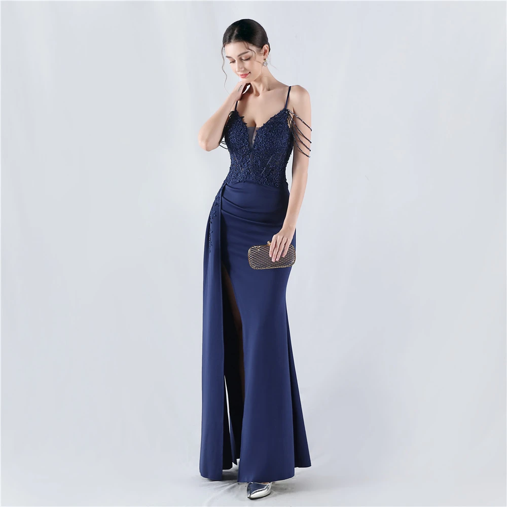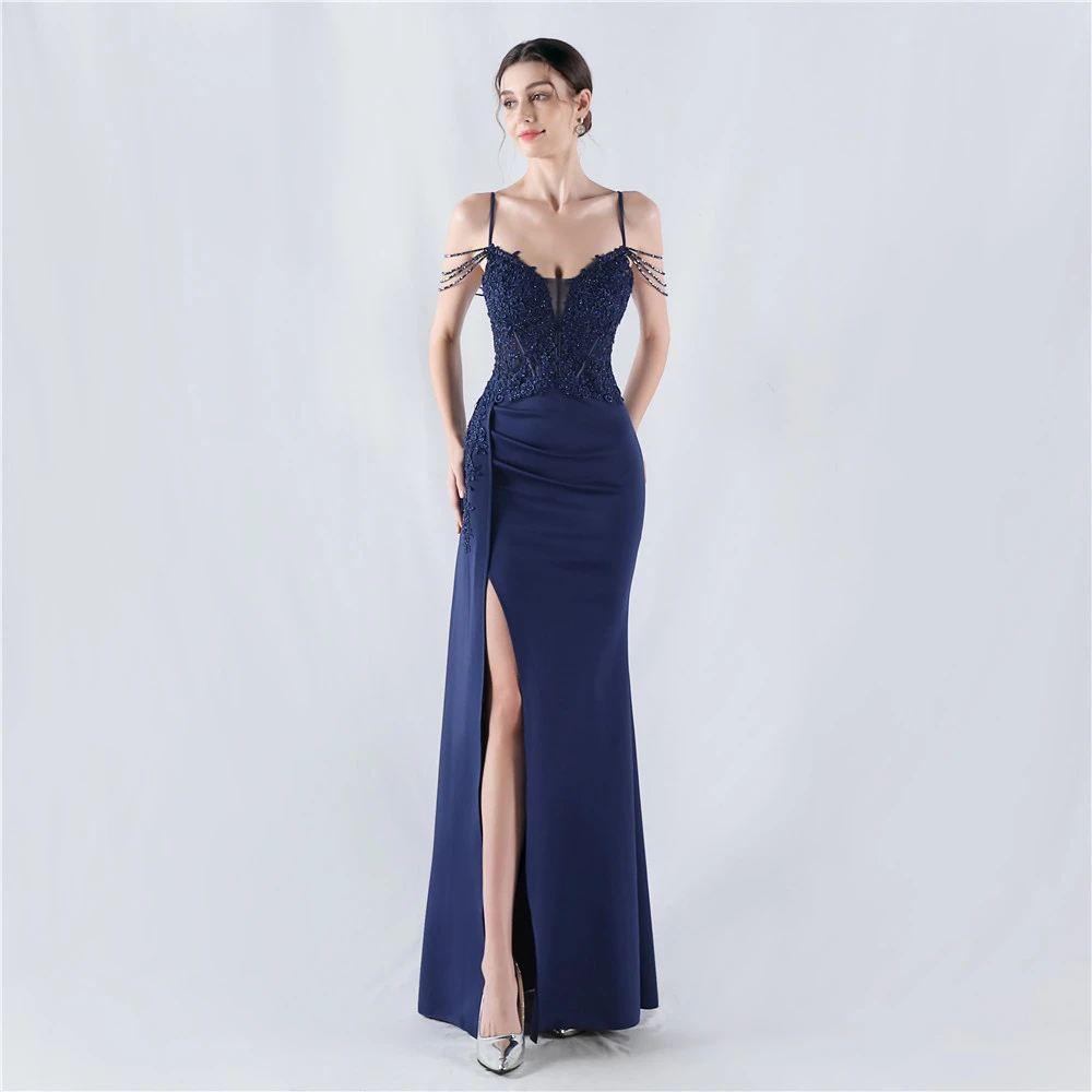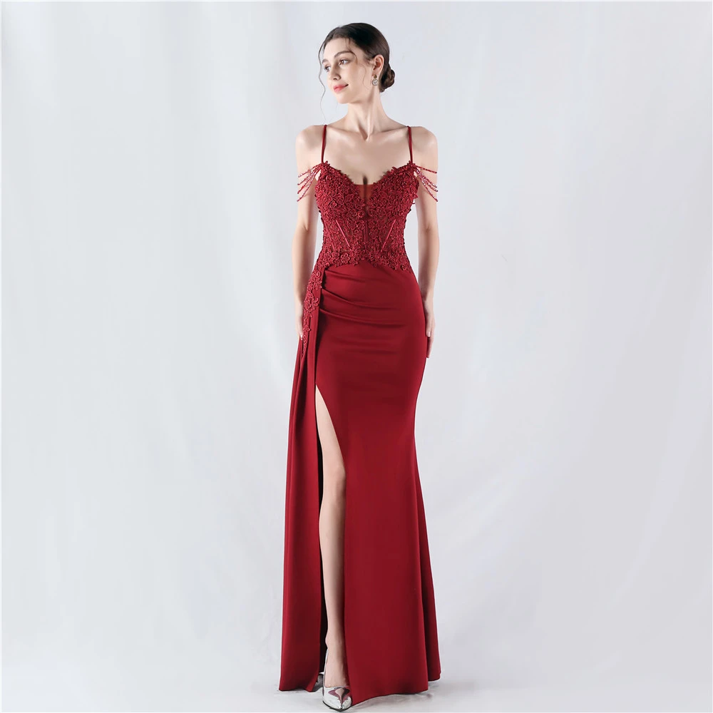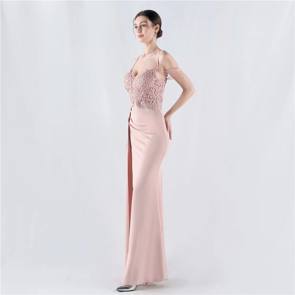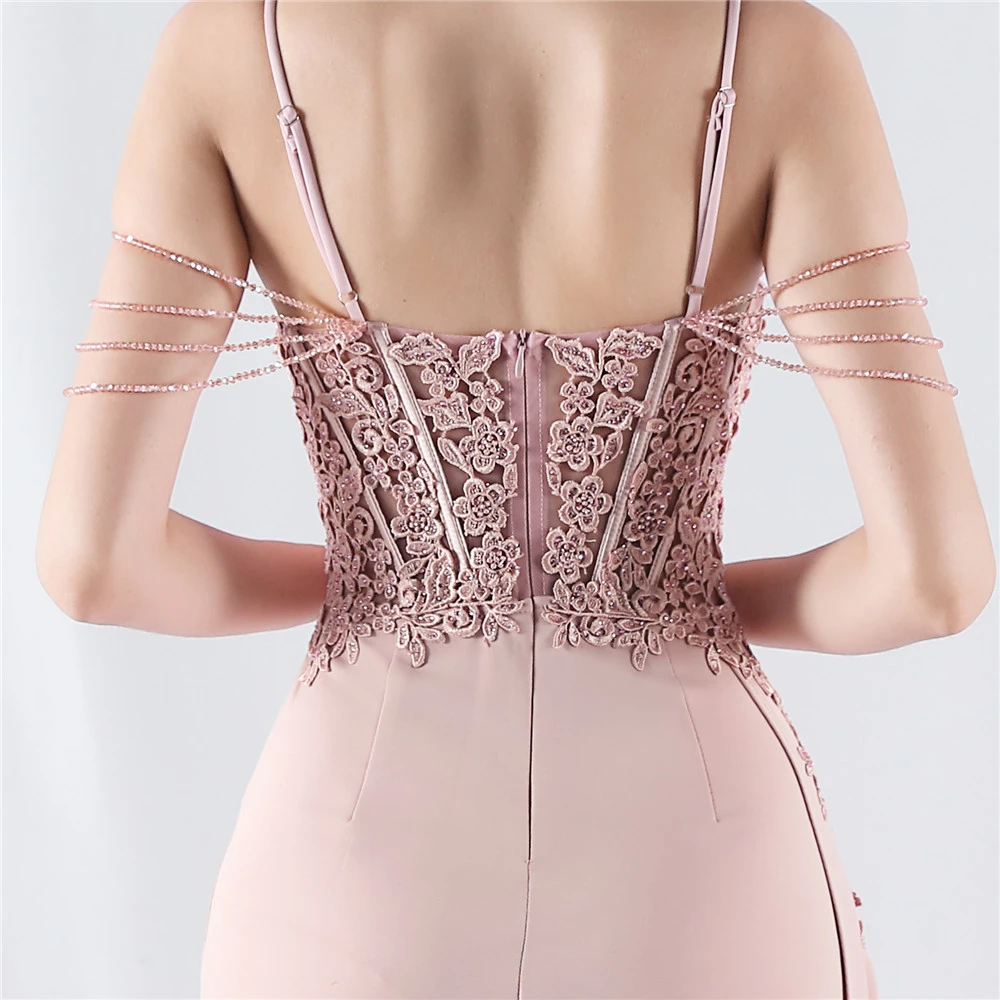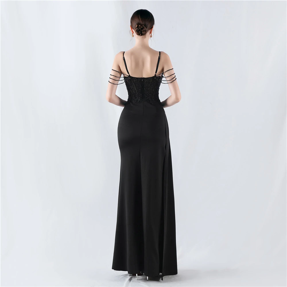 Heavy Hot Diamonds And Flower-Set Waisted Fishbone Beaded Satin Evening Dress Annual Meeting Wedding