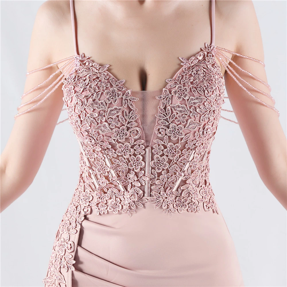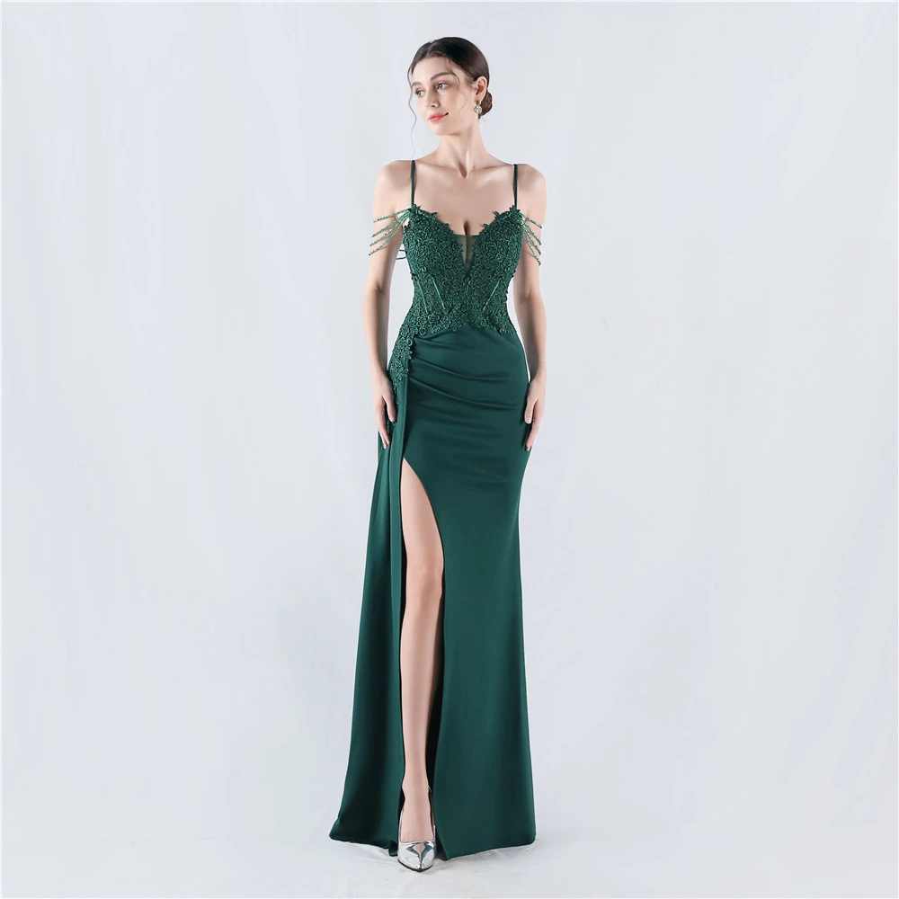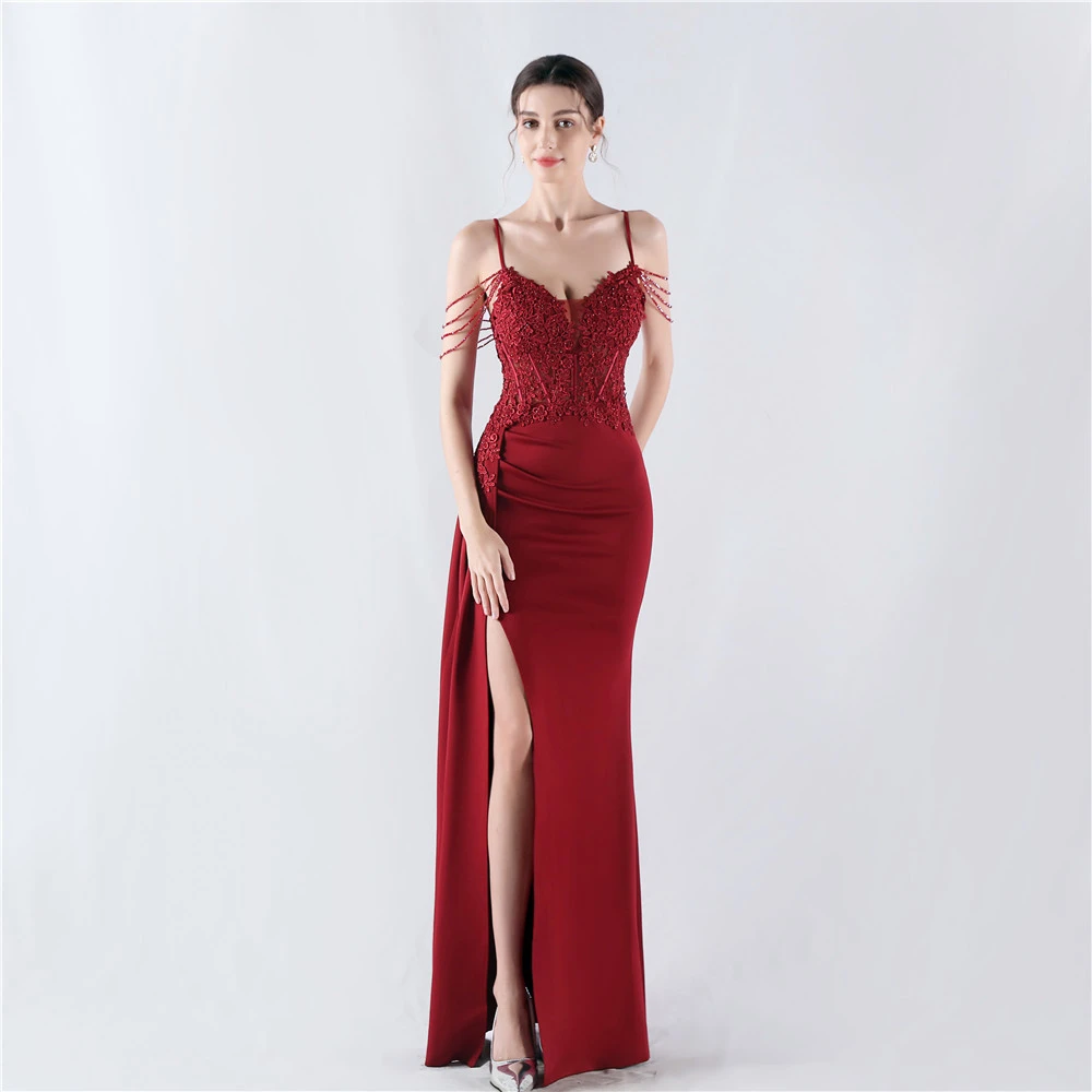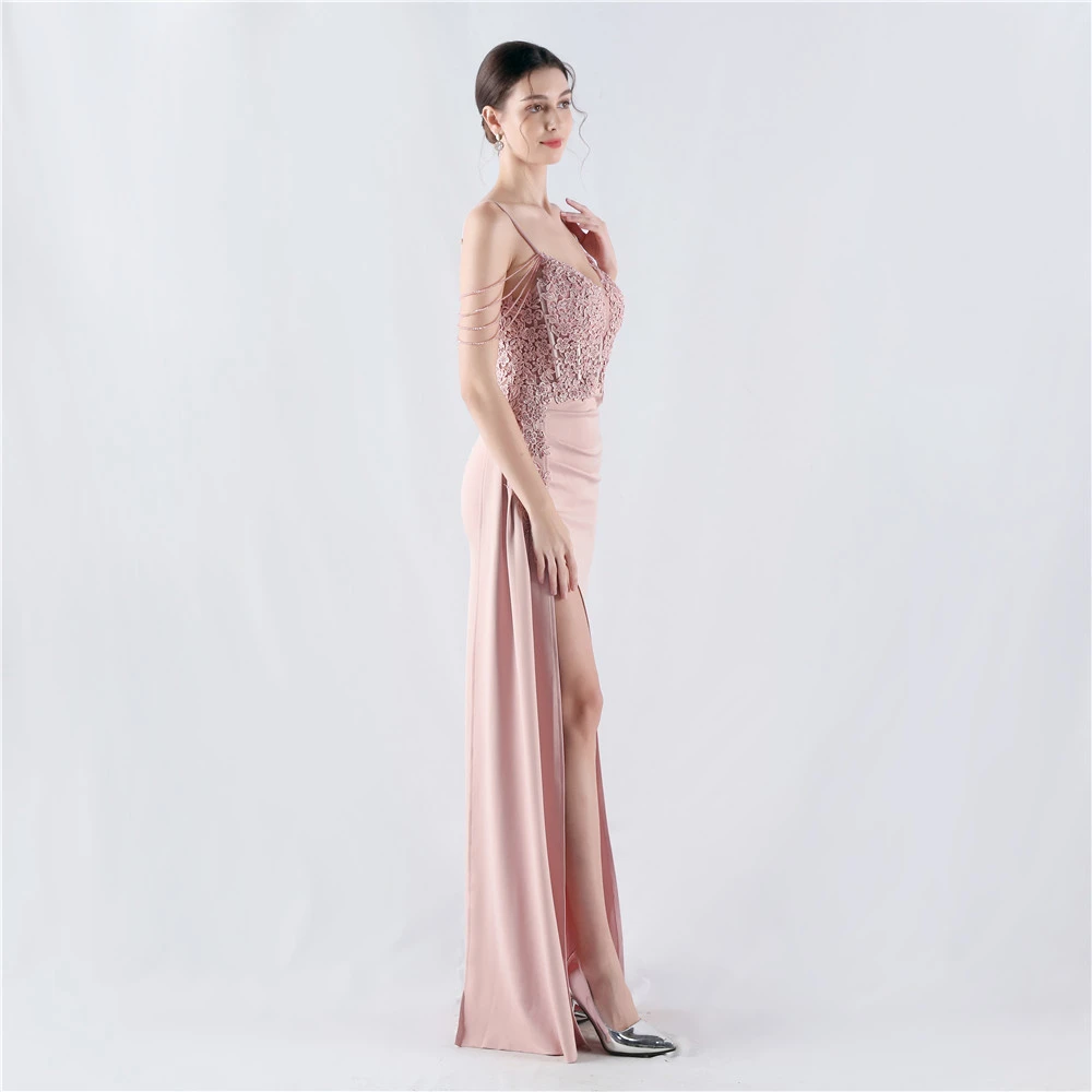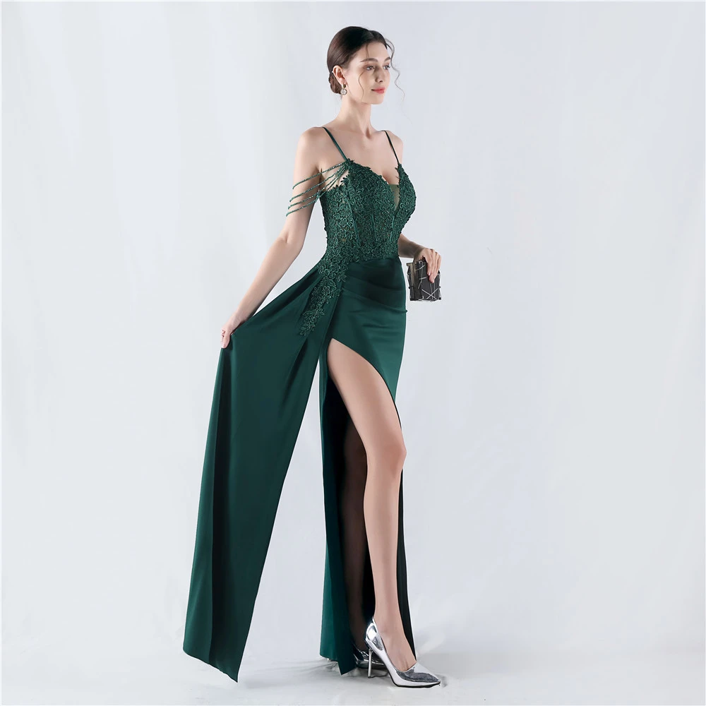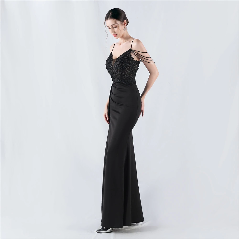 Heavy Hot Diamonds And Flower-Set Waisted Fishbone Beaded Satin Evening Dress Annual Meeting Wedding