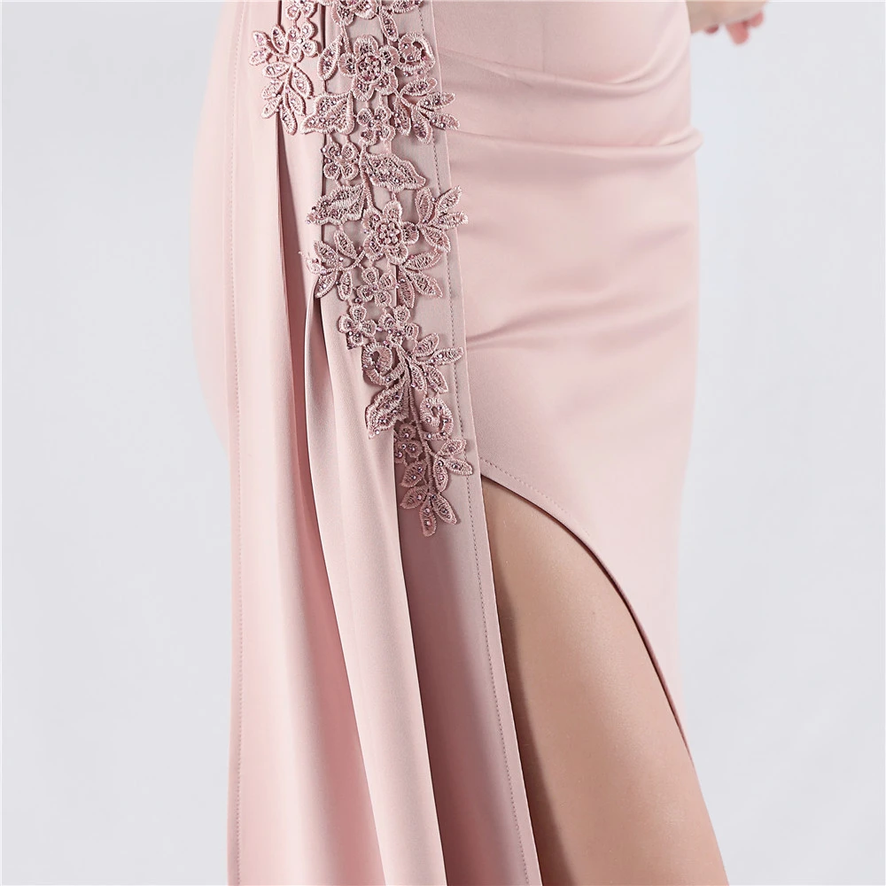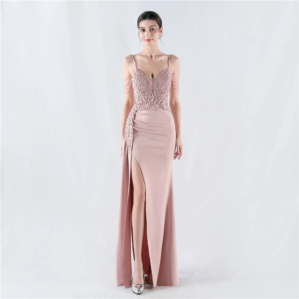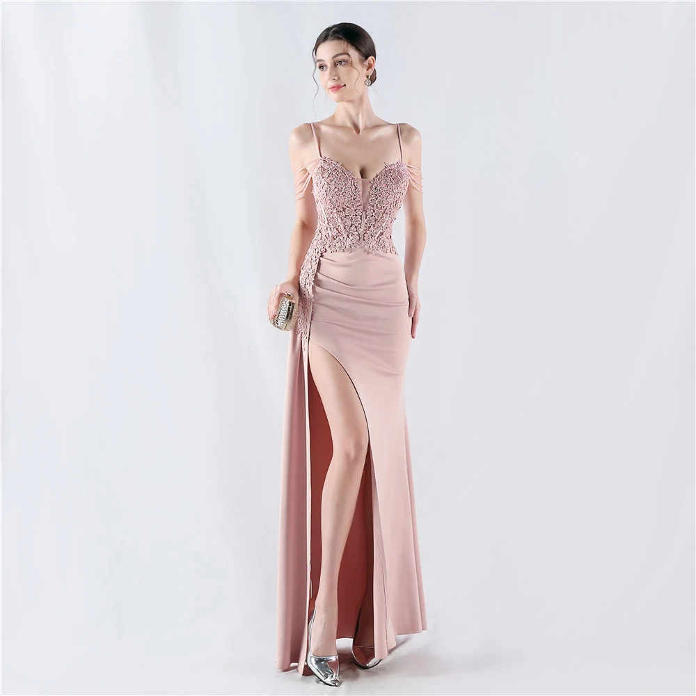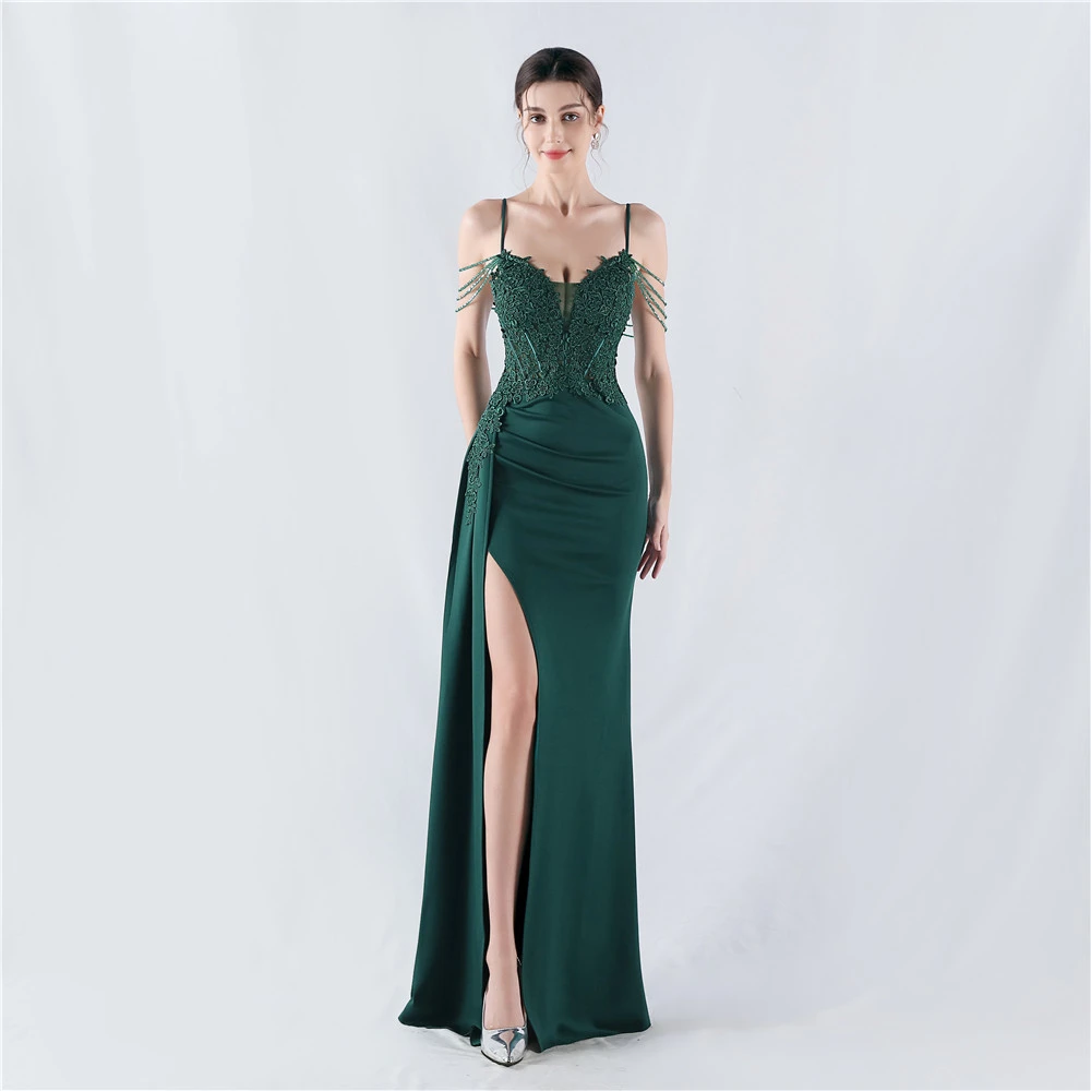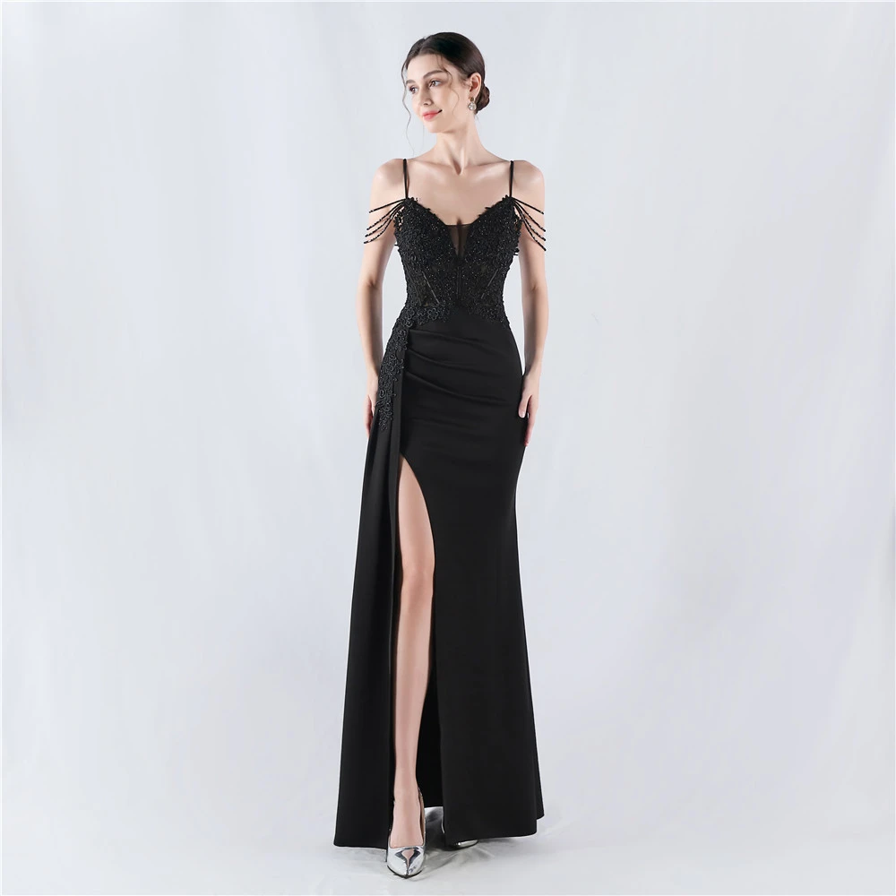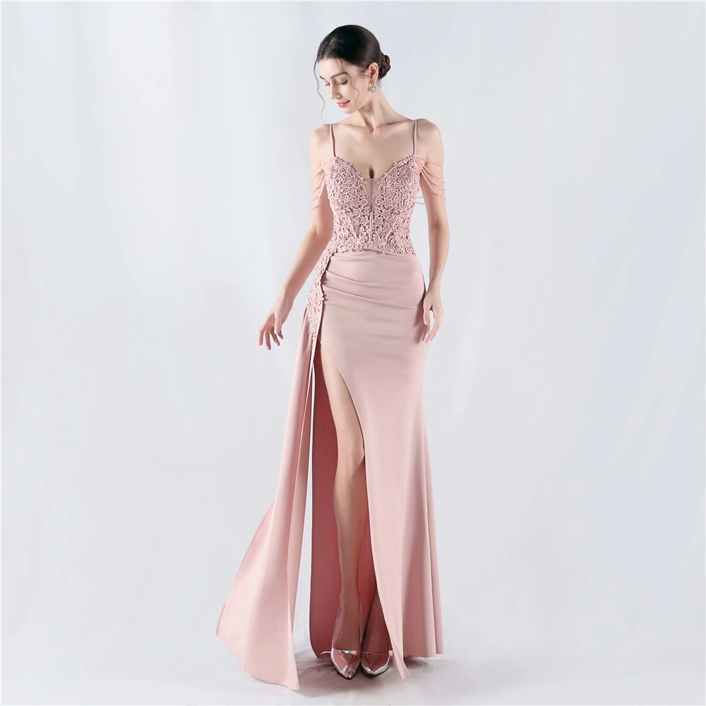 Heavy Hot Diamonds And Flower-Set Waisted Fishbone Beaded Satin Evening Dress Annual Meeting Wedding