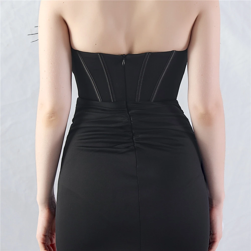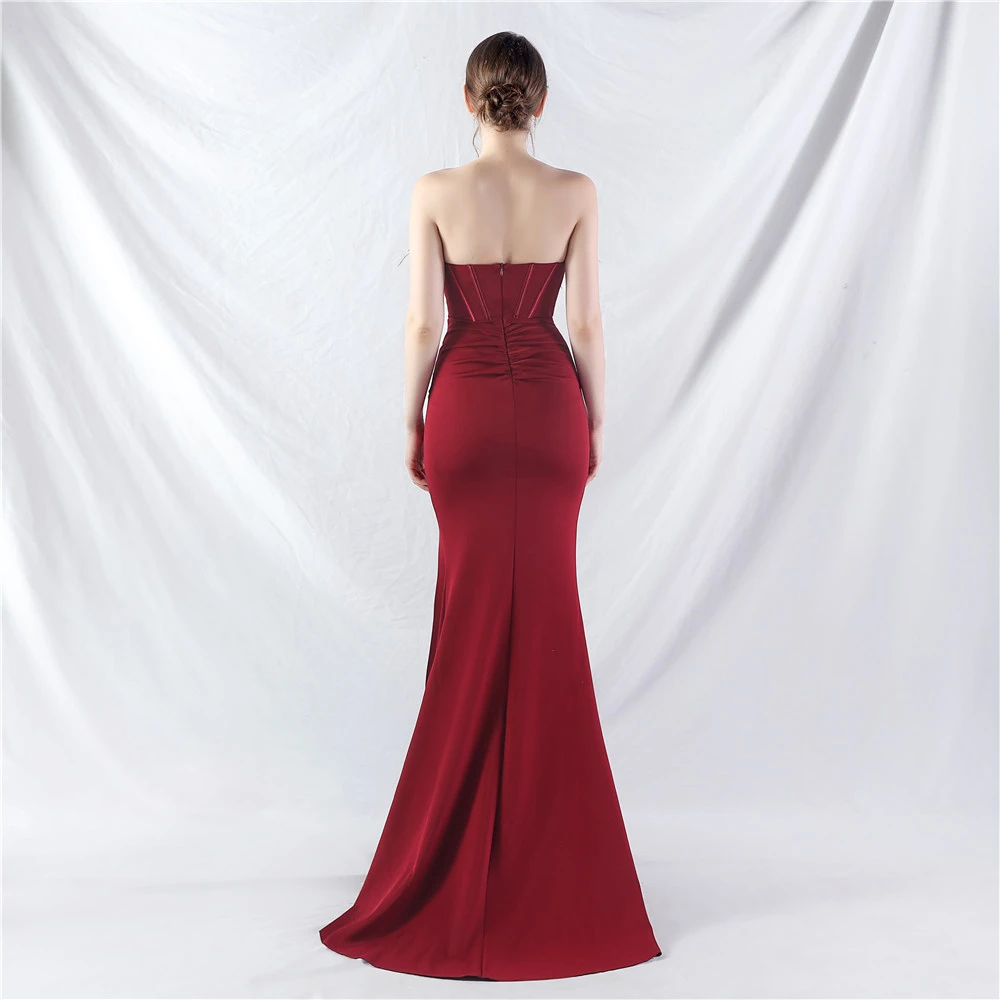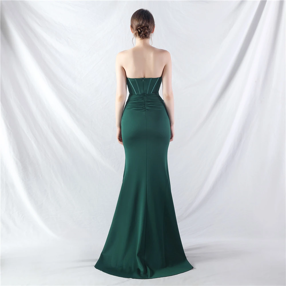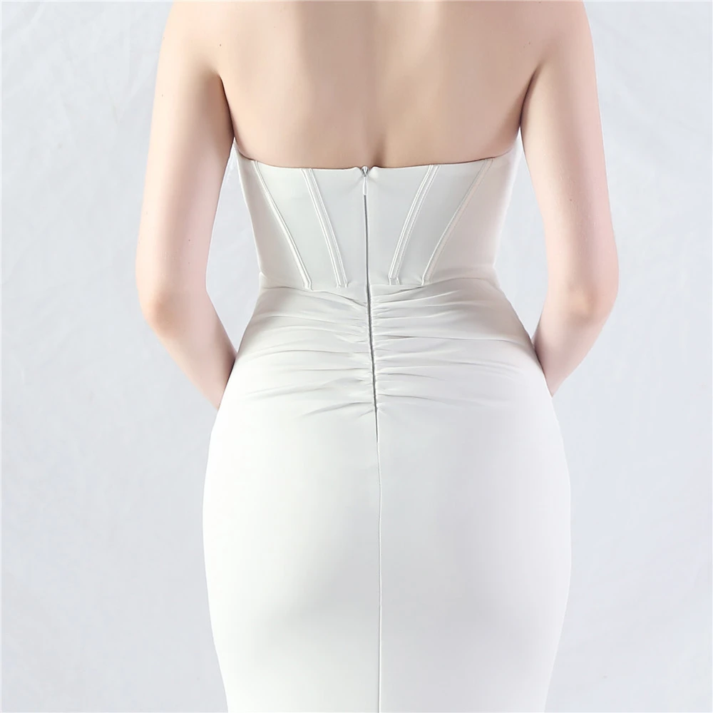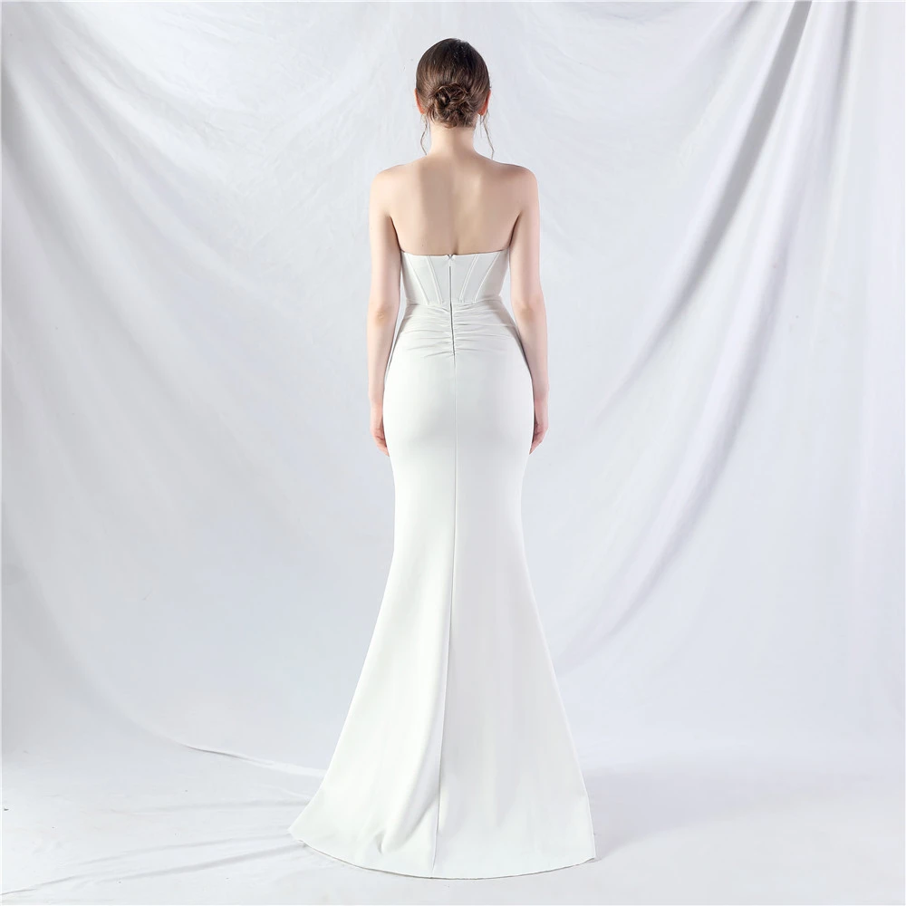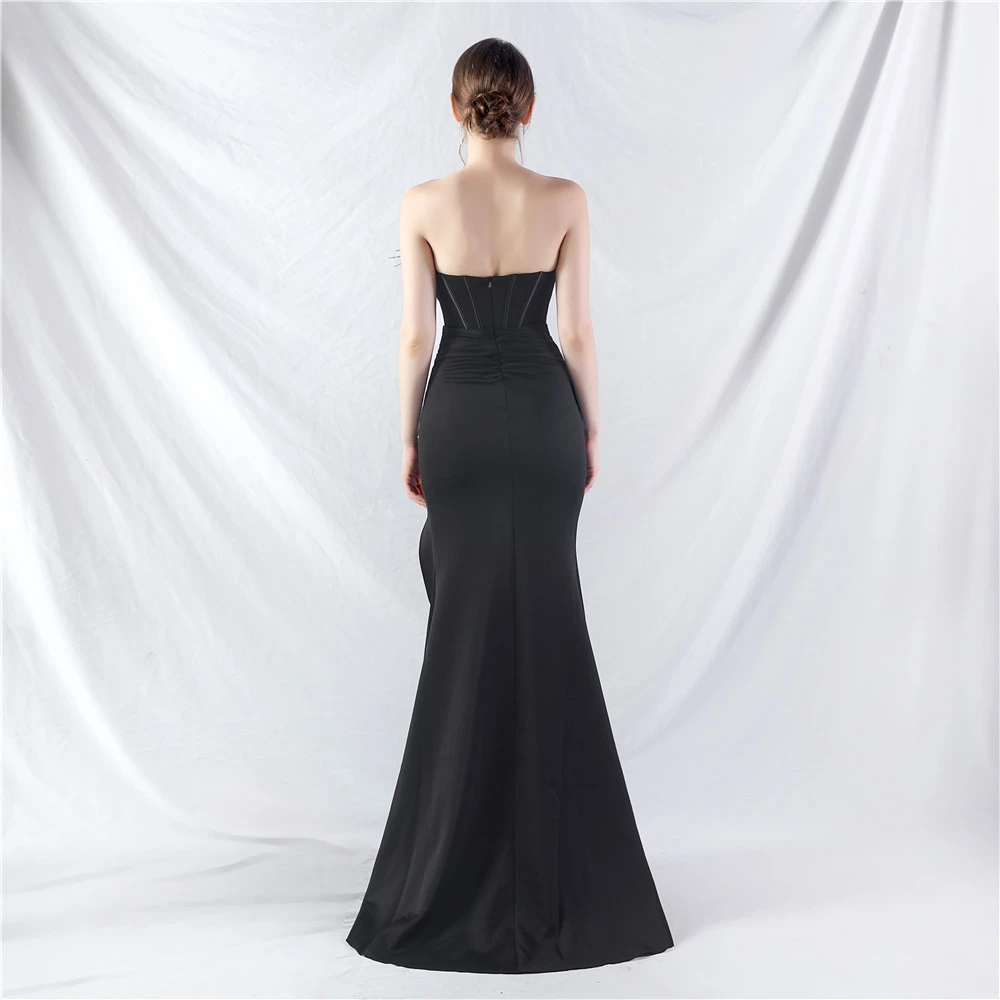 Herringbone Vest Waist-Tightening Satin Wrinkled Craft-Made Ostrich Feather High-End Evening Dress