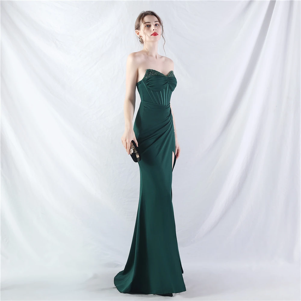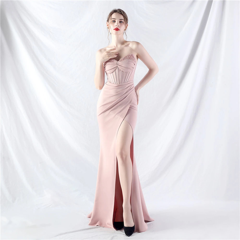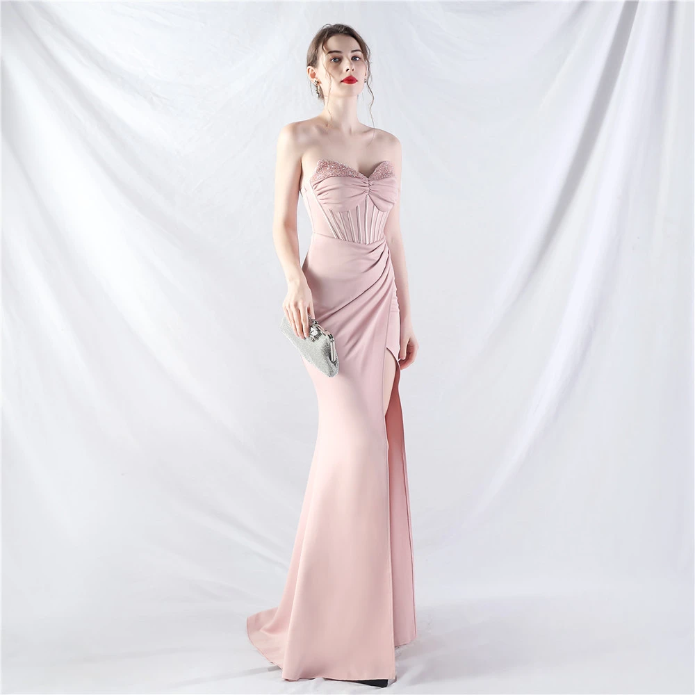 Herringbone Waist Heavy-Crafted Beaded Shaping High-End Evening Dress