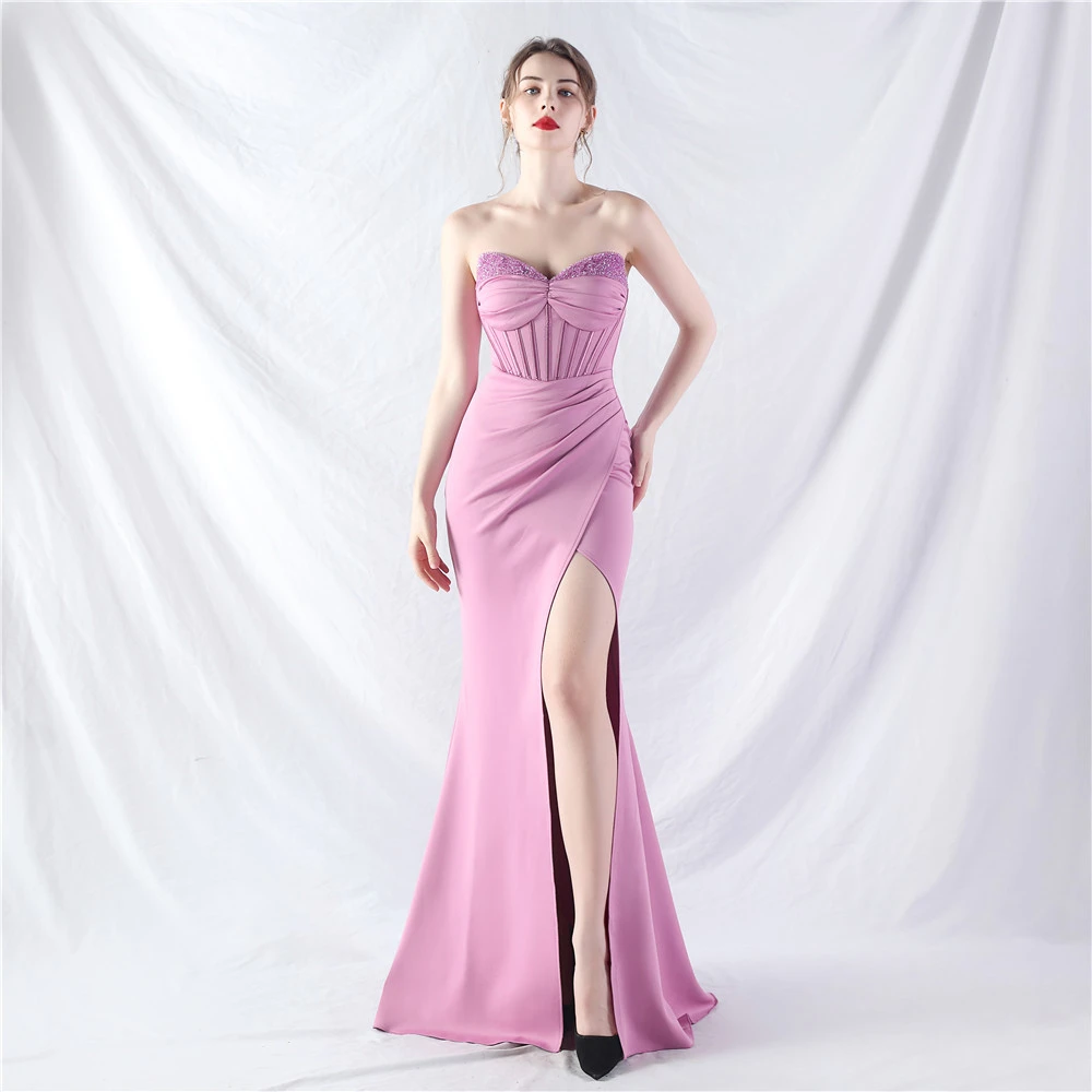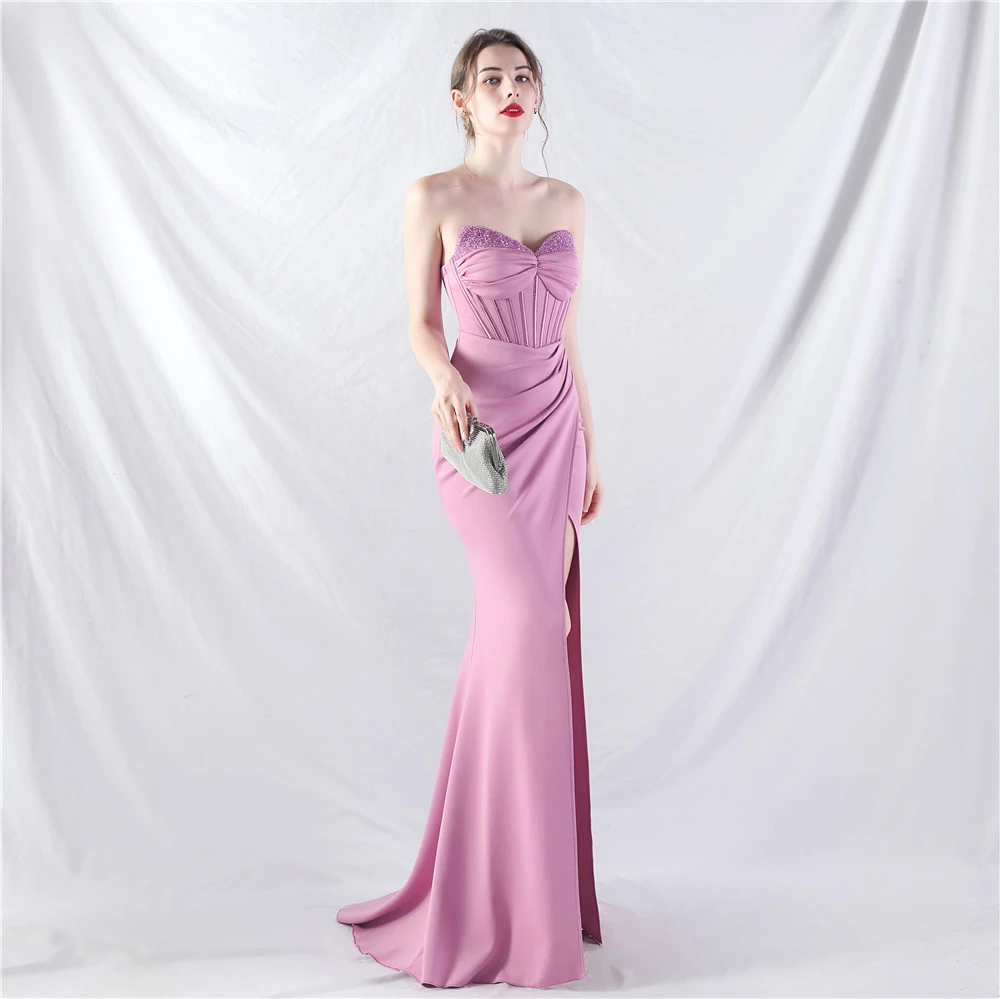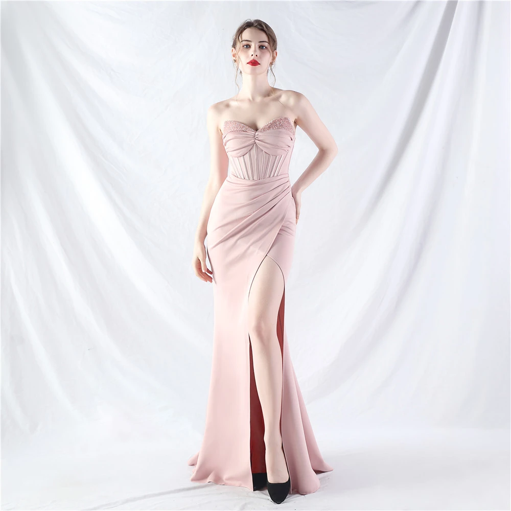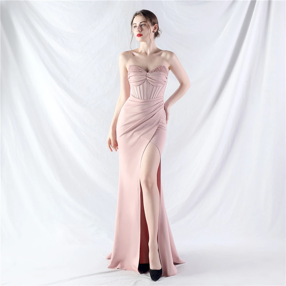 Herringbone Waist Heavy-Crafted Beaded Shaping High-End Evening Dress