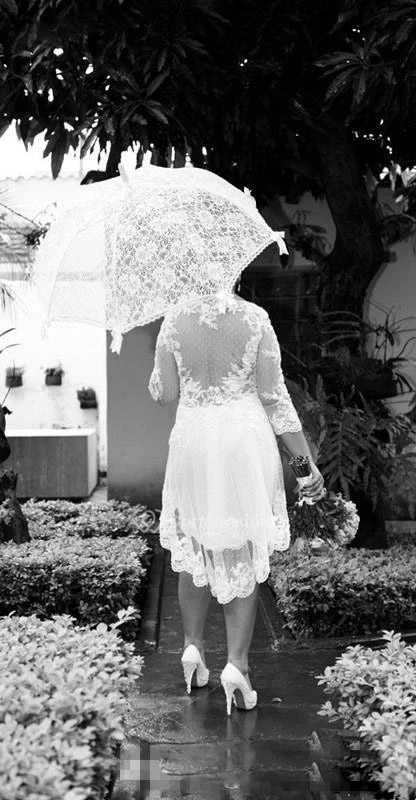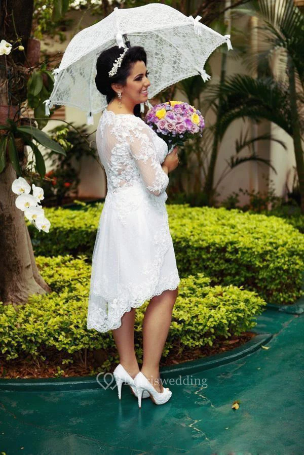 This dress is exactly what I was looking for. Simple, yet elegant and definitely special enough for my wedding day. I was worried the material would be too thin, but the skirt is three layers and the high low made beautifully. I sent Helen my measurements and it fits like a dream. I can't wait to wear it. Thank you, Helen!!